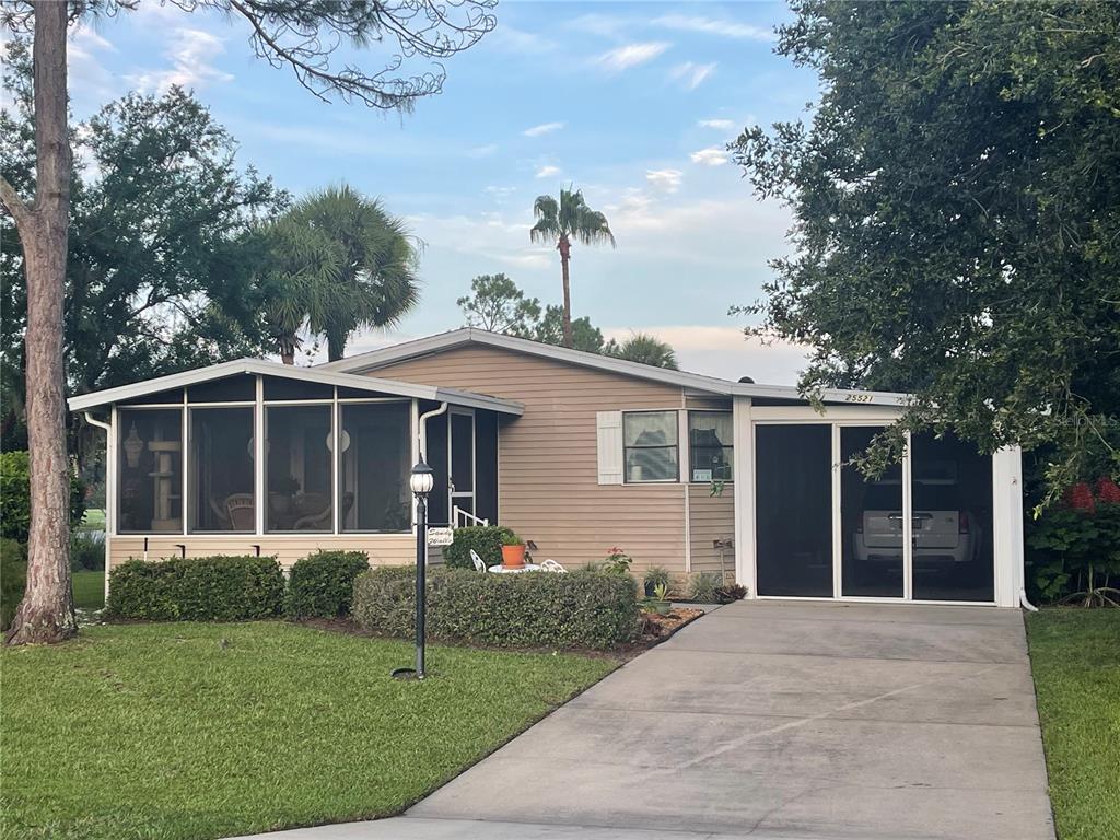 Check out this cute 2 bedroom 2 bathroom home located in The Plantation at Leesburg. It is well maintained and has new roof in 2015 and a/c in 2012. House sits on a quiet corner in Belle Grove and over looks the driving range. It has new sliding glass door to lanai and a screened in carport with car access. Interior has warm colors and updated laminate, tile and carpet.