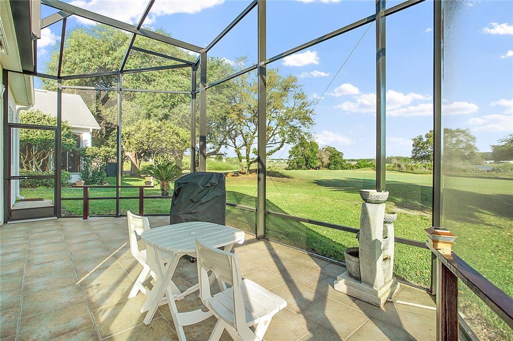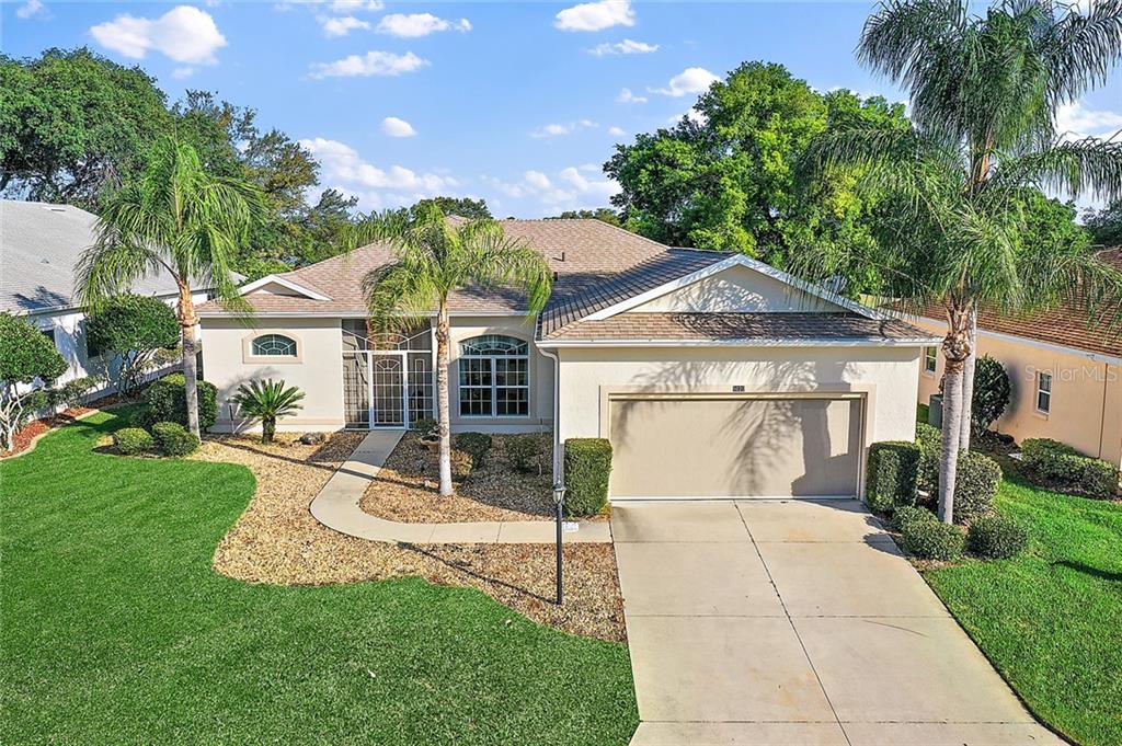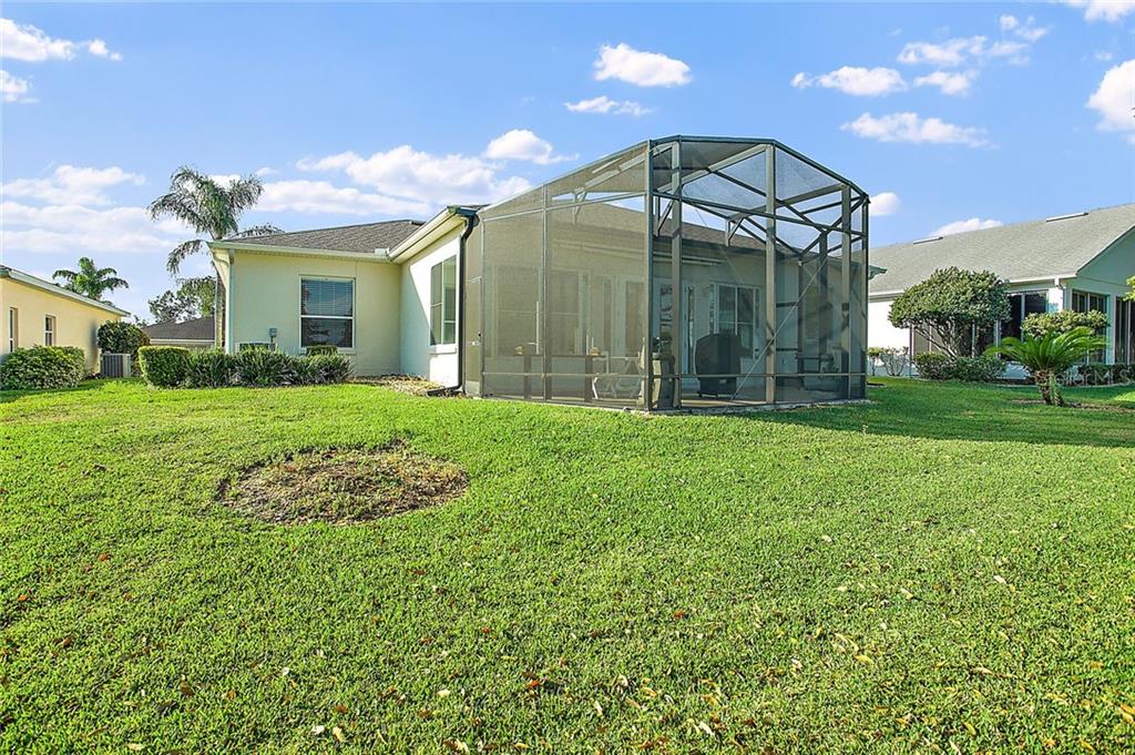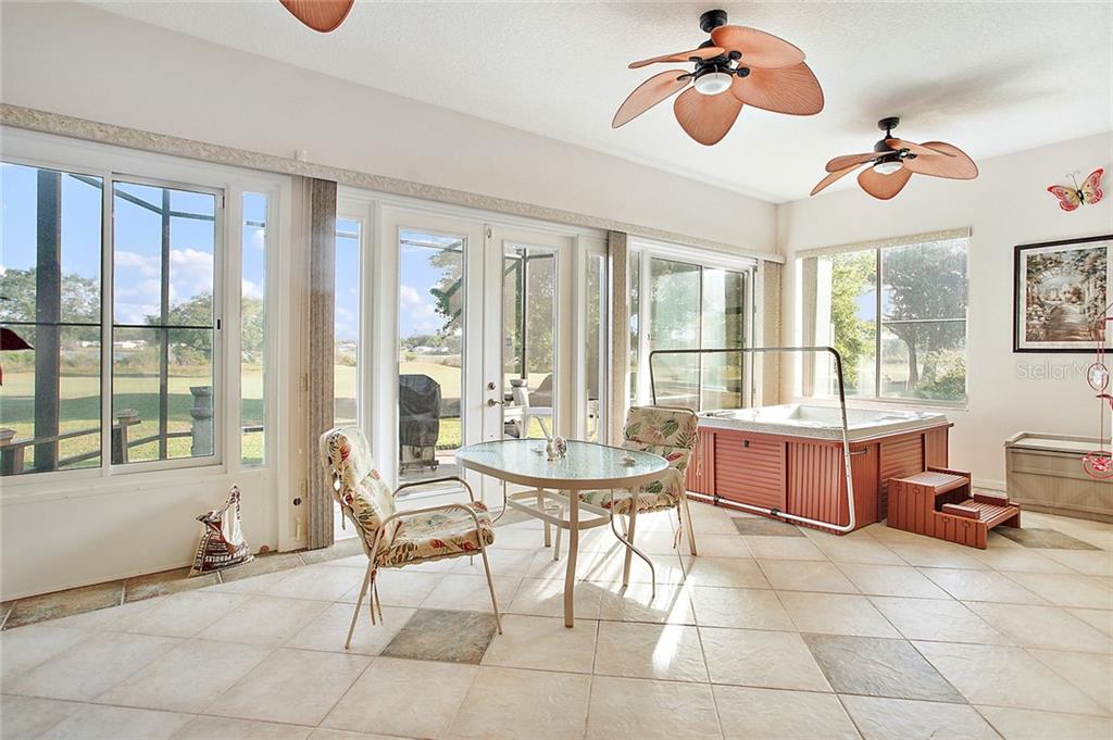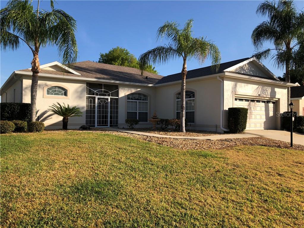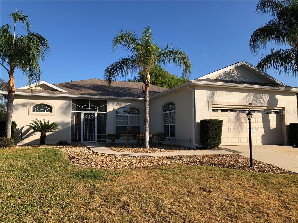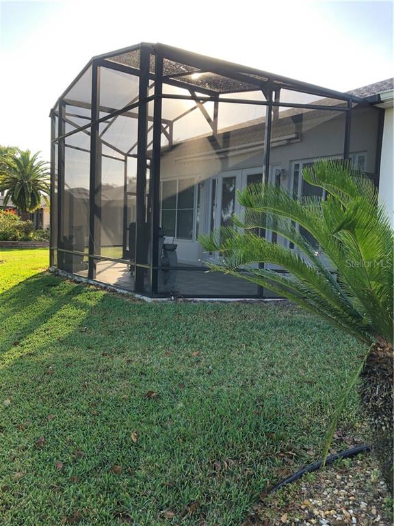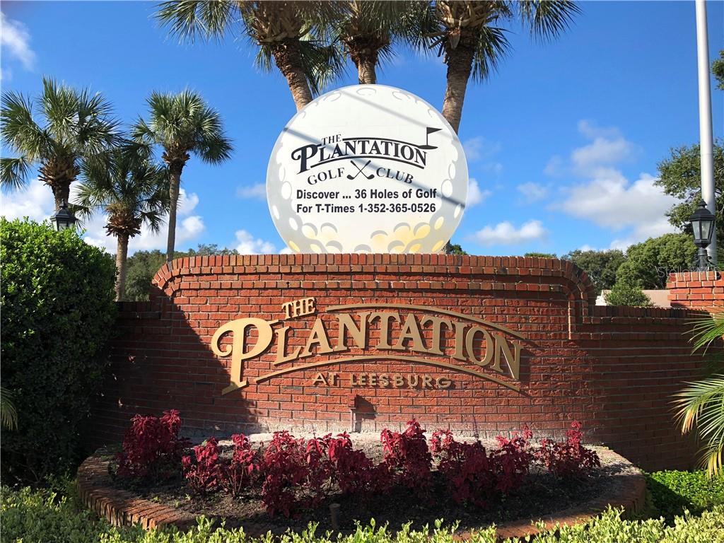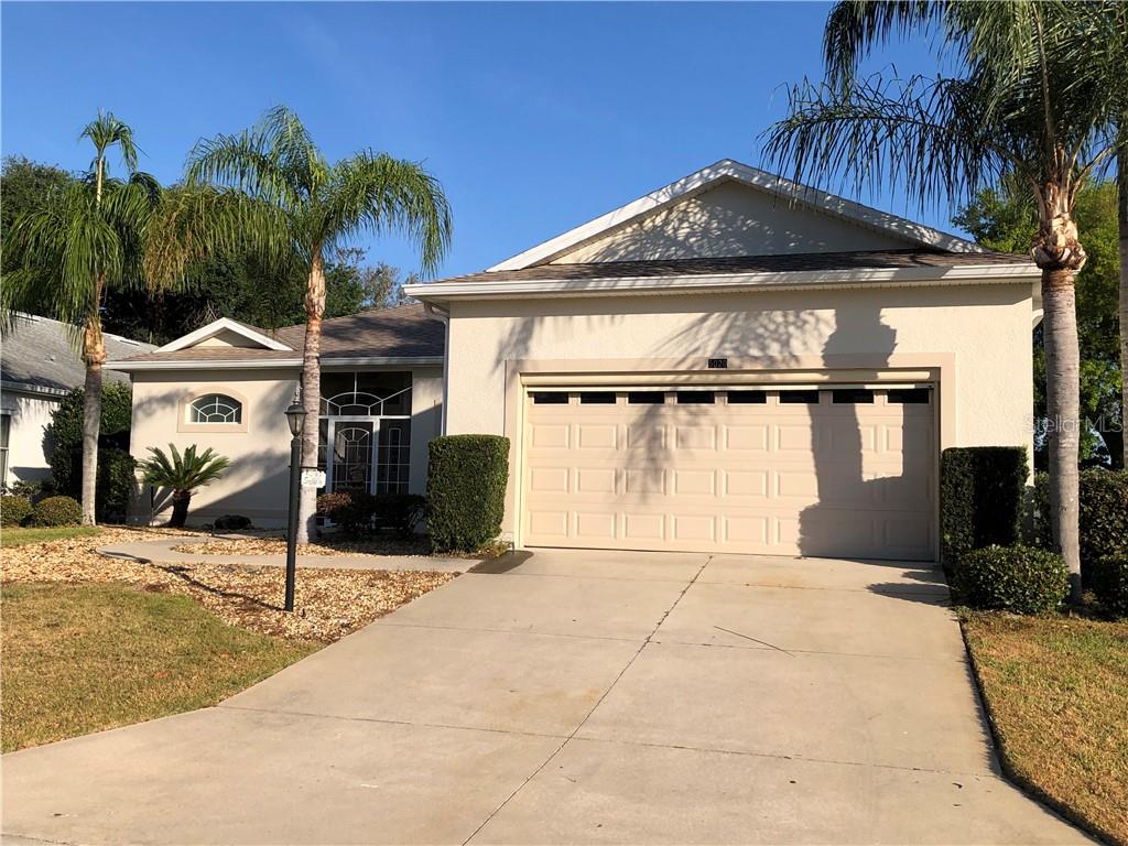 What a Treasure! This 2 bedroom 2 bath home is perfectly positioned overlooking the 4th hole of the Cranes Roost golf course in Long Meadow offers a lot for the money. This spacious home was built with many features & extras including a large bird cage with a retractable awning, a large sunroom with slider windows & screen, a 4 person hot tub with LED lights and thermal cover, a beautiful master bedroom with walk in tub valued at $8,000, with lots of storage inside & more up in the garage with pull down safety ladder. The Bonus room could easily be converted to a 3rd bedroom. It is nestled in the heart of The Plantation at Leesburg located on almost 8,000 sq ft of premium lot. The contour of the backyard & trees from the course along with pull blinds in most windows is open yet private. The roof and exterior painting were both done in 2019. Other features include a spacious kitchen with slide out custom cabinetry, stone counters, burglar alarm system, wall safe, large utility room with large shelves great for crafts, etc. One refrigerators and freezer, washer/dryer, range, microwave are all included. Home also comes with tools necessary for the do it yourself person that likes carpentry, paper hanging, tile work etc. There is a golf cart accessible plaza near the main entrance that has a café, cigar bar, small medical office, church, and plans for a convenience store coming soon. This 55+ community & well managed HOA includes activities, 3 clubhouses with heated pools, tennis, restaurant, 2 golf courses & more! Make this your perfect destination to call home. For additional views, check out the virtual tour link. The home is easy to show and ready for you! Call now!