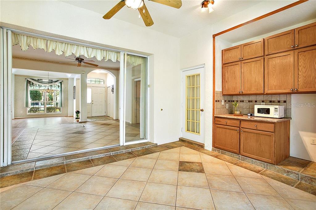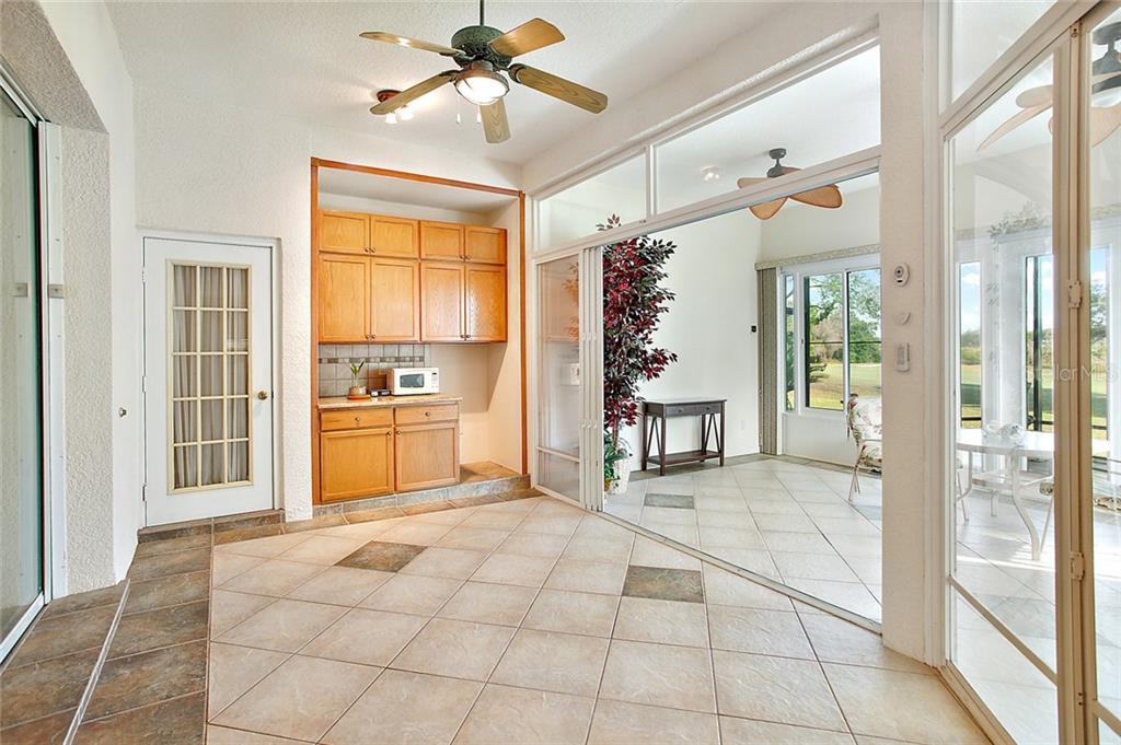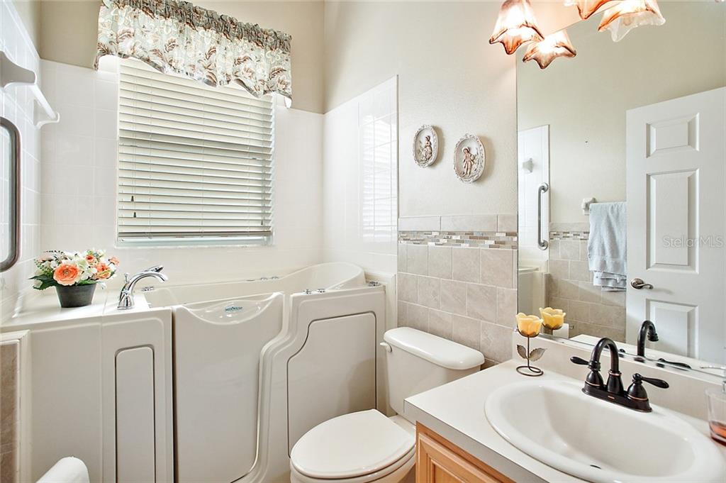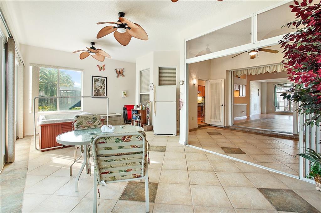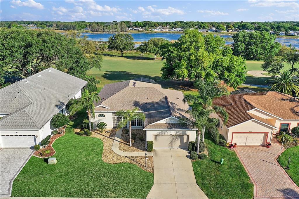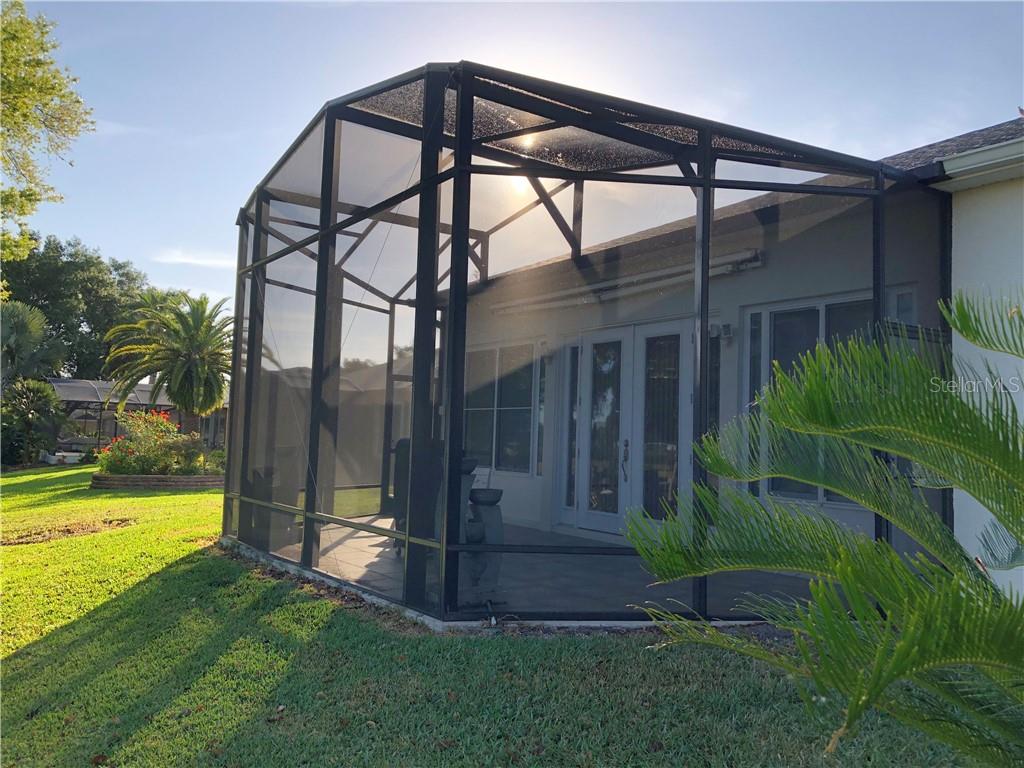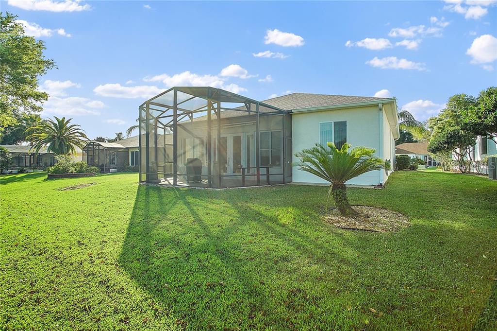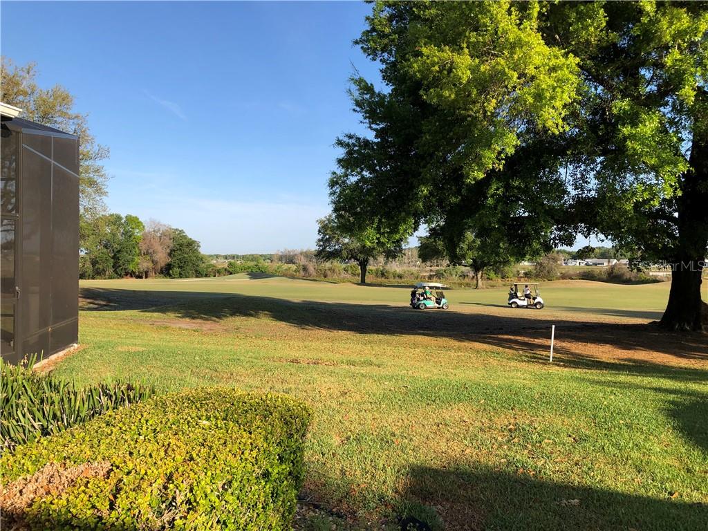 What a Treasure! This 2 bedroom 2 bath home is perfectly positioned overlooking the 4th hole of the Cranes Roost golf course in Long Meadow offers a lot for the money. This spacious home was built with many features & extras including a large bird cage with a retractable awning, a large sunroom with slider windows & screen, a 4 person hot tub with LED lights and thermal cover, a beautiful master bedroom with walk in tub valued at $8,000, with lots of storage inside & more up in the garage with pull down safety ladder. The Bonus room could easily be converted to a 3rd bedroom. It is nestled in the heart of The Plantation at Leesburg located on almost 8,000 sq ft of premium lot. The contour of the backyard & trees from the course along with pull blinds in most windows is open yet private. The roof and exterior painting were both done in 2019. Other features include a spacious kitchen with slide out custom cabinetry, stone counters, burglar alarm system, wall safe, large utility room with large shelves great for crafts, etc. One refrigerators and freezer, washer/dryer, range, microwave are all included. Home also comes with tools necessary for the do it yourself person that likes carpentry, paper hanging, tile work etc. There is a golf cart accessible plaza near the main entrance that has a café, cigar bar, small medical office, church, and plans for a convenience store coming soon. This 55+ community & well managed HOA includes activities, 3 clubhouses with heated pools, tennis, restaurant, 2 golf courses & more! Make this your perfect destination to call home. For additional views, check out the virtual tour link. The home is easy to show and ready for you! Call now!