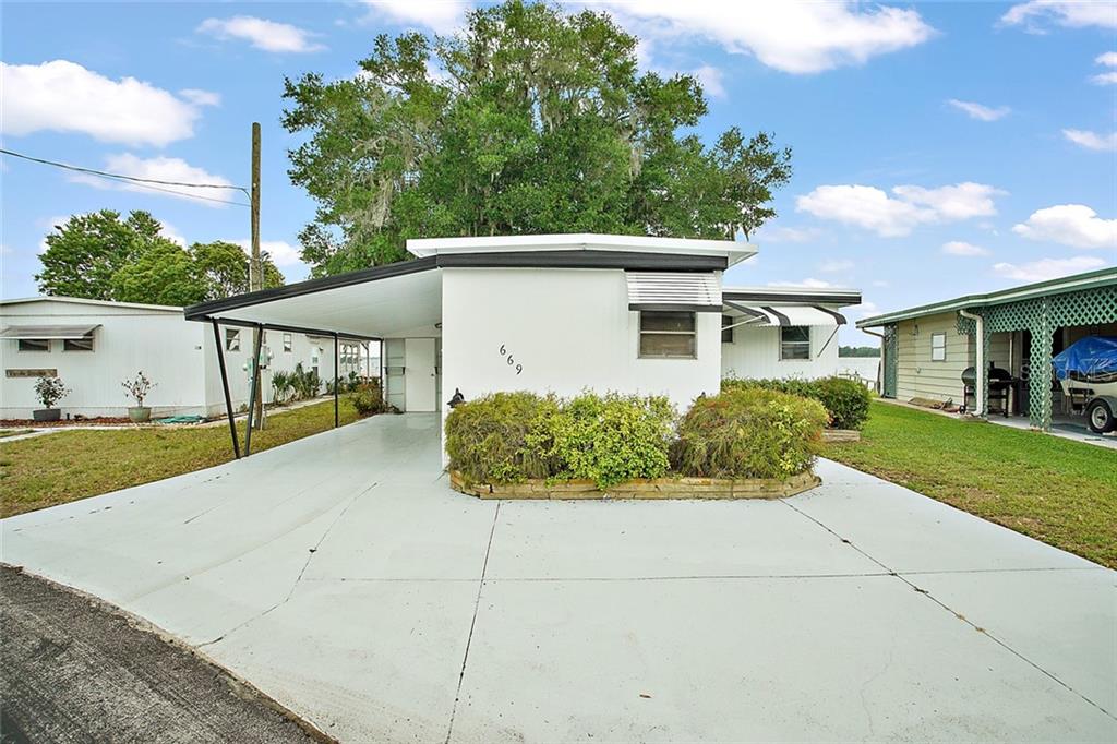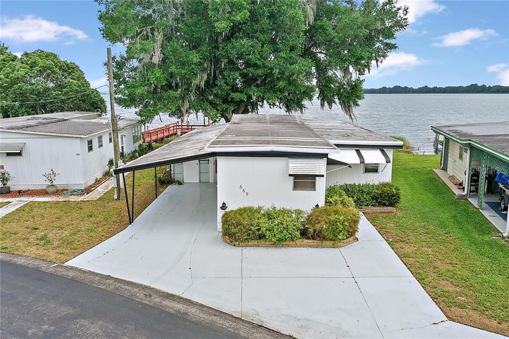 Welcome to your new Lake Dora retreat! This 2 bedroom 2 bath home has been very well maintained and designed to take in beautiful panoramic views of the Lake while optimizing its open living spaces. Your main living area pours light in through sliding glass doors that open up to the lake and glow on newer laminate wood floors. A kitchen and dining room sit open just to the rear of this, preserving views. A small open office area sits just off your hallway leading to your master suite and second bedroom. To the north side of the home, an enclosed area hosts an all purpose room, currently being used as a bar and entertaining area, just off an enclosed laundry. A roof over was installed in 2005 and comes with a transferable lifetime warranty. This is an ideal location on the Lake, at the mouth of the Dora Canal. You can easily travel between Lake Dora, Lake Eustis and Lake Harris while enjoying some of the best natural scenery, restaurants and entertainment that Lake County has to offer! Also, downtown Tavares, the Sea Plan City, is golf cart friendly and hosts some of the best community events in the area! Come take a look today!
