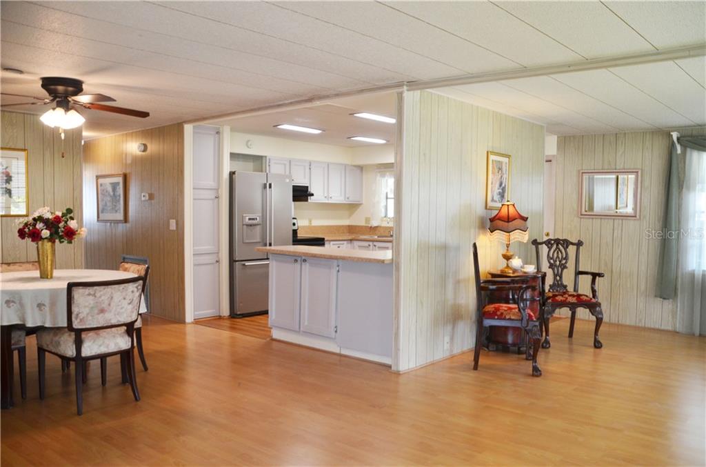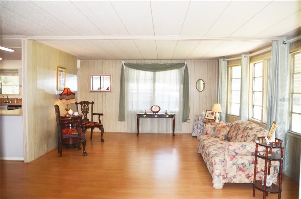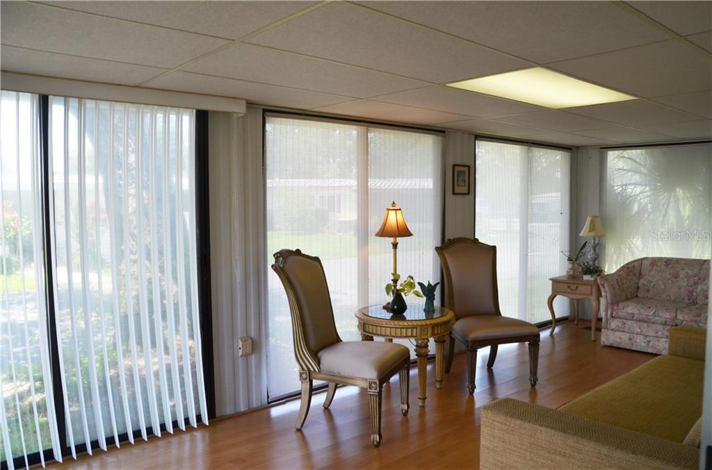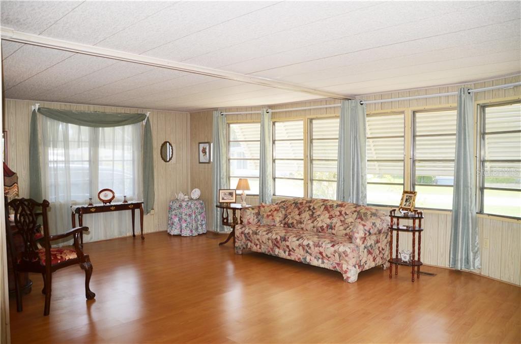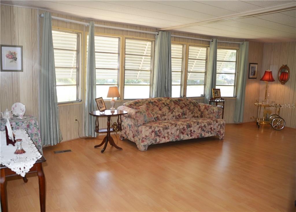 PRICE REDUCTION TO SELL QUICKLY AS IS! This super cute home is in a corner lot in the sought-out 55+ community of Hawthorne at Leesburg! Boasting an Open Floor plan, spacious and bright surrounded by windows allowing you to admire the great live oaks, Central Florida habitat, and nature. Beautiful laminate flooring throughout. The living room is expansive and connects to the Dining Room, which in turn connects to the Kitchen. Counter is perfect for entertaining. The kitchen has loads of counter space, storage, and a separate pantry. Large Master with a walk-in closet and a separate Vanity in Master Bath. The 2nd bedroom has windows on both sides, letting in more Florida sunlight. The Living Room also opens up to the massive Florida room surrounded with sliding glass doors which leads to the garden. Move-in Ready! Setting this home apart are the tons of Amenities of Hawthorne at Leesburg: Clubhouse, fitness room, library, men’s & women’s sauna, lighted shuffleboard & tennis courts, pickleball & bocce courts, softball field, putting area, dragon boats, card rooms, billiard room, croquet, garden plots available for, storage for boats, recreational vehicles & trailers, outdoor geo-thermally heated swimming pool & 2 enclosed therapeutic pools, and more! Hawthorne’s courtesy bus to transport you for weekly trips to stores, banks and malls. Sorry, No Pets Allowed.