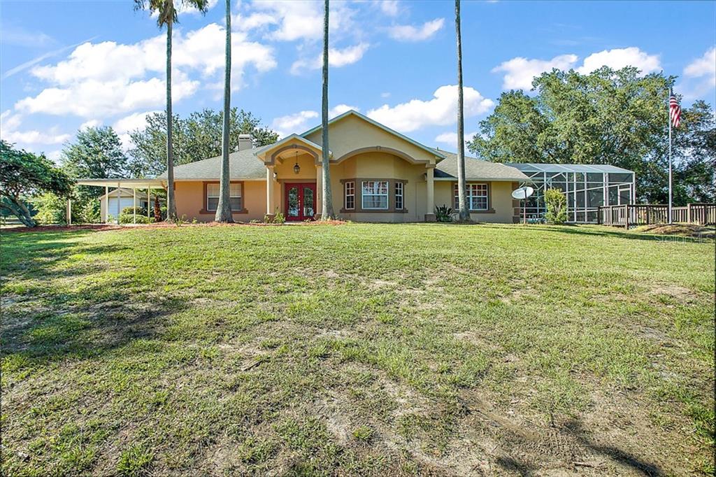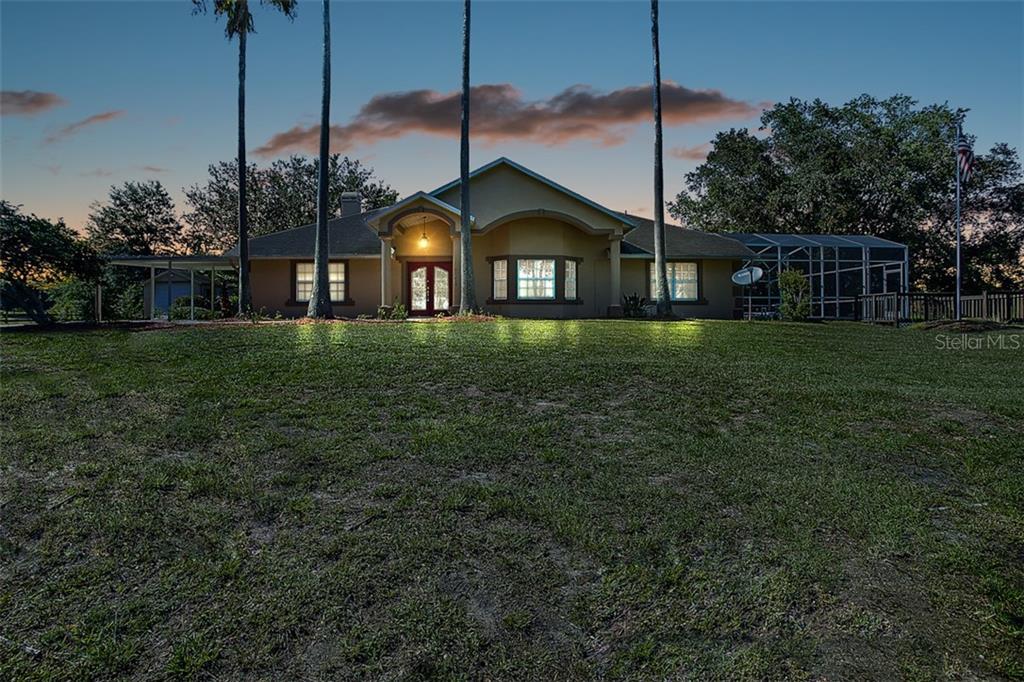Rural Lake County living at its finest! This 5 acre homesite, tucked away in the rolling hills of North Clermont, is move in ready for you, your farm and outdoor toys! As you pull up to your homesite, you will be greeted with a gated entrance lined by mature oak trees. To your right you will notice an acre of planted lavender, maturing within the next year to two and equipped with irrigation. Walking into the house, you will notice engineered hardwood floors glowing throughout the main living areas. A large open plan then pulls you into a beautifully upgraded kitchen open to a family room with a stone fireplace. The former 2 car garage was enclosed to make a spectacular home office / flex space that could be used as a large 4th bedroom suite or even an amazing game room! Two large screened areas surround your pool which over look a freshly redone deck and acres of rolling Clermont Property. AC 2013, Roof 2014. This home is move in ready and won’t last long! Take a look today!