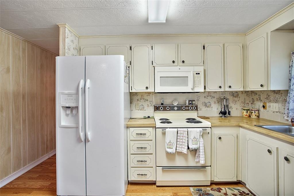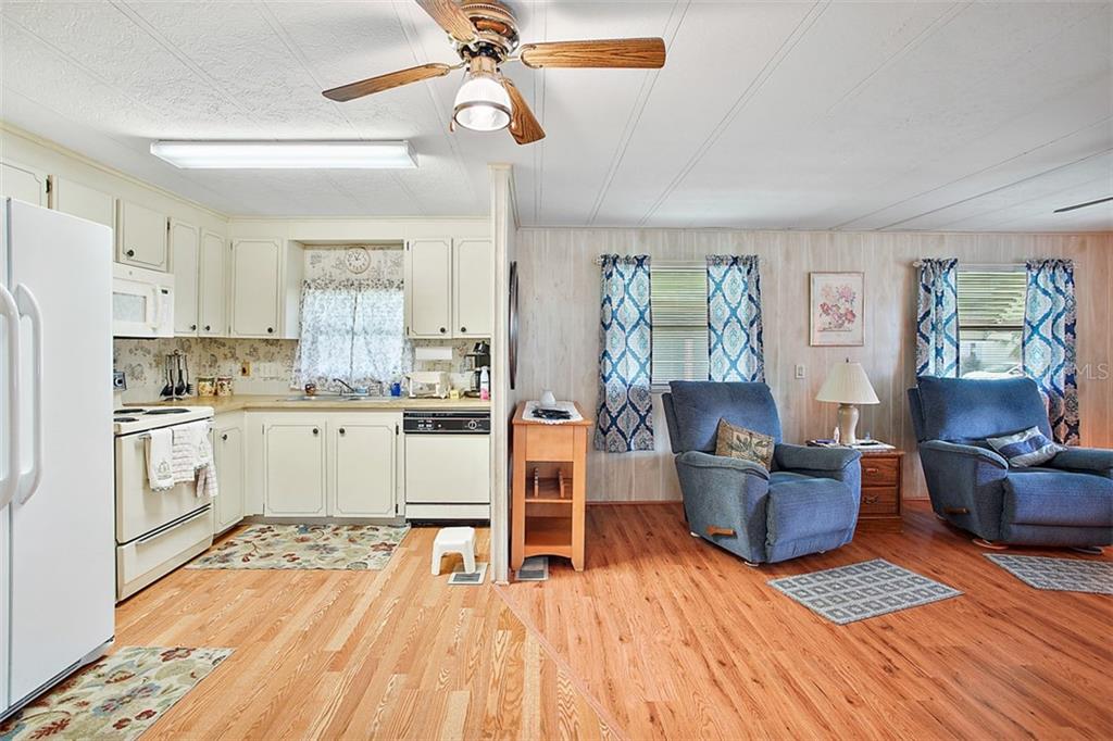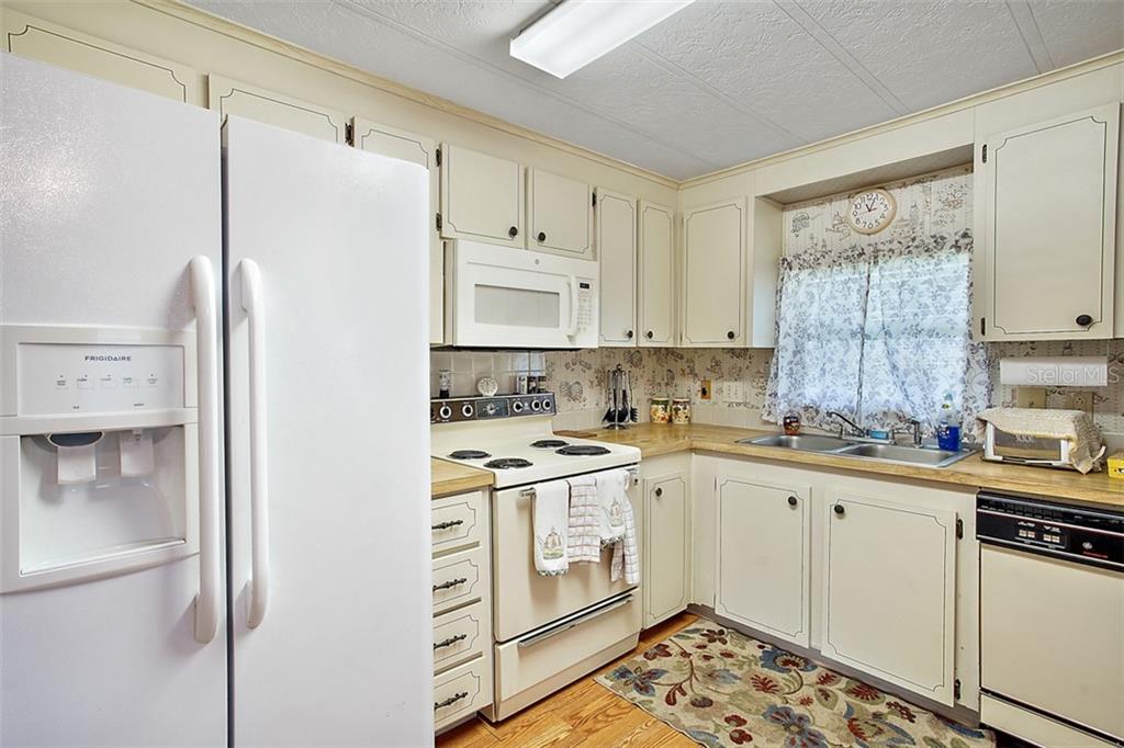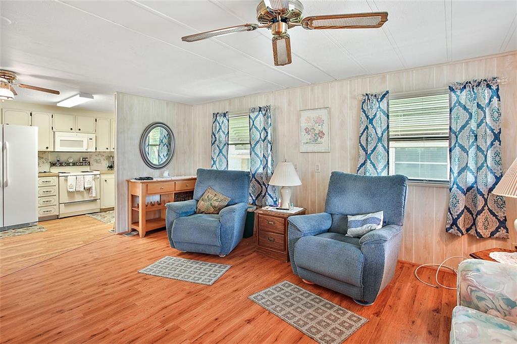 Welcome to the cozy 55+ Oakridge Community. This community boasts a heated pool and recreation center. On top of that, you own your land! The home itself has 2 bedrooms and 2 full bathrooms, “guest bathroom” has a double sink and full shower equipped with a handicap bar if needed. The roof was re-done this year (2020) and central A/C was recently inspected and serviced. Your new home comes with everything that you could possibly need, down to dishes in the cabinets and towels in the linen closet. Oakridge is conveniently located close to US 27 / 441, LRMC, The Villages, and I-75. Schedule your tour on this turn-key home today!