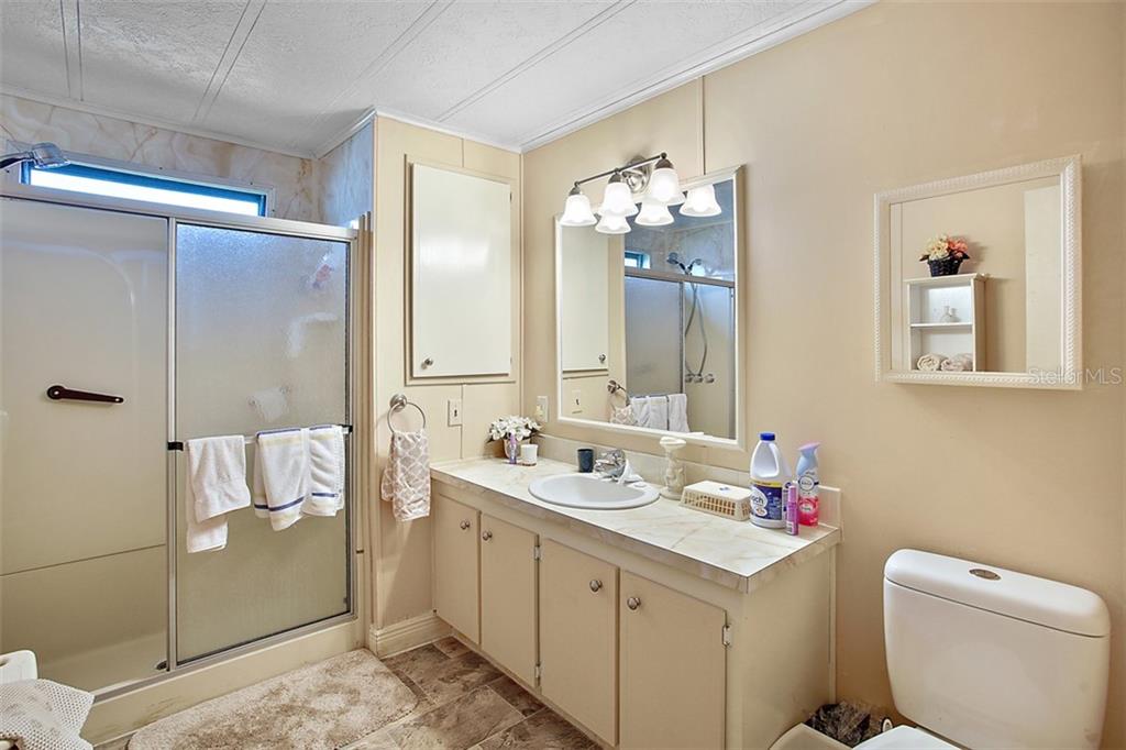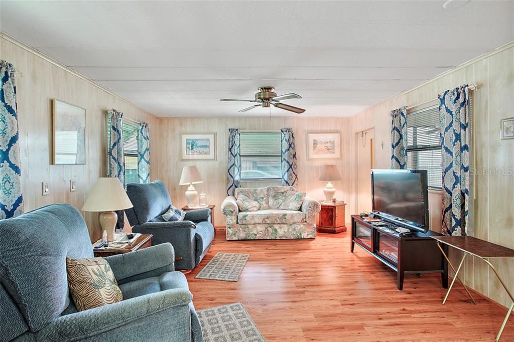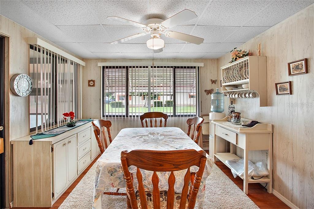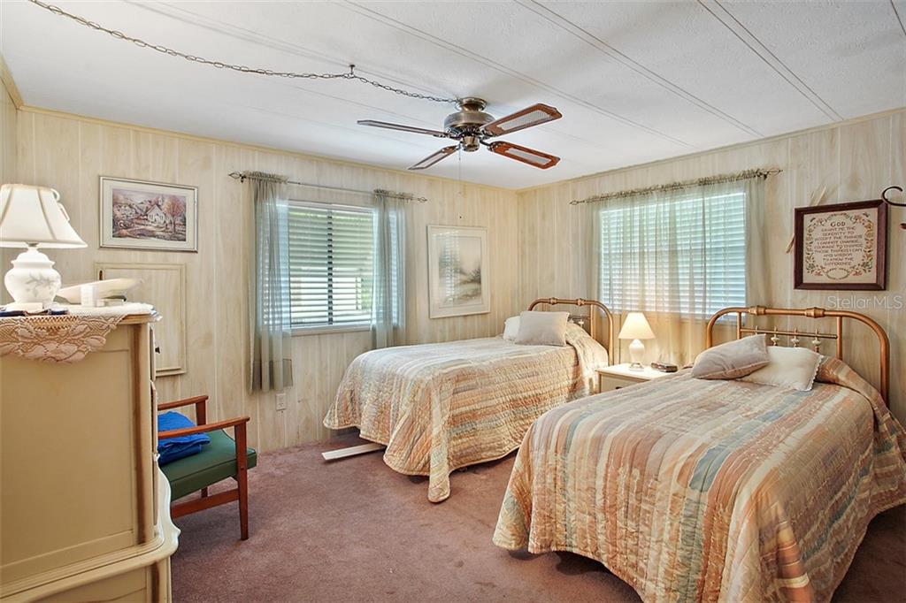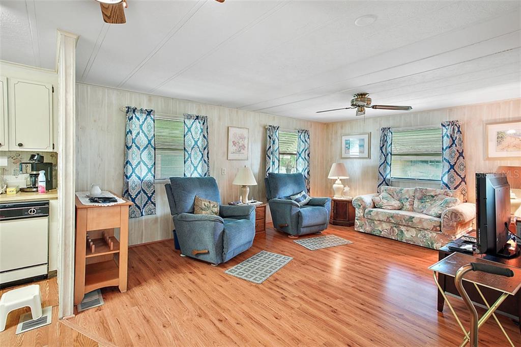 Welcome to the cozy 55+ Oakridge Community. This community boasts a heated pool and recreation center. On top of that, you own your land! The home itself has 2 bedrooms and 2 full bathrooms, “guest bathroom” has a double sink and full shower equipped with a handicap bar if needed. The roof was re-done this year (2020) and central A/C was recently inspected and serviced. Your new home comes with everything that you could possibly need, down to dishes in the cabinets and towels in the linen closet. Oakridge is conveniently located close to US 27 / 441, LRMC, The Villages, and I-75. Schedule your tour on this turn-key home today!