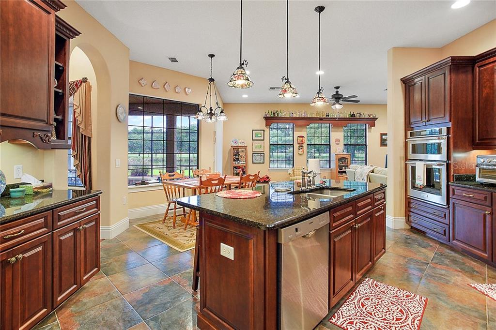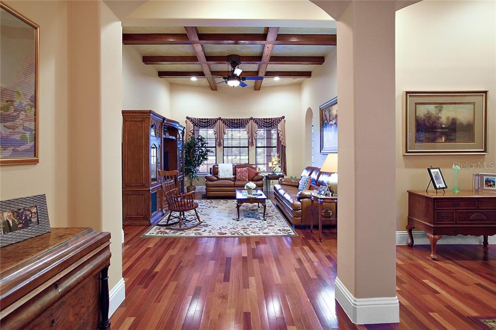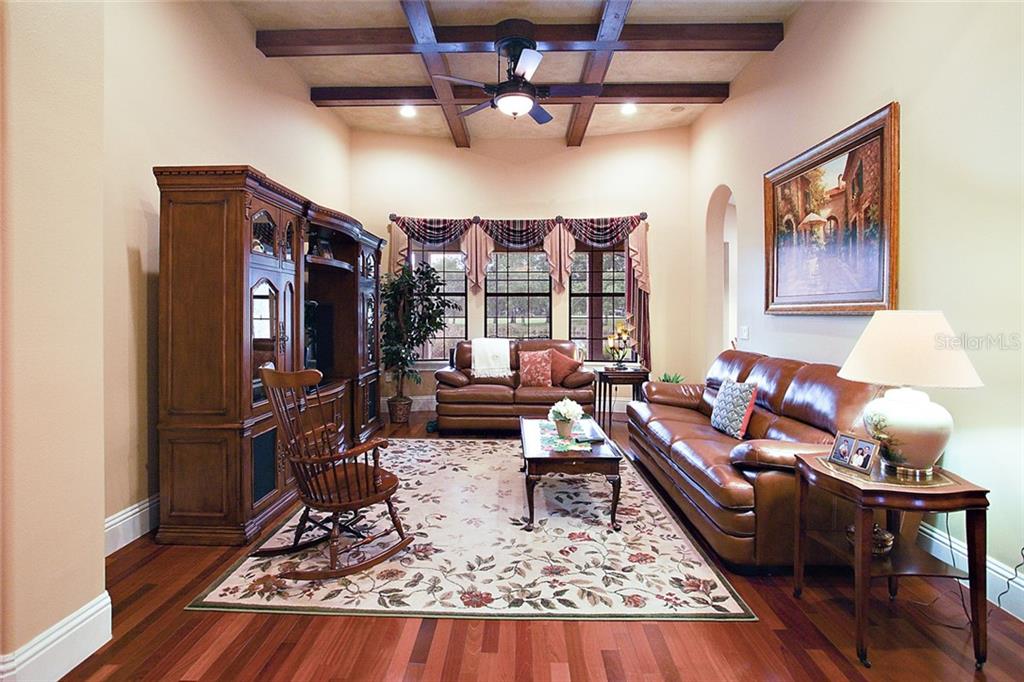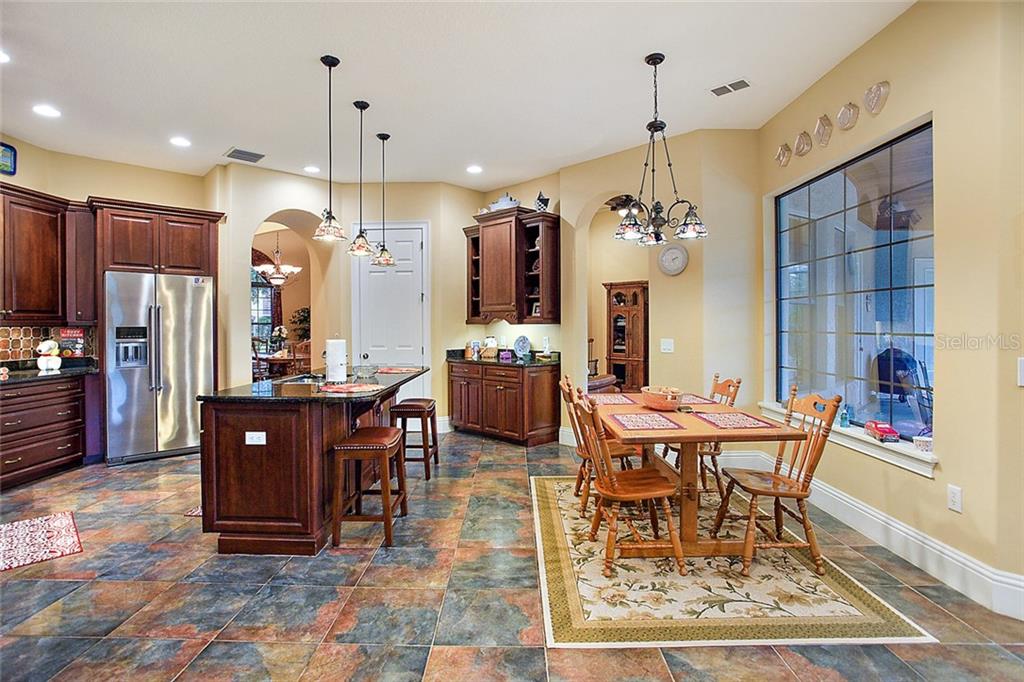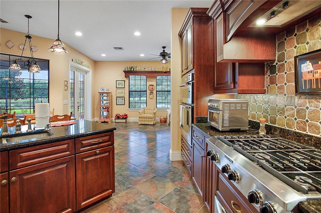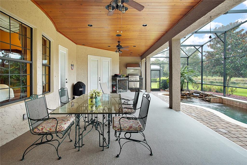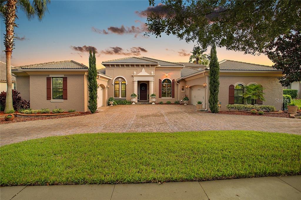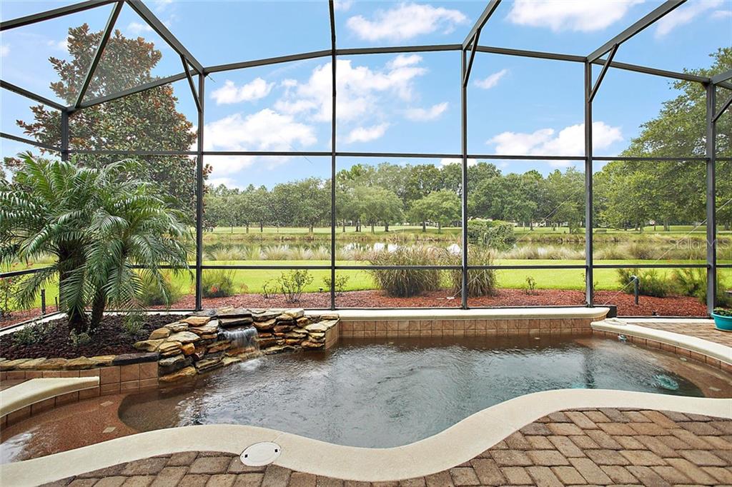 Gated Golf Elegance. Overlooking Las Colinas’ eighteenth hole, this 4 bedroom 4 bath pool home offers peaceful water views and a spacious, flowing layout. As you drive into Mission Inn, you will notice the Resort lifestyle; two Championship Golf Courses, three Restaurants, a Marina on Lake Harris, tennis and more. Arriving at your home, you will be happy to see a large circular, paver driveway with plenty of parking up and above your 3 car garage (split nicely into an over sized two car and a separate one car). Walking in your front door you will be pulled in by the glowing hardwood floors, reflecting the wood coffered, volume ceilings. A formal living room and formal dining room sit just off the foyer, adjacent to your home office. The master bedroom is split nicely off the guest wing of the home, and a 4th bedroom / upstairs bonus room could be a second suite with its own private bath. The great room opens to the kitchen which boasts newer stainless appliances, 6 burner natural gas stove, and a large island with sink overlooking your custom pool, and the eighteenth fairway in the distance, behind the water view. Walking outside into your screened patio, you’ll notice plenty of entertaining space next to your summer kitchen. The pool features a salt system, pebble coating, waterfall feature, lighting and a gas heater. Home also boasts energy efficient spray foam insulation in attic and block cells, new ac’s in 2016, and a central vacuum. Howey in the Hills is just moments from US 27, Leesburg, Tavares, the Villages, I-75 , the turnpike, and about 50 minutes to the Orlando Airport. Come live the resort lifestyle while enjoying the Chain of Lakes. Schedule an appointment today! See matterport virtual walk through tour attached!