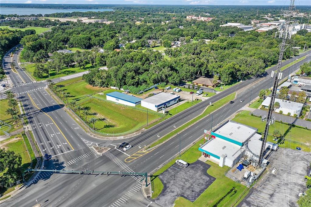 Amazing C-3 zoned corner on one of the most visible, most highly trafficked intersections in all of Lake County! This location is comprised of two buildings. The ‘upstairs’ metal building is 4,000 feet and was designed as open retail space with 15′ ceilings. It currently contains 3, 10×10 offices, two bathrooms, and a loft office overlooking the main 48’x78′ sales floor. The ‘lower’ concrete block building consists of 5 roll up metal doors which are 9 ft wide and just over 8 ft tall, leading into what was originally designed as automotive bays and are currently being used for equipment and storage. In front of this area is a conference / waiting room, 2 private 8 & 1/2′ x 9′ offices and 2 restrooms. The property was recently (2018) overhauled with new exterior paint, landscape, PVC fence around the rear, and irrigation. AC’s in the main metal building are newer. Unique pluses at this site include; 3 phase power, Large water fill valve located next to dumpster pad at the rear of property, easement agreement to utilize the 44 side ingress / egress, over 30 parking spaces, and 270 degree visibility overlooking 3 busy streets. 441 Has an overwhelming 49,000 cars per day on the East side of the 44 merge, 37,000 on the west side, and over 20,000 cars a day traveling Dixie / 44. (Plus visibility from Main St adds another 21,000 cars a day!) rnrnSite Available staring March 2021. Lease price set at $8/ft – NNN. Owner will consider dividing the two buildings, but lease price would increase for a fractional lease.