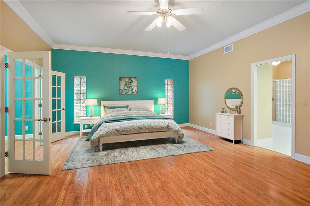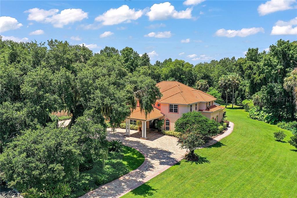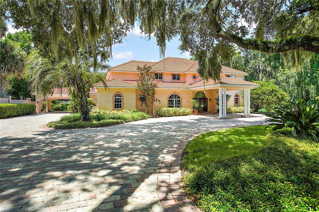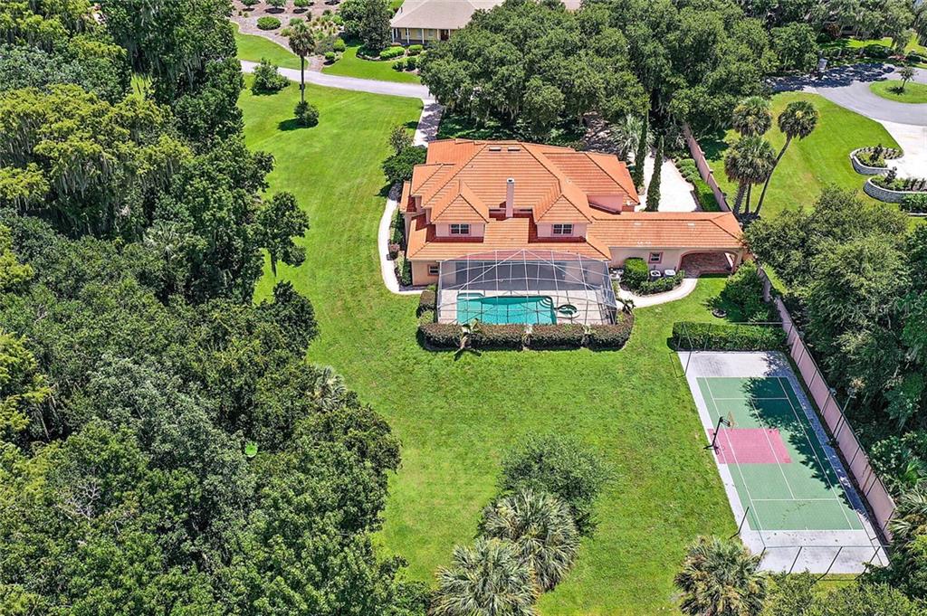 One or more photo(s) has been virtually staged. Breathtaking custom Built home on a 1.5 acre canal front lot in the gated Majestic Oak Shores community. This home is the perfect place to enjoy all the Harris Chain of Lakes has to offer. Entering the foyer through the porte-cochere you find the large formal Living Room and dining room and beautiful tile floors throughout the first floor. The family room features 20 foot ceilings, gas fireplace and French doors that look out over the pool/spa. There is no shortage of cabinet space in this kitchen that also has granite countertops, trey ceiling, a large island and wet bar. The first floor has a large bonus room that can be converted into a mother-in-law suite or home office. The first floor master bedroom includes two walk-in closets, a study, and luxurious master bathroom with a garden tub and a separate shower. There are 4 huge bedrooms upstairs and a loft/game room. Outside this homes features include a pool and spa, covered patio with gas hookup for an outdoor kitchen, covered boat dock with a lift, basketball/ tennis court, and an irrigation system that saves on water by pulling from the lake. There is plenty of space to park your cars with an oversized 2 car garage plus 2 car carport. Just a few minutes from UF Hospital, Venetian Gardens Park/Ski beach, Lake Harris boat ramps and downtown Leesburg. This is truly a beautiful home. Call today to schedule a tour.