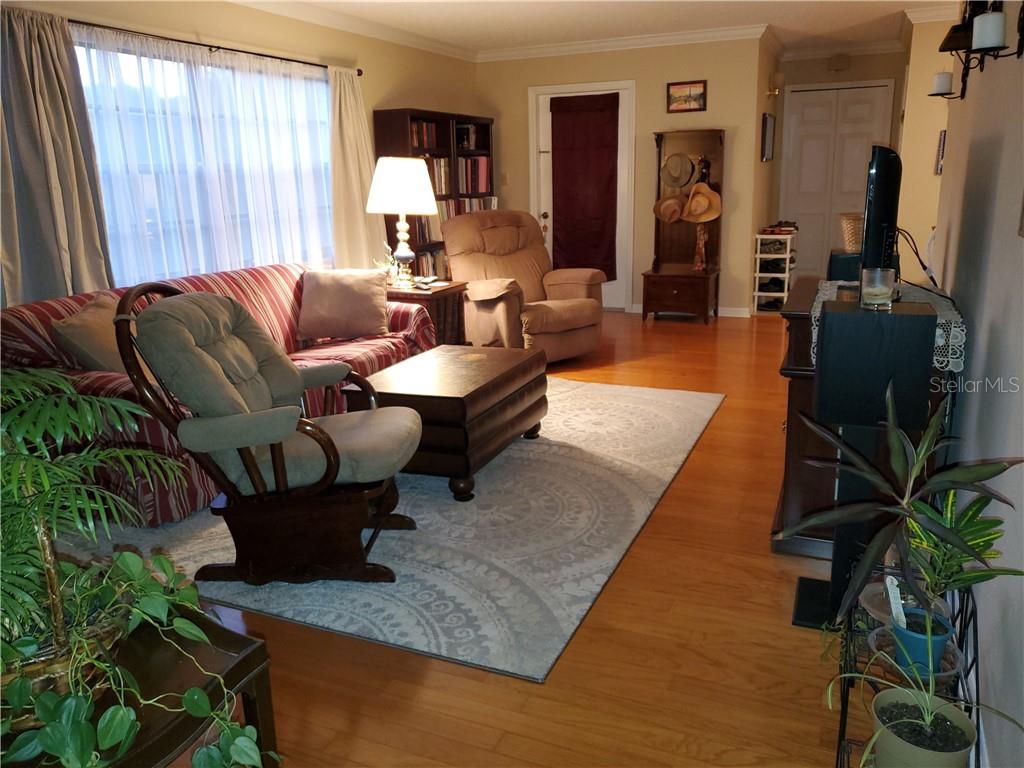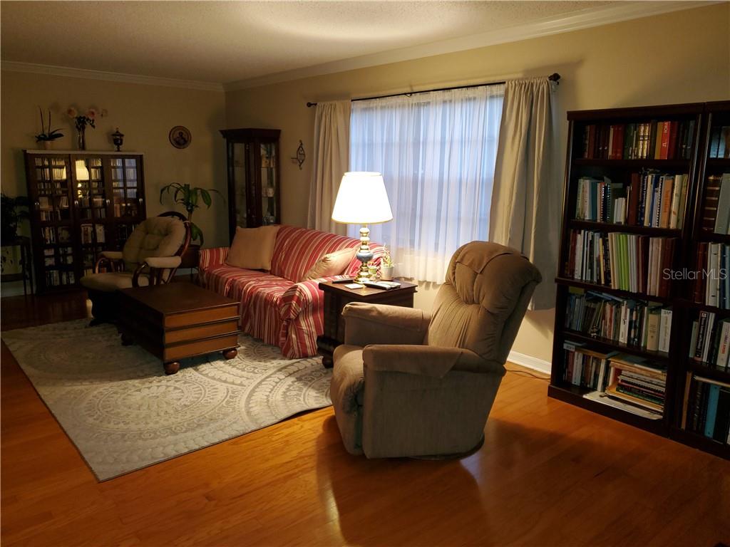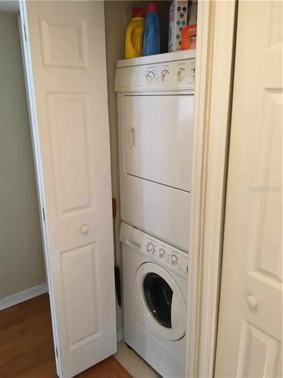 Move-in Ready! Large condo; over 1400 square foot of air conditioned space in a first floor condo. In this 55+ community, the pool, clubhouse, as well as yard maintenance is all included with Homesteaded property taxes under $200 annually! This unit is solid solid construction cement walls and ceiling with all flooring being hardwood and tile. This unit is quiet and far from the road noise being close to the serene and tranquil mature trees to the rear of the community property. This unit has many upgraded features from the updated kitchen, newer A/C unit, crown molding, newer toilets, etc… All walls and doors have been freshly painted to accentuate the move-in ready status. Direct TV is free in the unit and high speed internet cable is already installed. The stack unit washer and dryer is included in this great asking price and the dryer vents have been recently serviced for the convenience of the new owner. Possibly one of the best features of this home is the amount of ample storage space with newly installed shelving units in the in this unit. All this in a quiet neighborhood but close to shopping, dining, and everything else this great neighborhood offers. Come check out this great home before it is gone!