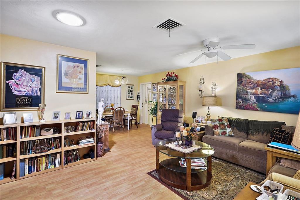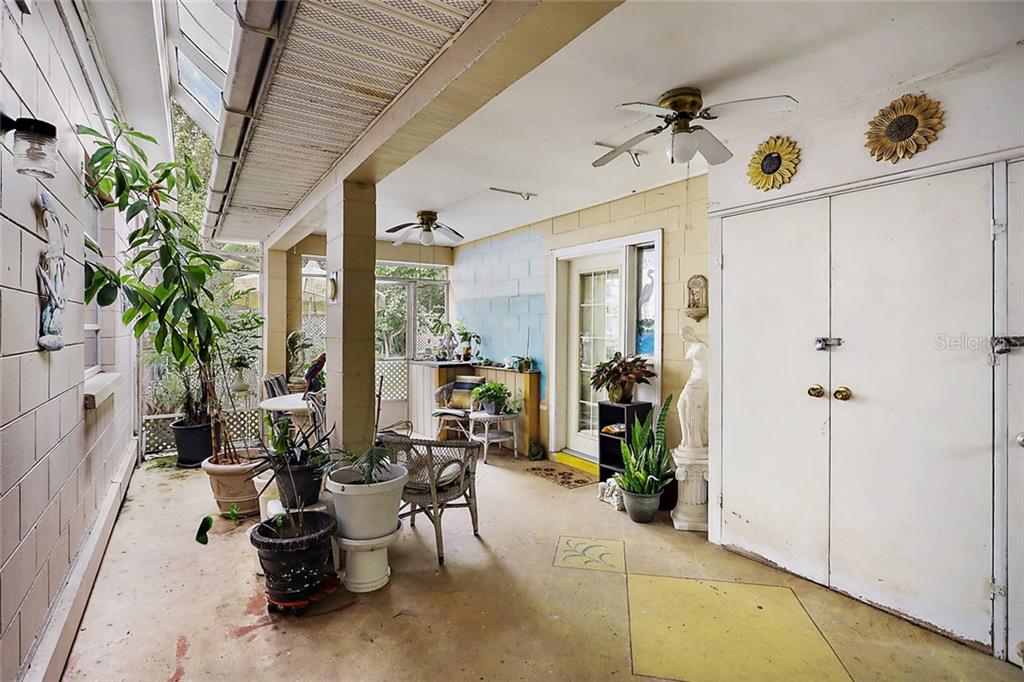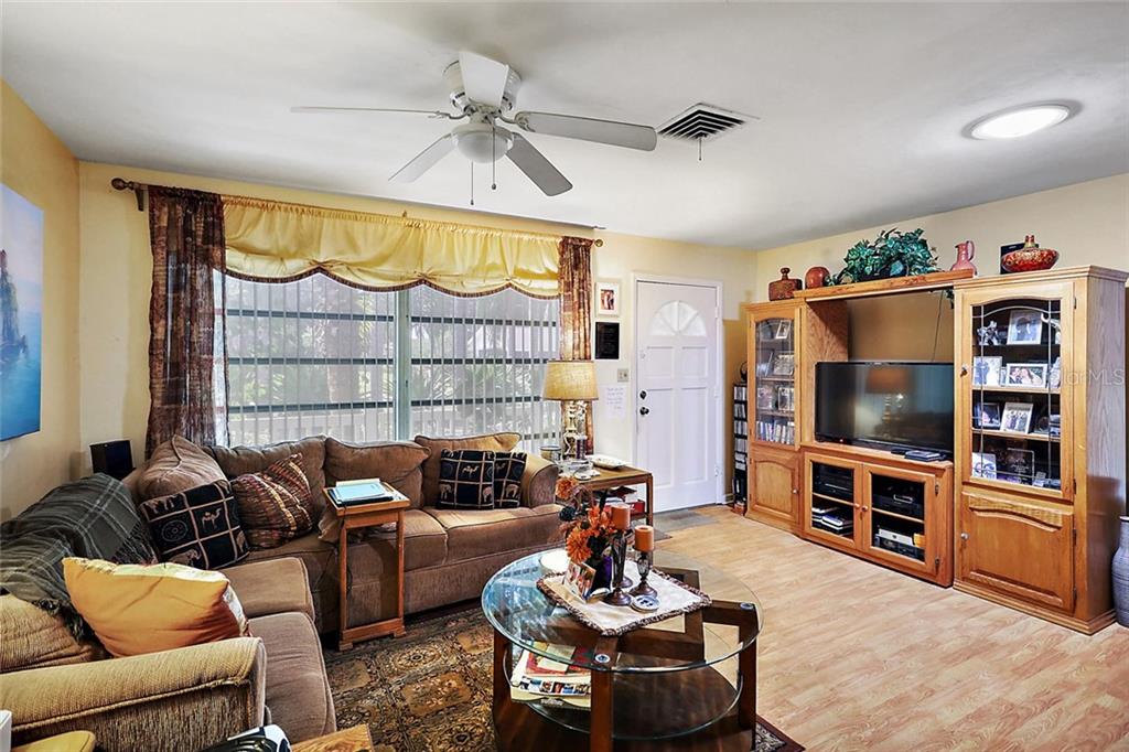 Amazing opportunity to own this 3 bedroom 2 bath home with TWO self sufficient in Law Quarters attached! Pulling up to your main home, you will be greeted by a palm lined circular driveway, lush Florida landscaping and a covered front porch. Walking in, you will notice laminate wood floors throughout the living area and attached dinette. A galley kitchen sits to your left overlooking an enclosed courtyard. To your right, a large laundry with bonus storage opens up to the exterior. Outside in the courtyard, you have access to your oversized two car garage with workshop and storage room, and a 1 bedroom in law suite just to the side. The in law suite has a 12×14 great room with kitchenette and attached bedroom / bathroom with shower. To the rear of the gated courtyard is an outdoor, landscaped patio area and fenced yard. Walking back out to the rear driveway, you will have access to another in-law suite with vaulted ceilings, a 12×12 living area, 6×9 attached kitchenette, 10×12 bedroom, and bathroom with recently updated tile shower. Both in law suites are on independent air conditioners. Home is located within short distance to Beverly Shores Elementary, and a close drive to Leesburg Regional, The Villages, The Harris Chain of Lakes, and US-27 / 441. Schedule an appointment today!