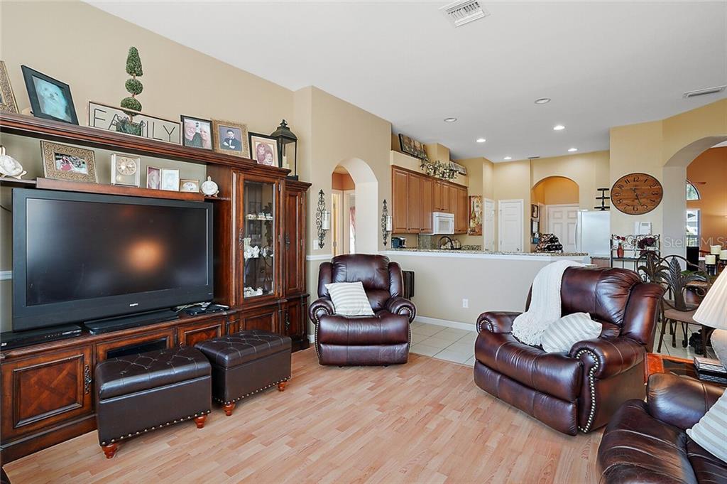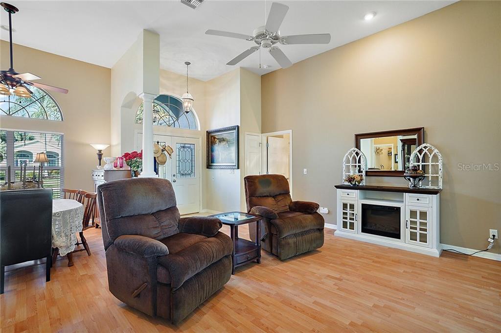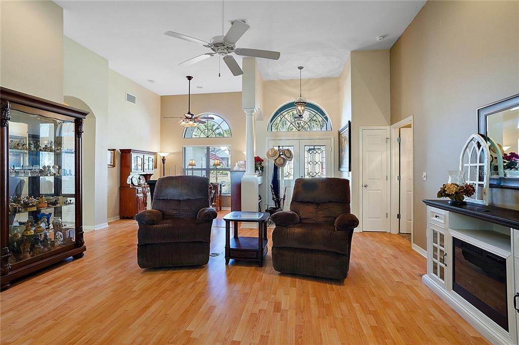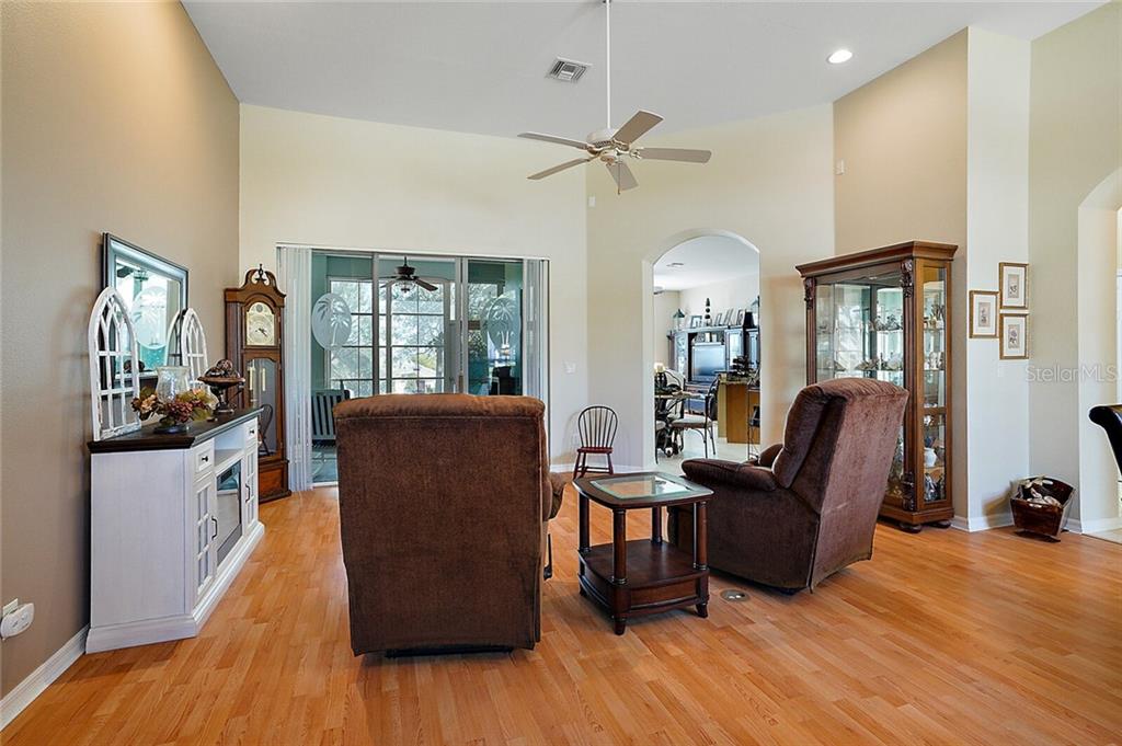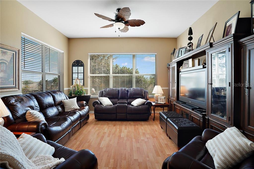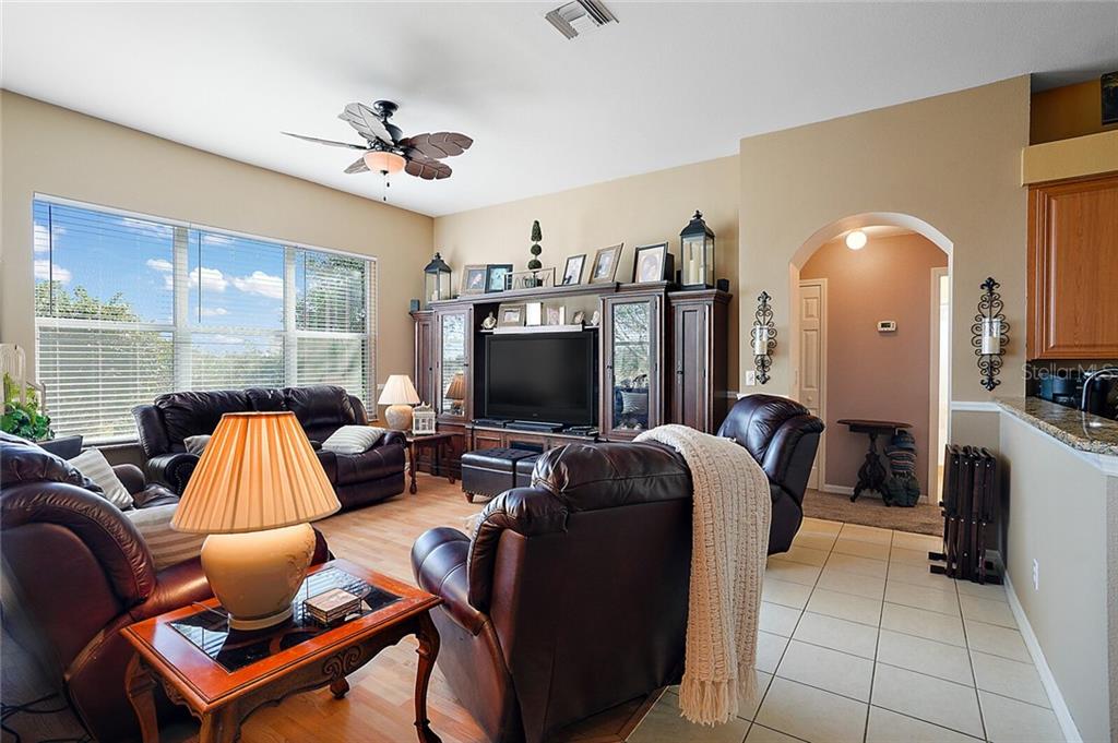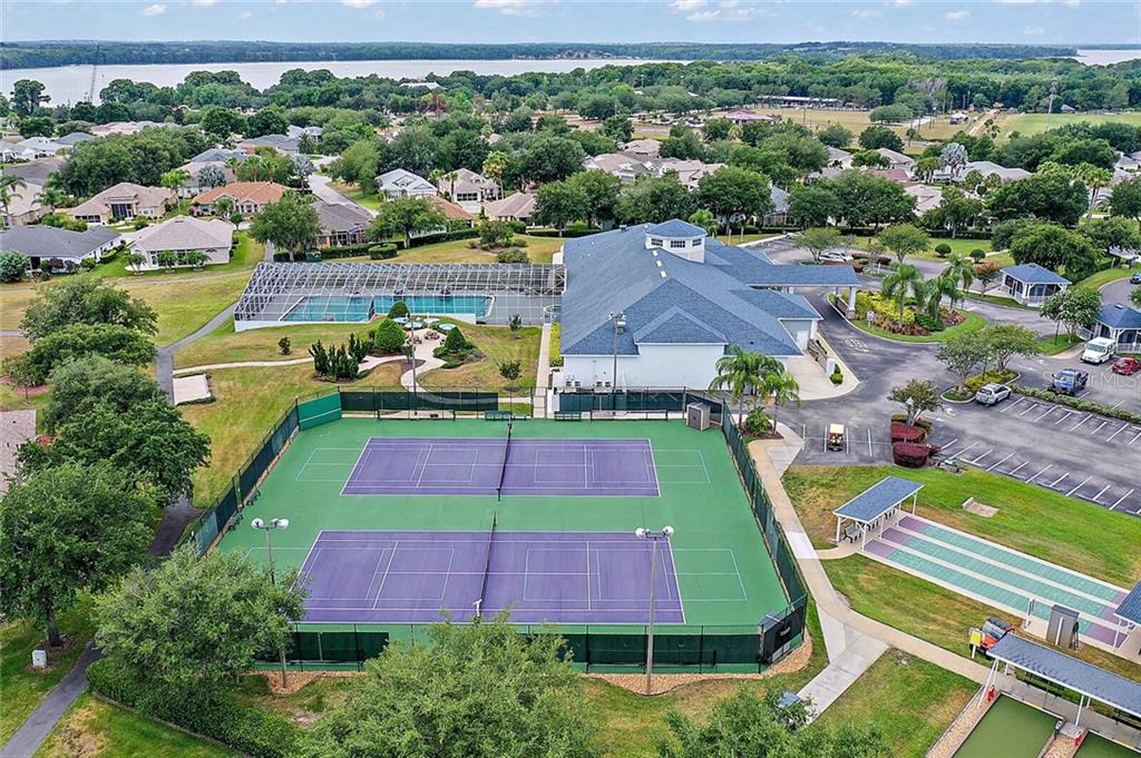 This beautiful home, located in one of only a few 55+ gated communities on Central Florida’s most desirable Chain of Lakes (THE HARRIS CHAIN OF LAKES), has all the updates you are looking for. The AC was replaced in 2016 with an energy efficient unit. A new roof and water heater were installed in 2018, and the interior has recently been completely repainted. The kitchen has been updated with refaced cabinets, granite countertops, and tile floors and boasts plenty of cabinet space and two pantries. This space leads to the family room and an enormous enclosed lanai with tile floors and a window that can be opened to enjoy a gentle breeze any time of year. You also have access to the lanai from the living room and master suite. This impressive Scarsborough model’s large master suite has two walk-in closets, a recently refinished, spacious master bath, and a gorgeous walk-in shower. The two roomy guest bedrooms are conveniently located at the opposite end of the house. There is an easily accessible central vac system, and additional cost saving upgrades include lightweight and easy to use hurricane shutters, double pane/UV tinted windows, separately metered irrigation, and radiant barrier in the attic. The exterior has a welcoming screened in front entrance, charming landscaping, and no close neighbors to the rear. rn The community features include boat and RV parking, recreation center, heated pool, fitness center, cable TV/ internet, and much more. Located just across the street from Hickory Point Park with public boat ramps, 3.5 miles from shopping, and less than an hour drive to Orlando International Airport. rnThis home would truly be a wonderful place for you to enjoy life.