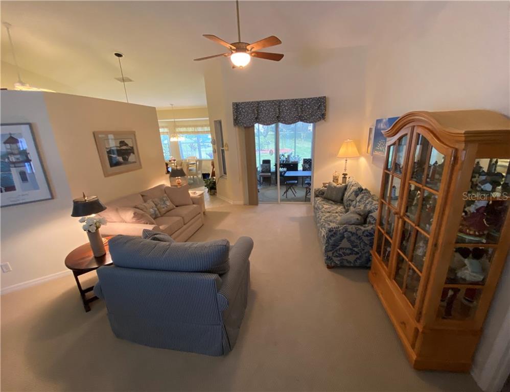 This beautiful well kept three bedroom two bath home has a comfortable open floorplan. Some of the features include large bedrooms, two walk-in closets in the master bedroom; the master bath has separate vanities as well as both a tub and a shower, plus a water closet. The guest bathroom is convenient to both of the guest bedrooms and includes a tub shower combo, pretty vanity with granite countertops and under the counter sink. The kitchen is gorgeous with its updated cabinets and under the cabinet lighting. It also boasts new granite countertops, under the counter sinks and backsplash, a newer refrigerator and dishwasher; new fan and new light. The lanai has beautiful tile floors for a comfortable setting and also has 2 new ceiling fans. There are newer window treatments; the HVAC was replaced in 2020, a screened in enclosure was added to the front entrance in 2005, all knockdown ceilings; and neutral colors throughout the home. Looking out into the beautifully landscaped property, you will notice curbing around the house, lush grass, and colorful plants for your enjoyment. The Plantation at Leesburg is a 55+ community in central Florida, and just a short drive to the attractions and beaches on both coasts. There are two golf courses, three clubhouses; three pools with hot tubs; a sauna; two exercise rooms; walking paths; tennis courts; pickle ball courts; shuffleboard; bocce; horseshoes; a softball field complete with bleachers and a concession stand; a workshop; RV storage; a restaurant; pro shop; a fishing pier; and many planned activities to enjoy. There are many lakes, ponds, and even the Palatlakaha River runs through the Plantation. Enjoy the many kinds of wildlife as they roam freely around the Plantation. Within a short golf cart drive, you can visit a diner for breakfast or lunch; sip some wine at a cigar lounge; or enjoy some nightly entertainment. You can even drive your golf cart to a walk-in medical clinic or attend a house of worship. Come make an appointment today. You will want to begin enjoying this great lifestyle in The Plantation at Leesburg