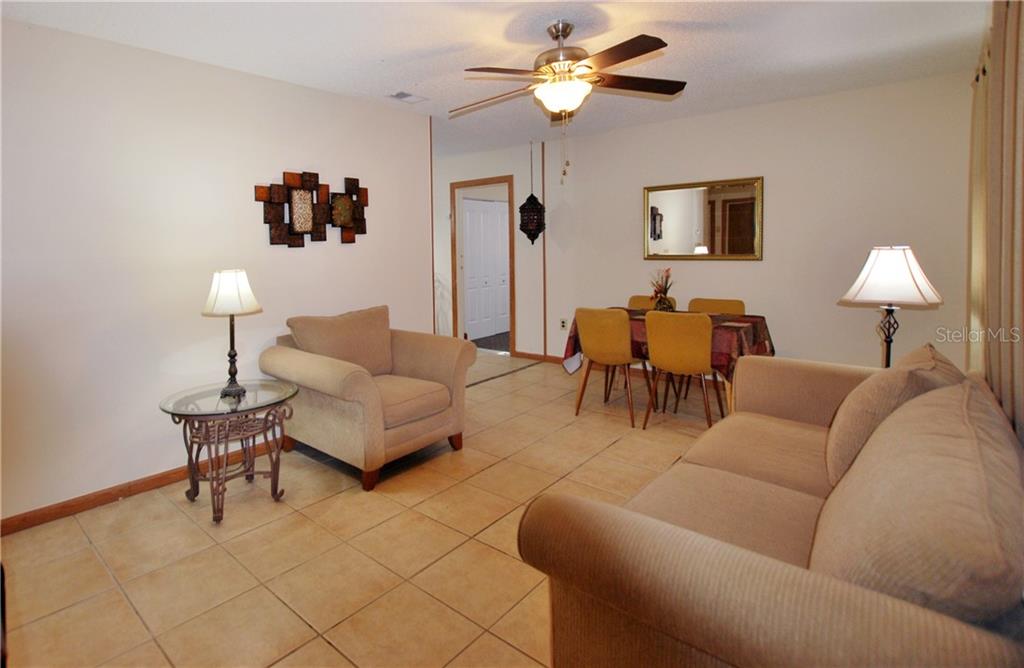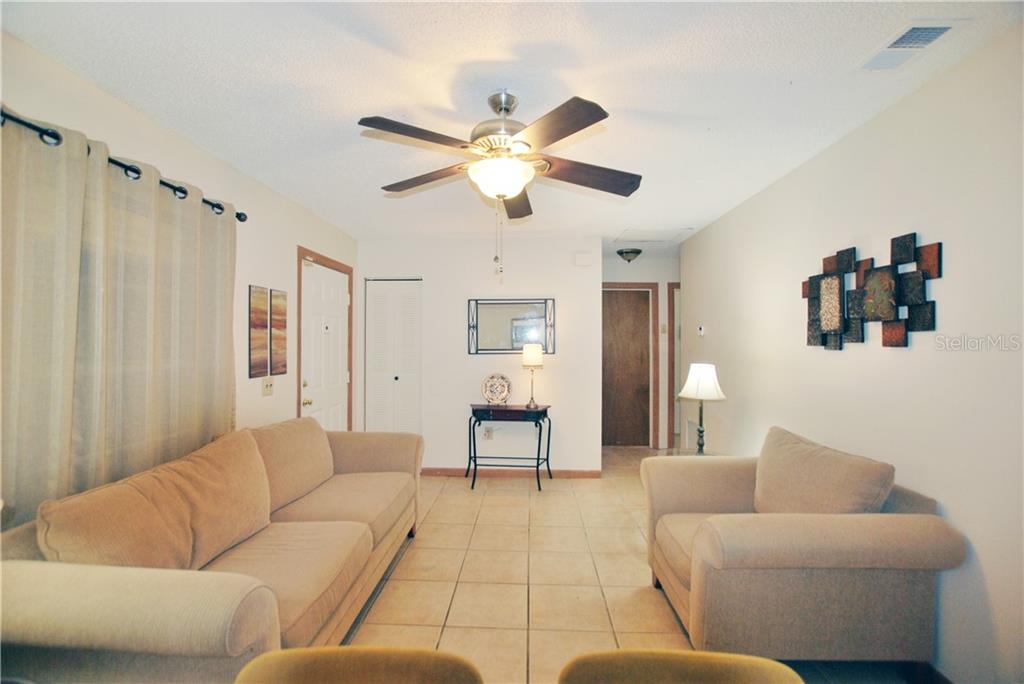 You must check out this cute 3 bedrooms, 1 bath home in a nice, quiet neighborhood in Lady Lake.rnrnOpen Plan living/dining area. Large kitchen with stainless steel appliances adjoins the breakfast nook. rnrnHuge master bedroom on one side and two other bedrooms on other side. rnrnSliding doors lead to your screen-enclosed back porch where you can enjoy your morning coffee, gaze out at the birds, or keep an eye on the little ones or pets. The backyard is spacious and fenced-in. The property boasts mature trees, flowering trees, and even an orange tree!rnrnClose to shopping, restaurants and entertainment.rnrnCheck it out today. It is priced to sell quickly and ready to move in! rnrnPlease note: Window treatments do not convey.