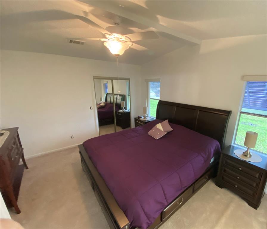 This immaculate and tastefully decorated home with neutral colors is situated on a quiet lot with no rear neighbors. You can enjoy the views of the conservation area while sitting in your lanai enjoying your morning coffee or lounging on quiet evenings. This home is jam packed with extras such as newer carpeting; a drywall package throughout; vaulted ceilings; new range, 2018; new refrigerator, 2018; new HVAC system, 2019; new roof, 2016; most of the outlets and electric switches have been updated; new blinds in living room; new vent and fan in guest bathroom; plus, most rooms are freshly painted, and even some of the lights have been replaced. BOTH bedrooms feature a walk in closet. The large golf cart/storage area houses the washer and dryer and has a rear door that opens to a private patio. Best of all it is in the Belle Grove Village of The Plantation at Leesburg. Centrally located near the attractions, and beaches, The Plantation at Leesburg offers, tennis courts, pickle ball courts, horseshoes, bocce, shuffleboard, 3 clubhouses, 3 pools and hot tubs, a sauna, a library, and activity rooms for the numerous activities. There is also a fishing pier, a softball field complete with bleachers and a concession stand, two golf courses, a volley ball court, a walking path and much more. Take a golf cart ride to the restaurant and pro shop, a diner, a cigar lounge, a place for evening entertainment, and even a walk in medical clinic and place of worship. Come make an appointment to view this home today. You will want to make it your own and start living the lifestyle offered at the Plantation at Leesburg.
