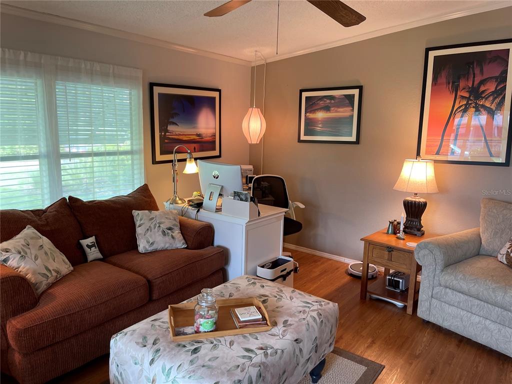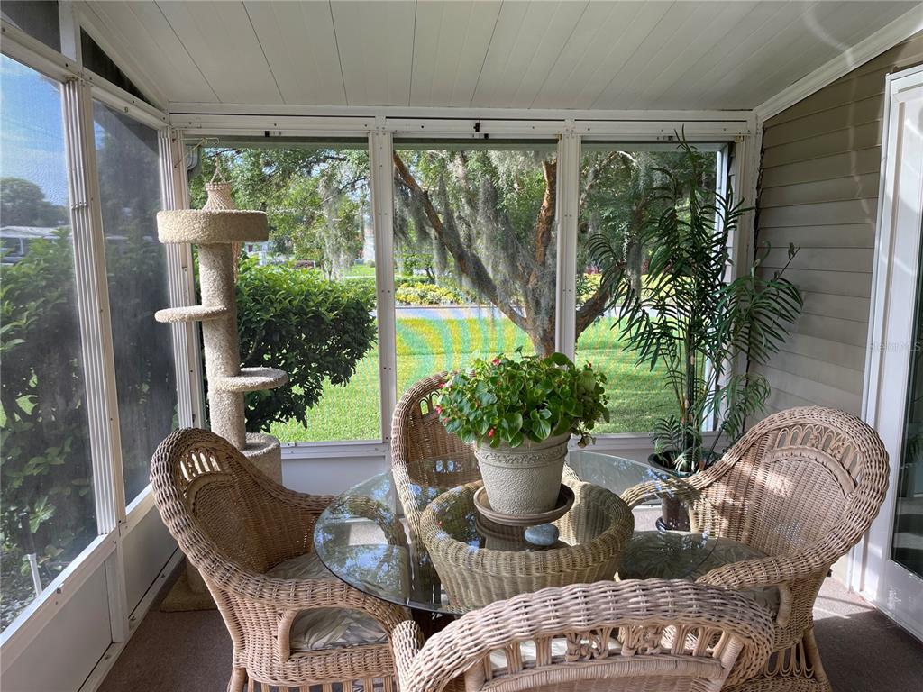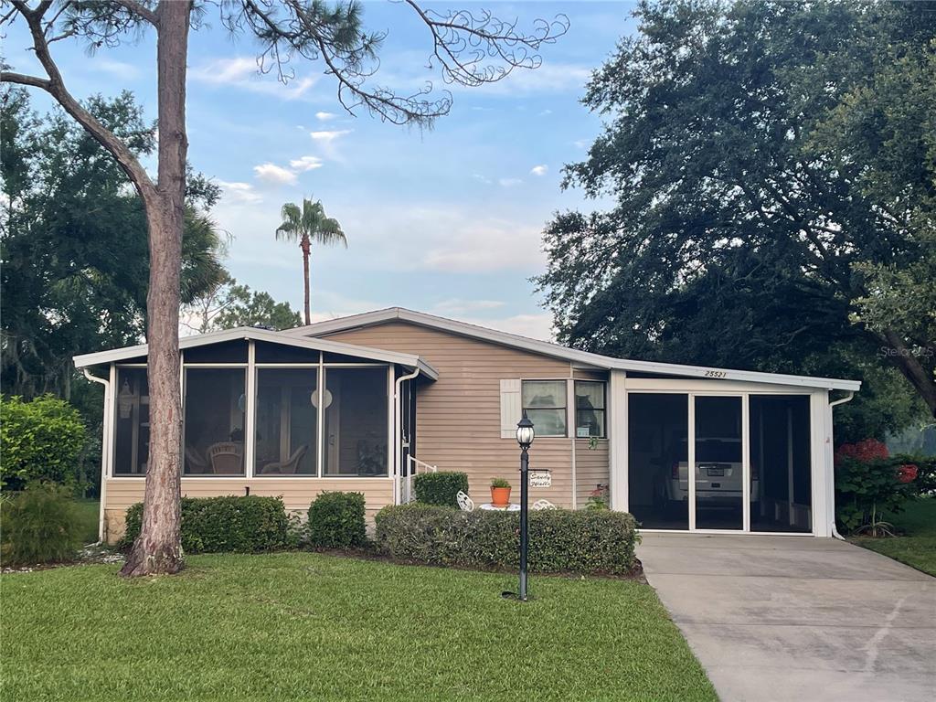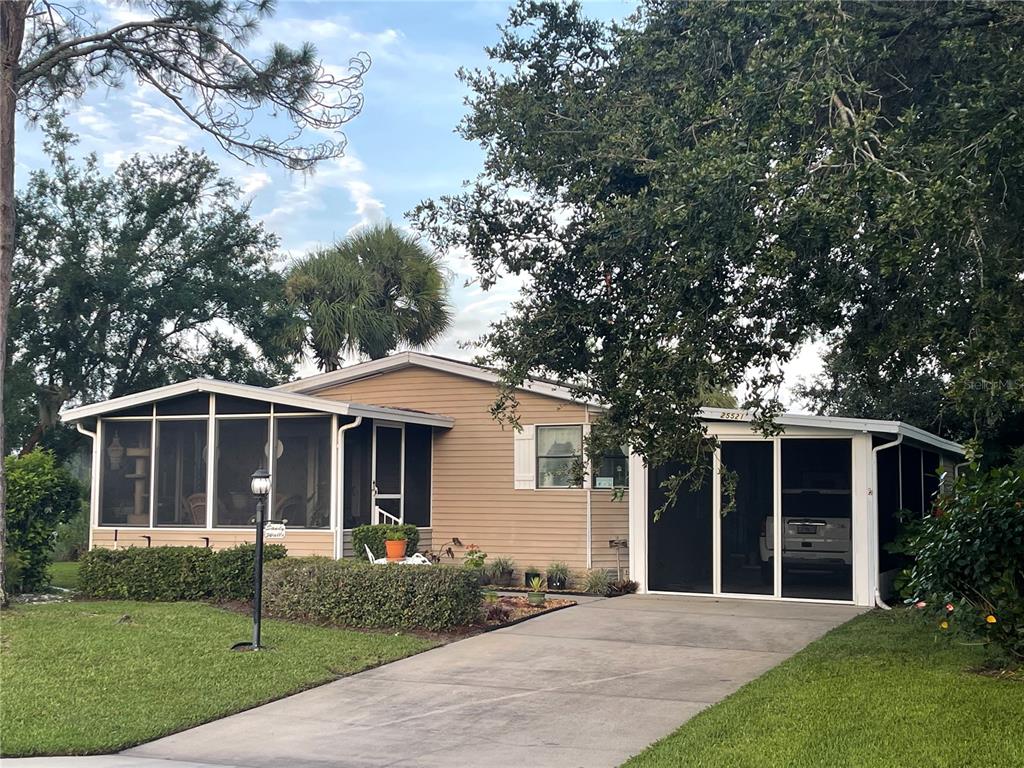 Check out this cute 2 bedroom 2 bathroom home located in The Plantation at Leesburg. It is well maintained and has new roof in 2015 and a/c in 2012. House sits on a quiet corner in Belle Grove and over looks the driving range. It has new sliding glass door to lanai and a screened in carport with car access. Interior has warm colors and updated laminate, tile and carpet. 2 glass sky lights were installed with new roof. Yard is easy to maintain too. The Planation has 2 championship golf courses, 3 community centers with pools, tennis, pickleball, pool tables, The Oaks restaurant and so much more. Check this one out. It’s not gonna last long! Call now!