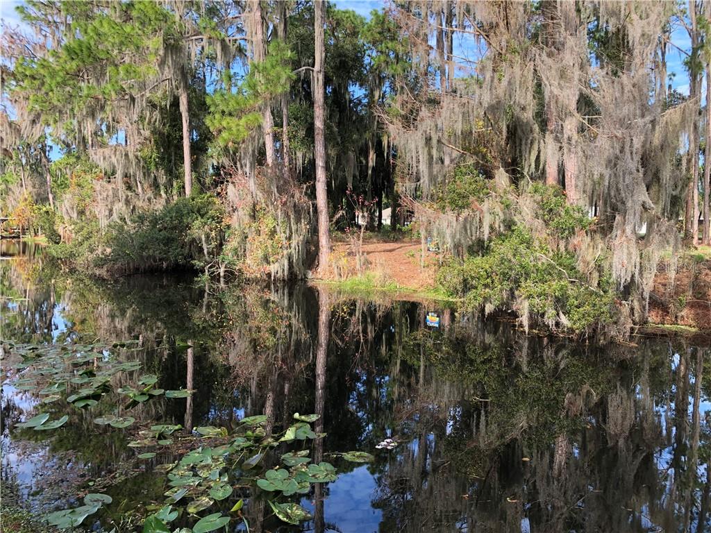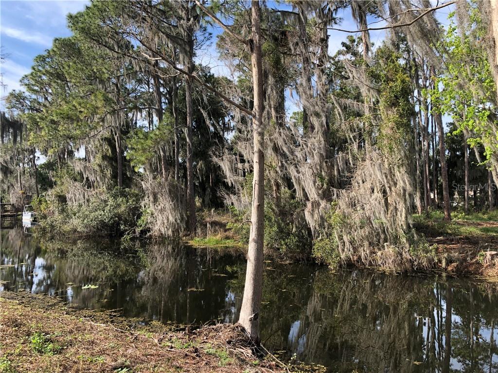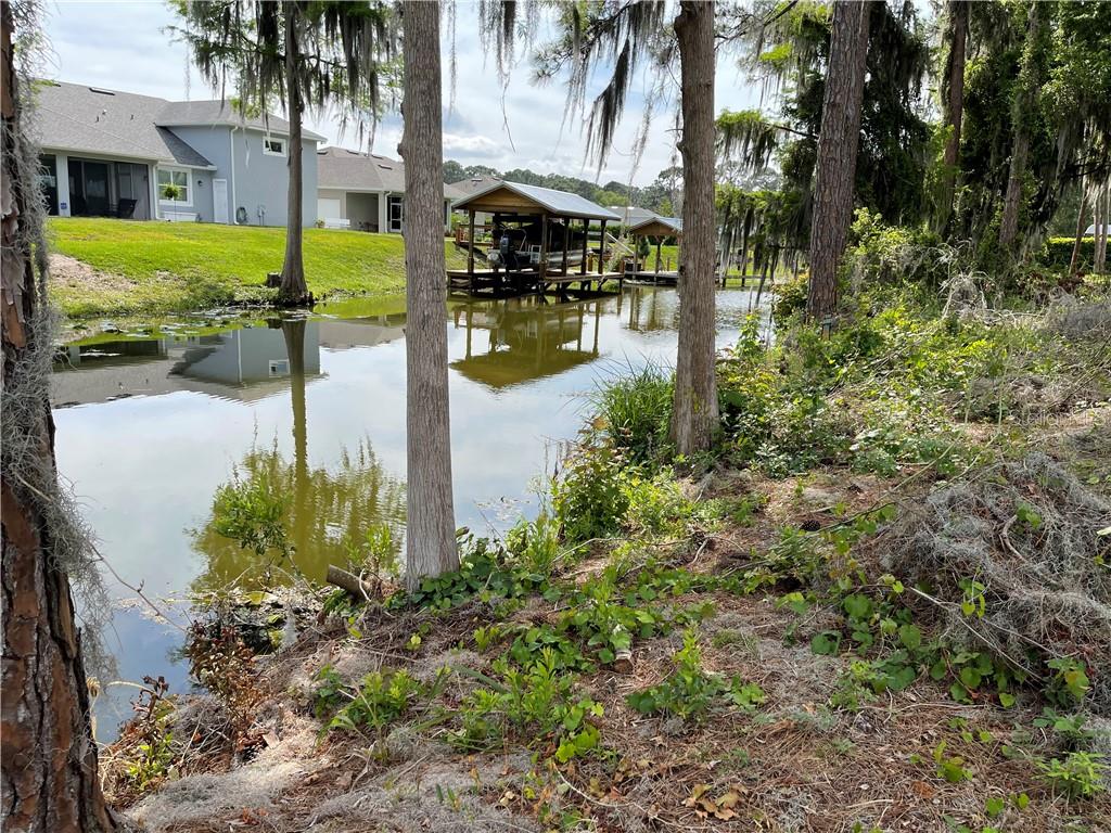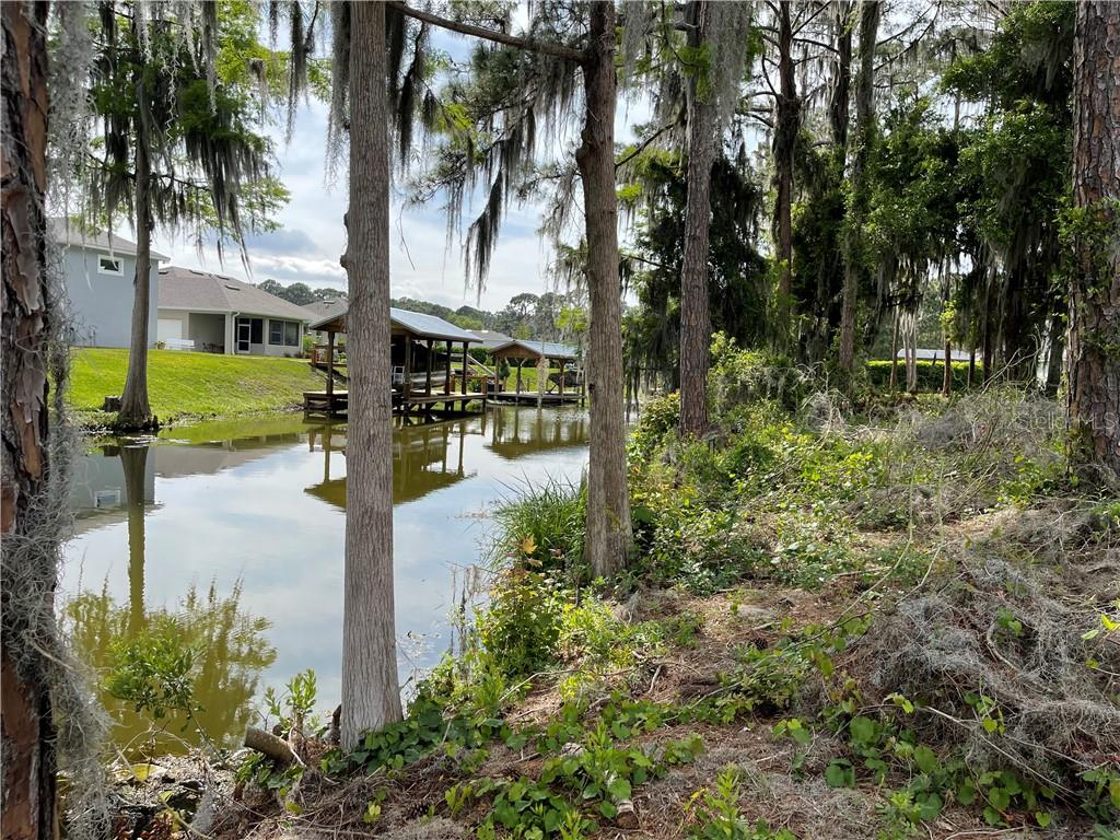 Beautiful wooded lot on a canal off of Lake Eustis and on the Chain of lakes! Once built, it will be a perfect location to moor your boat. This property is 5 lots from the lake. It is almost 1/2 acre in size set in a peaceful and quiet community in the center of upscale homes. Frontage is about 100 feet by 200 feet deep. Central sewer and water and is on paved road. Deed restricted community that allows you to bring own builder. HOA approval of building plans. Enjoy water recreation, fresh water fishing and close proximity to shopping, entertainment, hospitals, and under an hour to Disney World, Disney Springs, Universal Studios, Legoland and Gator World. Please note most maps don’t properly reflect the canal, but it is there. More pictures have been added due to the 5 new homes that are being built across the canal. The dock pictures are the neighbors for perspective.