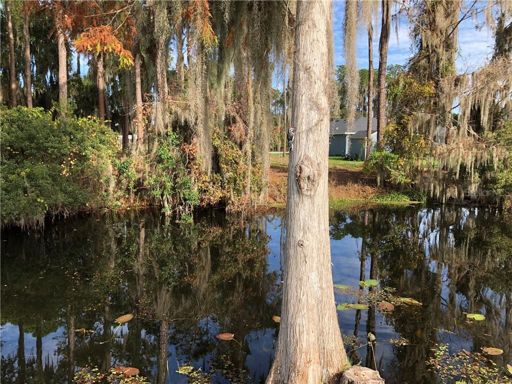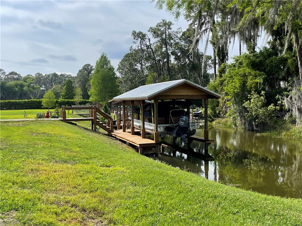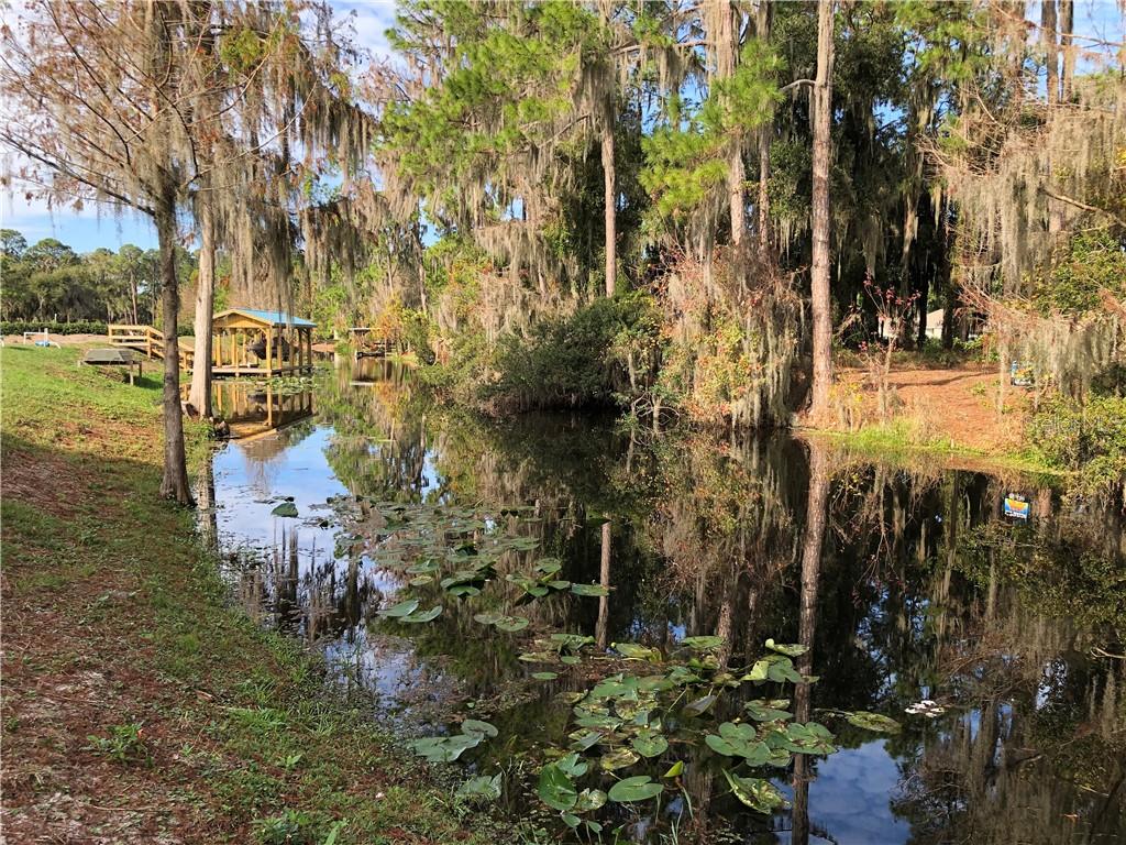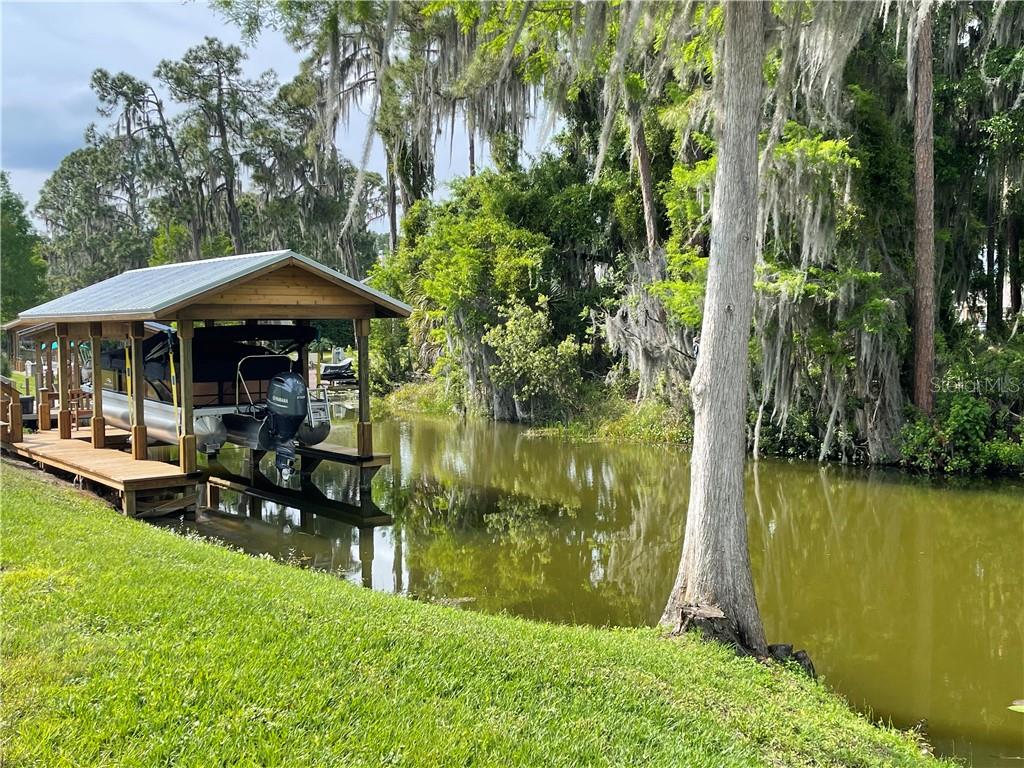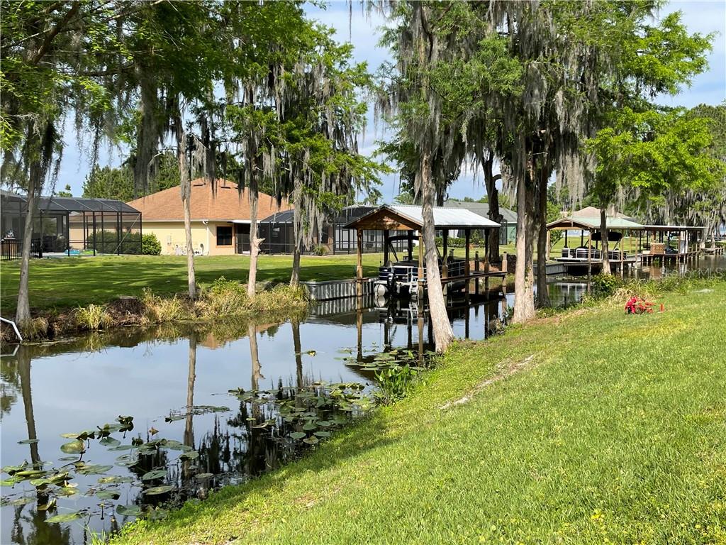 Beautiful wooded lot on a canal off of Lake Eustis and on the Chain of lakes! Once built, it will be a perfect location to moor your boat. This property is 5 lots from the lake. It is almost 1/2 acre in size set in a peaceful and quiet community in the center of upscale homes. Frontage is about 100 feet by 200 feet deep. Central sewer and water and is on paved road. Deed restricted community that allows you to bring own builder. HOA approval of building plans. Enjoy water recreation, fresh water fishing and close proximity to shopping, entertainment, hospitals, and under an hour to Disney World, Disney Springs, Universal Studios, Legoland and Gator World. Please note most maps don’t properly reflect the canal, but it is there. More pictures have been added due to the 5 new homes that are being built across the canal. The dock pictures are the neighbors for perspective.