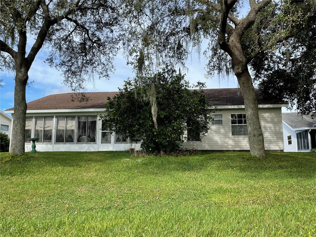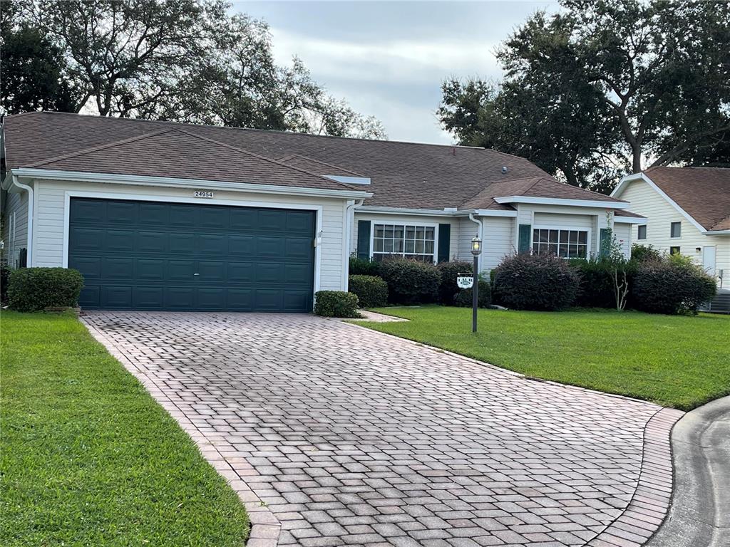 Check out this Plantation at Leesburg Montego floor plan home. This 3 bedroom 2 bath home is on a quiet cul de sac with a stunning view of pond and trees from the lanai. Imagine yourself enjoying a beautiful sunrise while savoring your morning espresso or evening entertaining with family and friends. The Montego floor plan has 2 bedrooms and bath on one side of home, while master bedroom suite is on other. The kitchen has white cabinetry with ample drawers and pantry. The common areas flow nicely around and have laminate flooring and new base boards. The large flat driveway has pavers and is perfect for parking your RV for a night or two. The garage offers a utility sink for those craft and home projects. The orange tree off the lanai has great tasting squeezed orange juice in season. The Planation at Leesburg has a well managed HOA and maintenance department for the common grounds. Enjoy this gem that offers two 18 hole championship golf courses, club house, restaurant, tennis, pickle ball, 3 community pools, entertainment, activities and so much more. Don’t hesitate, call NOW!
