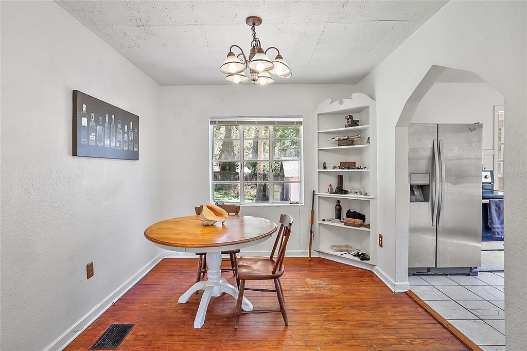 Come take a look at this spacious two bedroom, one bath home with a bonus room. Home boasts no HOA, a 20 x 14 detached garage, additional parking and a courtyard area. Original hardwood floors are throughout the house and a former porch was converted to make a laundry room / mud room. Architectural shingle roof new in 2020 along with updated electric panel. Downtown Leesburg is only moments away / walking distance along with Venetian Cove Marina, Pat Thomas baseball stadium, Rogers Park, and Venetian Gardens. Contact your agent today!