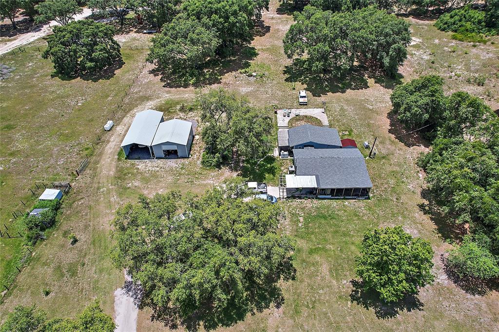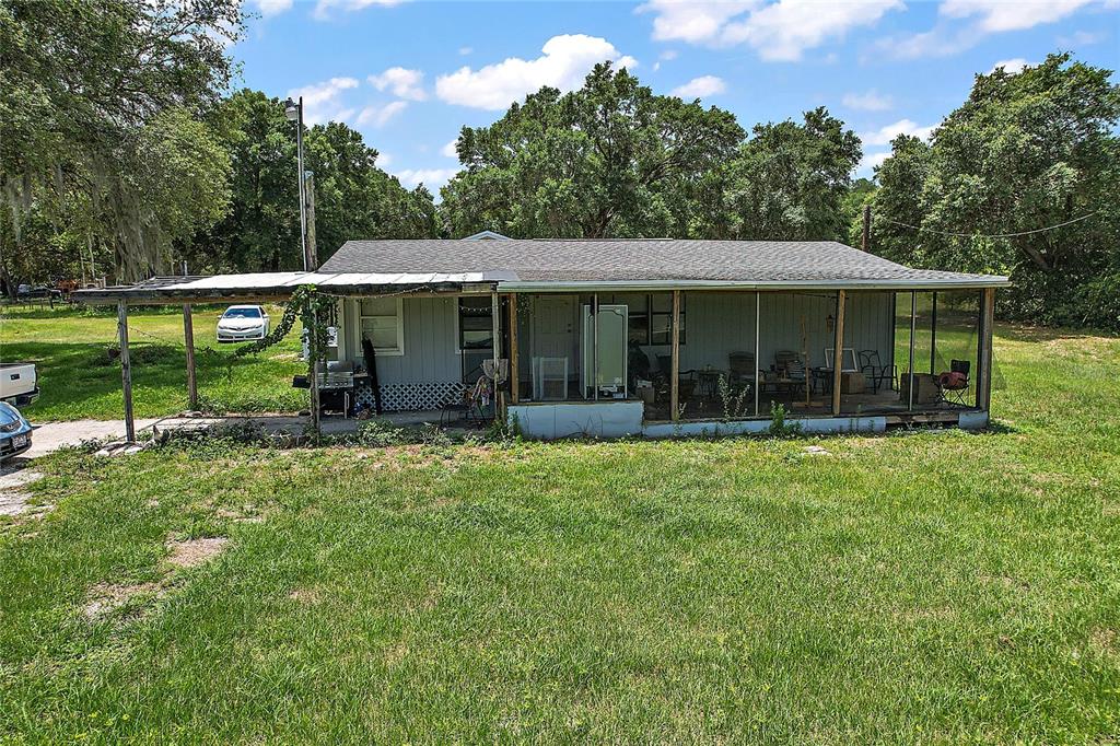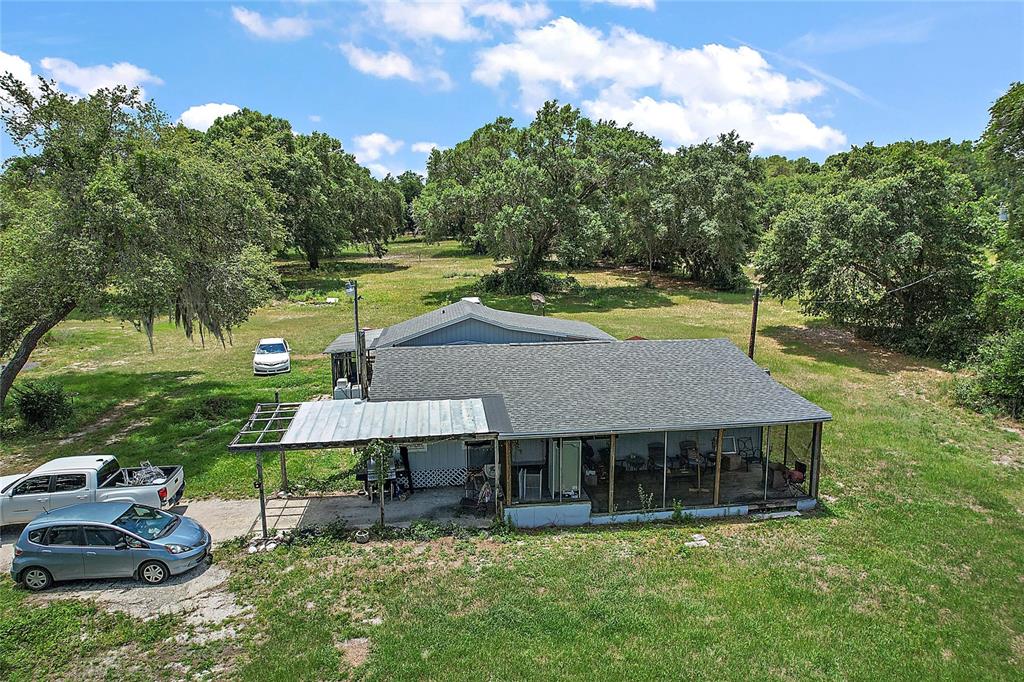 Country Living minutes to town! Just under 7 acres, this property would be great for any one with horses, cattle, toys or just someone looking for space! Located in Groveland, just south of the Leesburg line on 33, this 3 bed 3 bath home has been modified to create virtually two living spaces, ideal for a mother in law set up. The main 3 bed 2 bath manufactured home has been converted to a large 2 bedroom 2 bath, where two guest rooms have been merged together to create a large 9×20 bedroom or playroom. A master suite, kitchen and living area sit in this ‘main’ home along with a large screen porch and private entrance. Just aside the laundry room is a hallway connecting a one bedroom one bath suite (with dual shower head shower) and its own screen porch and private entrance as well. Two large metal buildings are a plus as well. One is a 2 car garage with roll up door (23’x25′) and the other is a large 20’x40′ carport. The lot is fenced and a cross fenced paddock is a plus. Cell tower easement on the property has no income conveying to buyers. Come take a look today!
