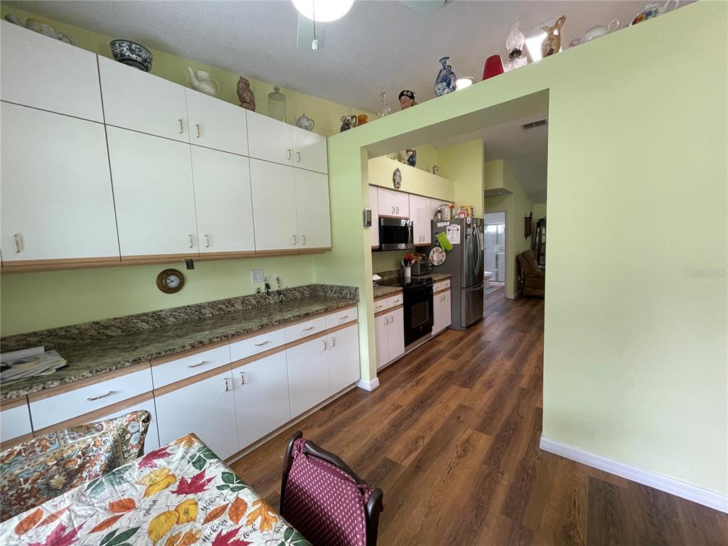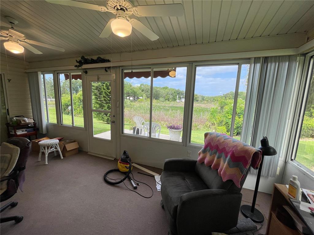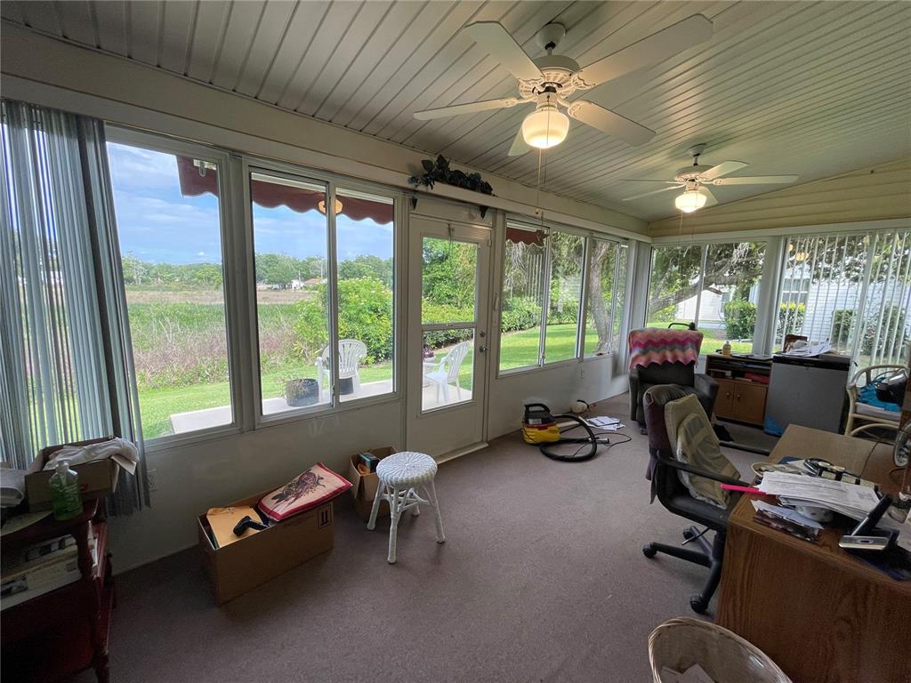 Due to buyer’s residence not selling, this gem of a home is back on the market! Check out this 2 bedroom, den, and 2 bath home in The Plantation at Leesburg, FL. A true gem in the 55+ community here. This home has a ton of updates and a lot of extra storage areas as well as cabinets. The garage cabinets all have extra lighting in them too. The kitchen and bath counters have all been updated. The kitchen appliances are newer and are included. The a/c is 5 years old. Roof was installed in 2012 with recent repairs from electric solar panel leak. New Hot water tank in 2021. The home has electric solar panels installed to defray your electrical costs. The solar panels are all paid for! Both bathrooms have step in showers and chair height toilets. Rain gutters all have leaf guards. All double hung windows replaced in 2013. 2 sun catcher awnings in front and back. Whole house Reverse osmosis water filter with salt tank. Newer vinyl plank flooring in all rooms. 3 skylights. Irrigation unit includes an automatic weed killer and feeder system. It has had recent painting and newer garage opener with remote. There is also hookups available for a utility sink. The best part…The view of the wetlands behind the house is peaceful and serene. Call today to view this gem!