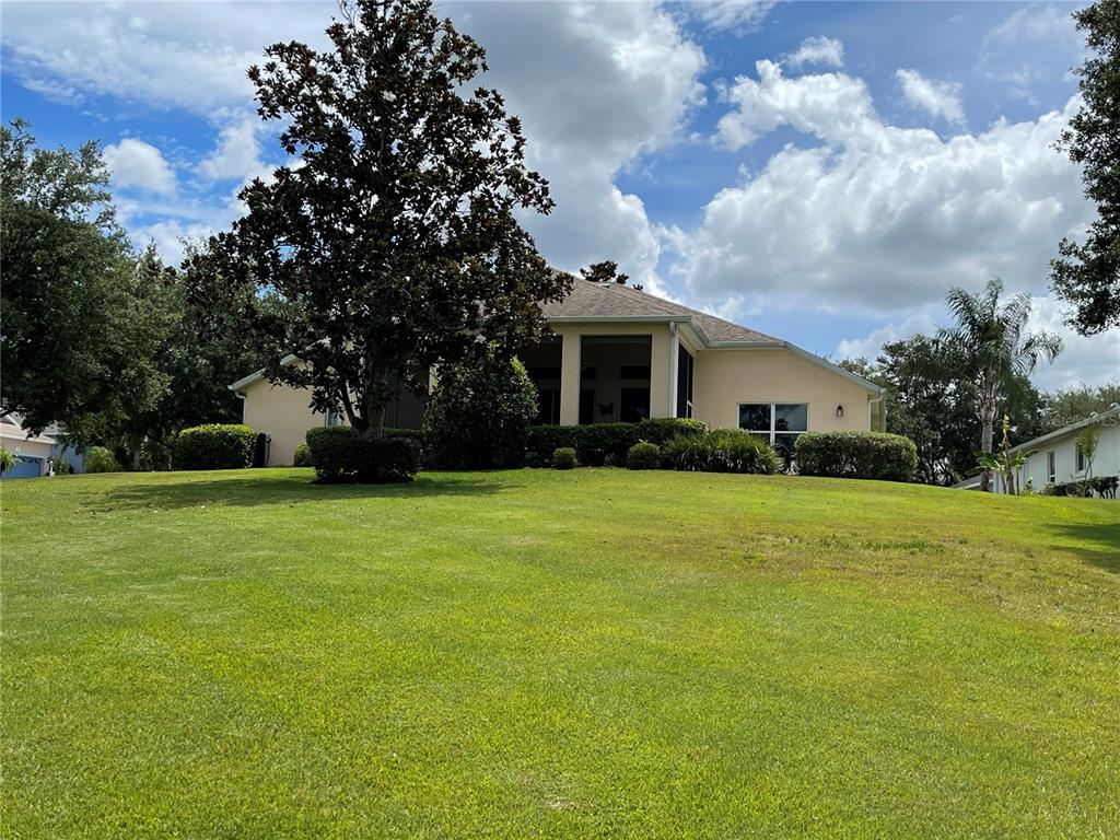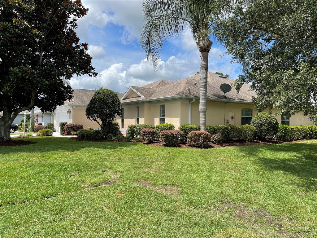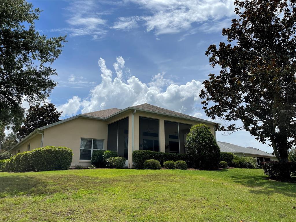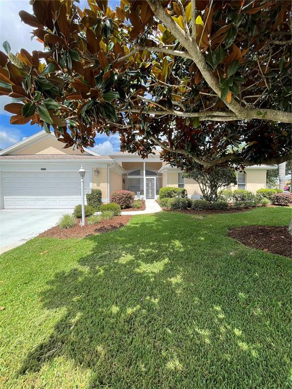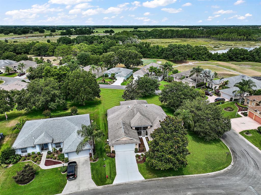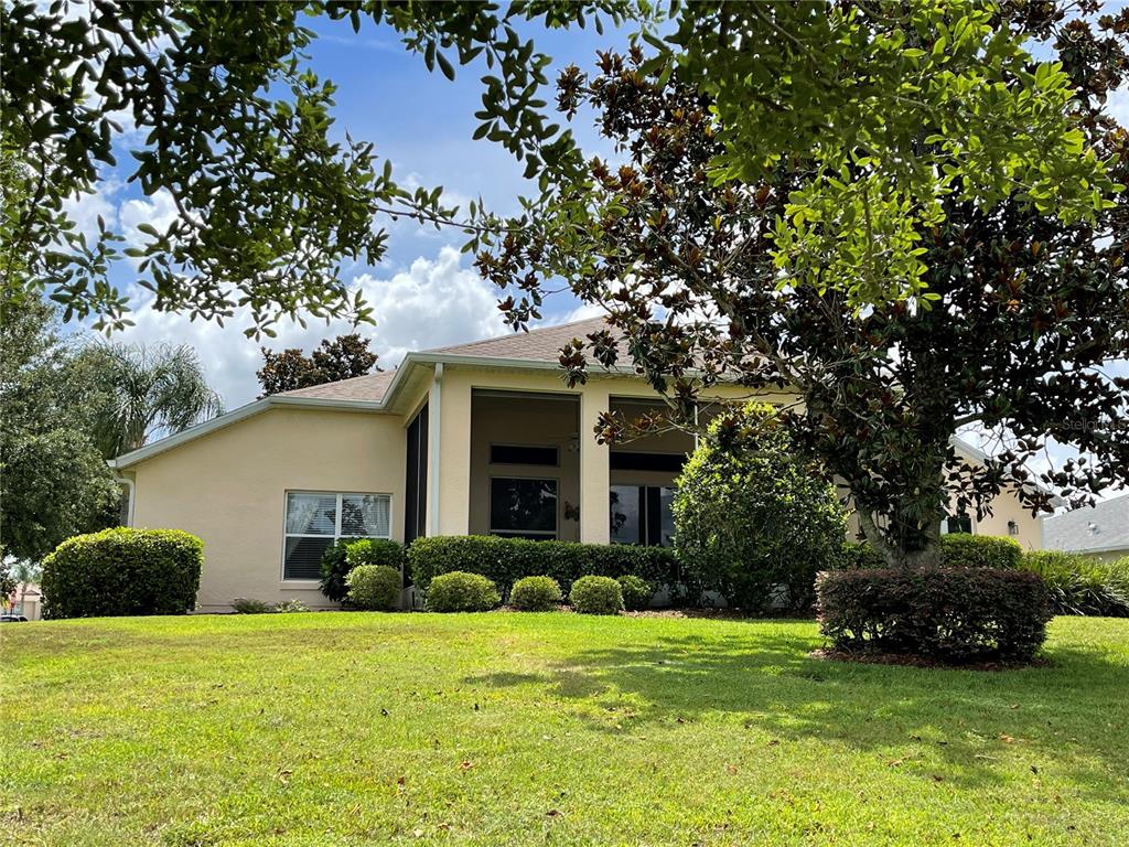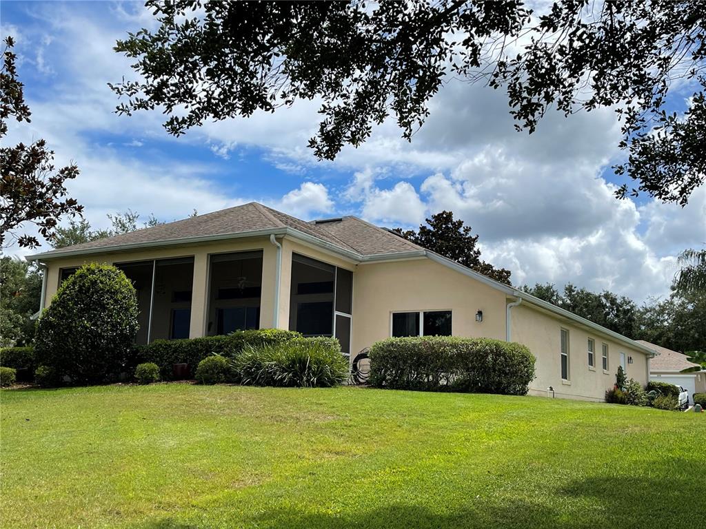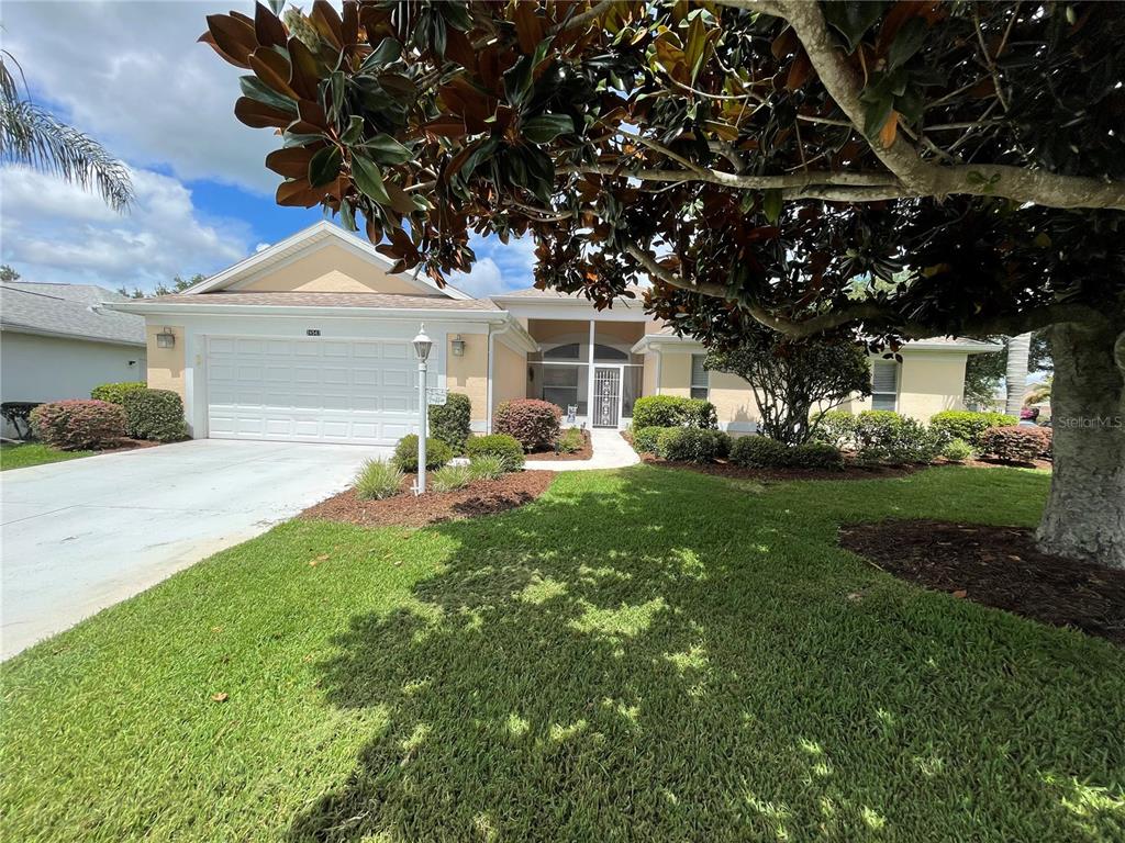 You’re going to love this 2 bedroom, den, 2 ½ bath Plantation at Leesburg home. The “Caribbean” sunsets off of the lanai are spectacular. It has a brand new roof and less than 1 year old air conditioner. This almost 2,600 square foot home sits on .44 acre beautiful corner lot in Nottoway. The home was constructed with concrete block and foam insulation to save on heating and a/c costs. You will see the quality of this home when entering the foyer with its arches and 12 foot ceilings. It has a large entry way closet, more closets galore, pantry, cabinets and plenty of additional storage. The Kitchen has a convenient island for preparing food and equipped with bar stools for a quick meal on the run. The cabinets were special ordered with details and extra decorative molding. The ceramic back splash with corian counters and corian sink just adds to the comfort. Appliances all stay. All window treatments and blinds remain. The master bedroom and bath is equally customized with his and hers built in California closets and drawers. It has a large walk in shower, garden style tub, separate his and her vanities and more. The dining and living room are spacious and has a discrete wet bar for entertaining family, friends and visitors. The family room is cozy and comfortable. The spacious back lanai measures 12×27 with screening, ceiling fans, lighting, fountain and ceramic tile flooring. There is a specially poured 12×15 concrete pad perfect for grilling, gardening or just enjoying coffee on a cool morning. The front lanai measures 8×12 and is also screened in for comfort. The windows and glass are tinted for those bright Florida sunny days. The garage has a newly replaced side door entry for easy access to the yard. The garage also includes durable shelving and additional storage in the attic with pull down stair case for convenience. The home also includes a whole house water filtering system for better quality and taste. The Plantation at Leesburg is a 55+ HOA community that is well managed and maintained. It has 3 community pools, 2 championship golf courses, tennis, pickleball, fitness center and so so much more! Check out this home and call now for your personal viewing.