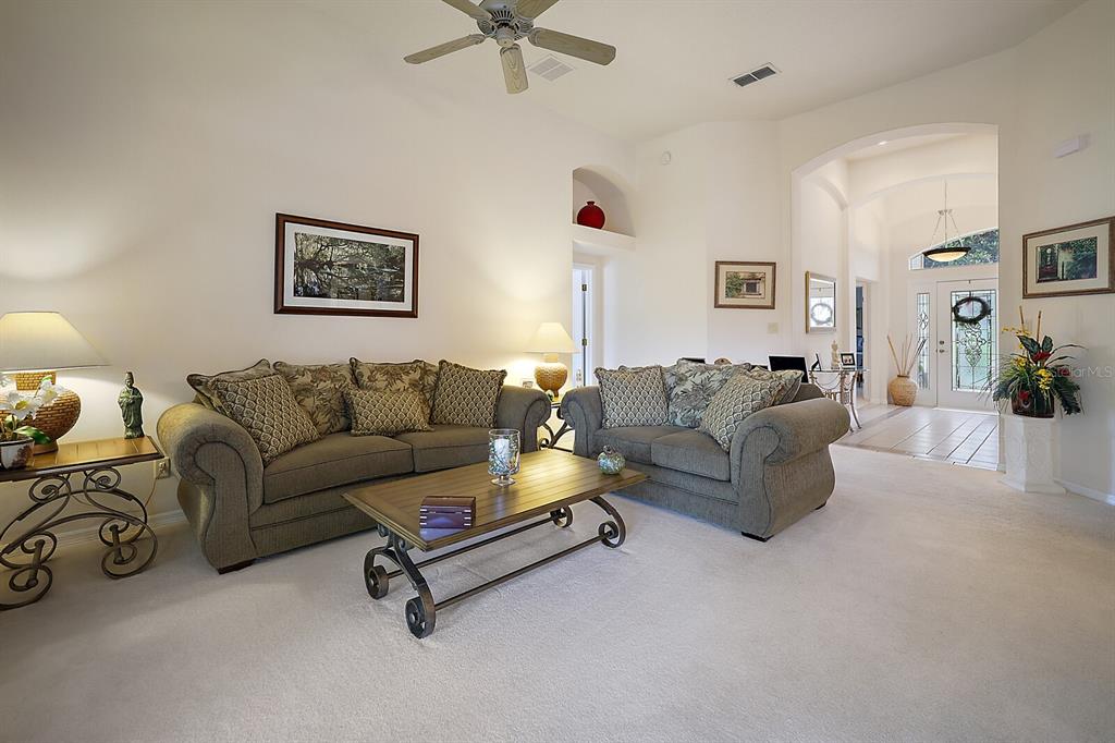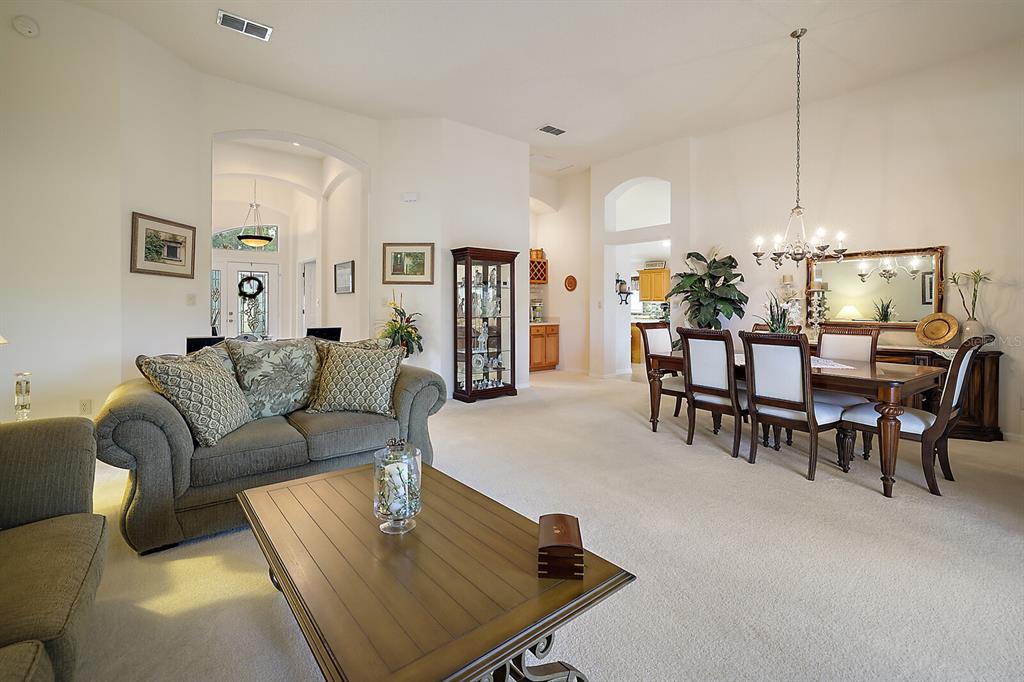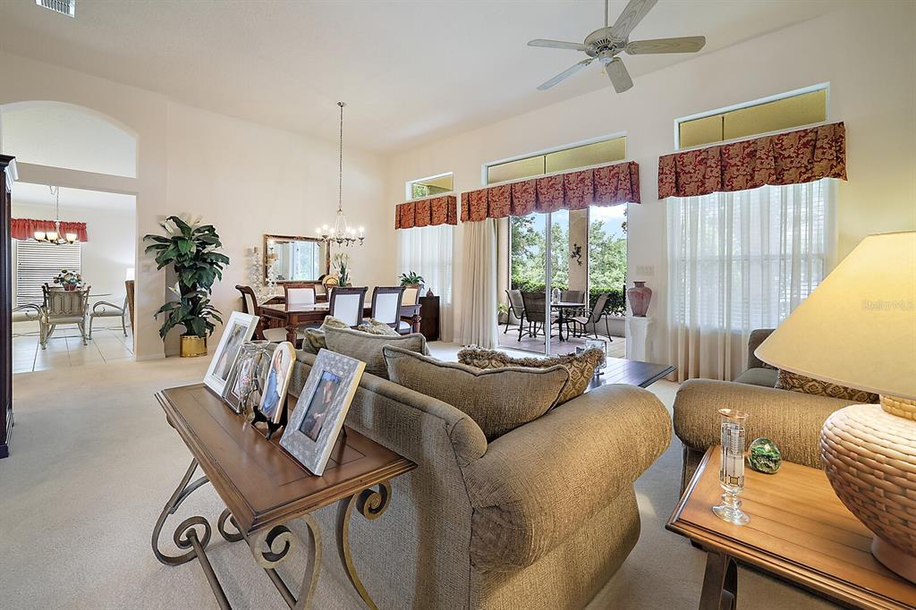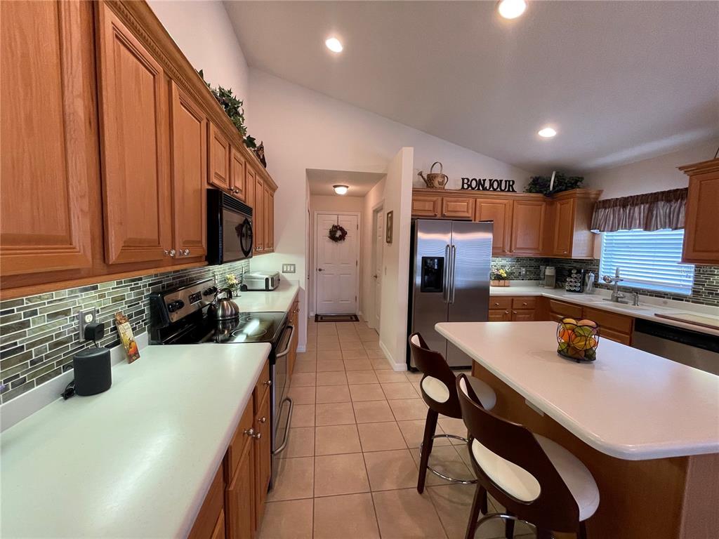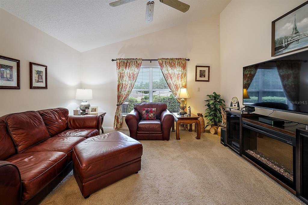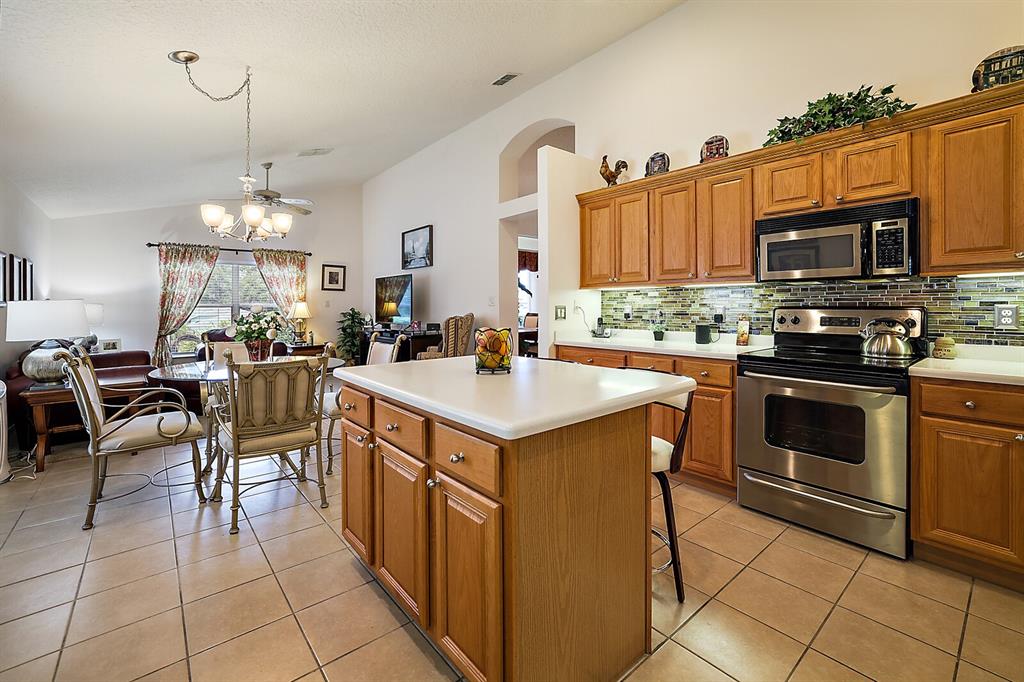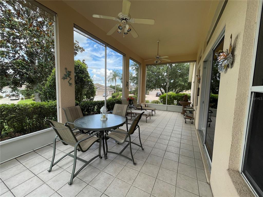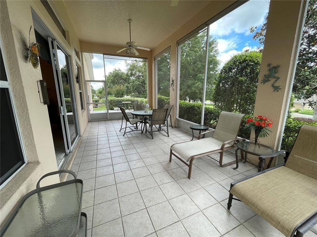 You’re going to love this 2 bedroom, den, 2 ½ bath Plantation at Leesburg home. The “Caribbean” sunsets off of the lanai are spectacular. It has a brand new roof and less than 1 year old air conditioner. This almost 2,600 square foot home sits on .44 acre beautiful corner lot in Nottoway. The home was constructed with concrete block and foam insulation to save on heating and a/c costs. You will see the quality of this home when entering the foyer with its arches and 12 foot ceilings. It has a large entry way closet, more closets galore, pantry, cabinets and plenty of additional storage. The Kitchen has a convenient island for preparing food and equipped with bar stools for a quick meal on the run. The cabinets were special ordered with details and extra decorative molding. The ceramic back splash with corian counters and corian sink just adds to the comfort. Appliances all stay. All window treatments and blinds remain. The master bedroom and bath is equally customized with his and hers built in California closets and drawers. It has a large walk in shower, garden style tub, separate his and her vanities and more. The dining and living room are spacious and has a discrete wet bar for entertaining family, friends and visitors. The family room is cozy and comfortable. The spacious back lanai measures 12×27 with screening, ceiling fans, lighting, fountain and ceramic tile flooring. There is a specially poured 12×15 concrete pad perfect for grilling, gardening or just enjoying coffee on a cool morning. The front lanai measures 8×12 and is also screened in for comfort. The windows and glass are tinted for those bright Florida sunny days. The garage has a newly replaced side door entry for easy access to the yard. The garage also includes durable shelving and additional storage in the attic with pull down stair case for convenience. The home also includes a whole house water filtering system for better quality and taste. The Plantation at Leesburg is a 55+ HOA community that is well managed and maintained. It has 3 community pools, 2 championship golf courses, tennis, pickleball, fitness center and so so much more! Check out this home and call now for your personal viewing.