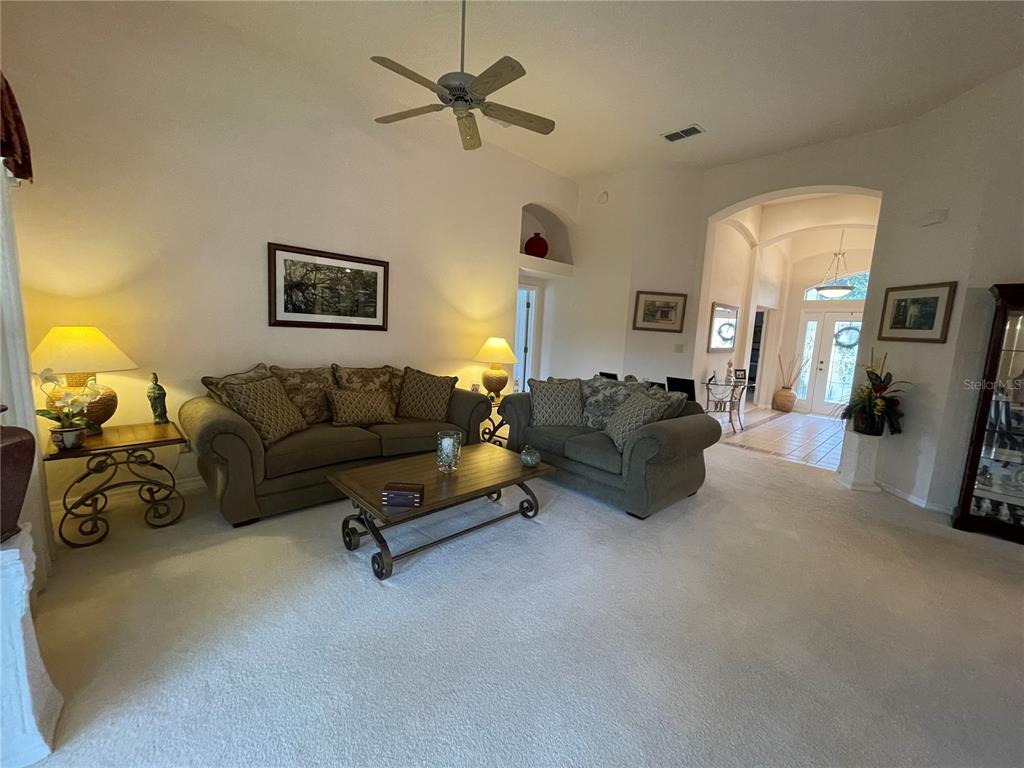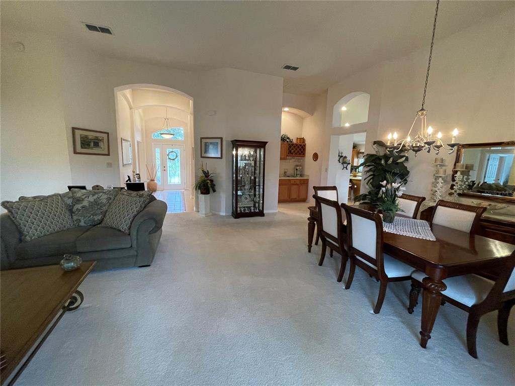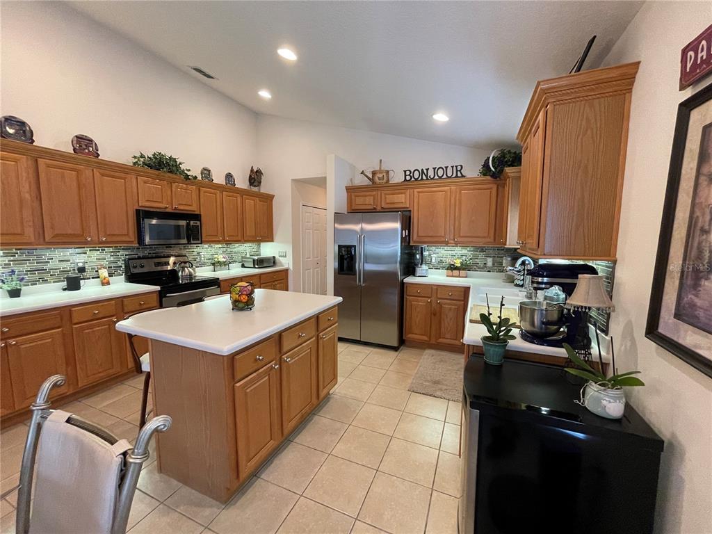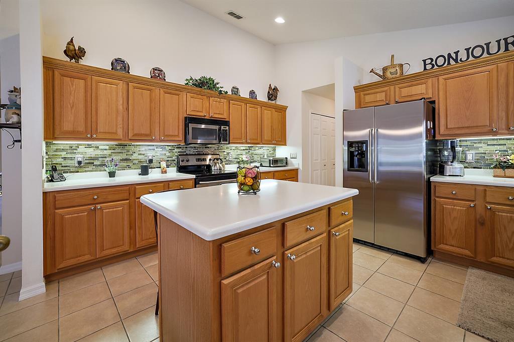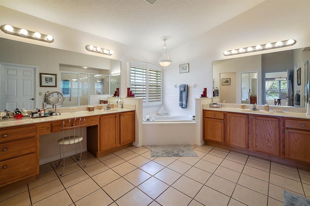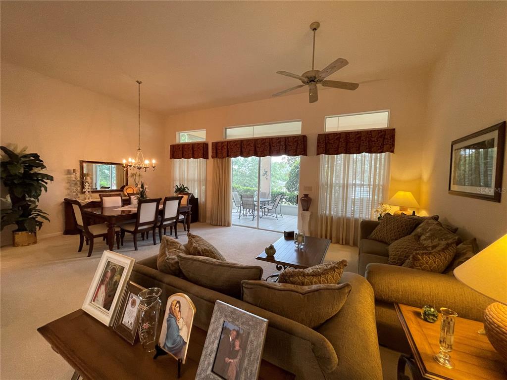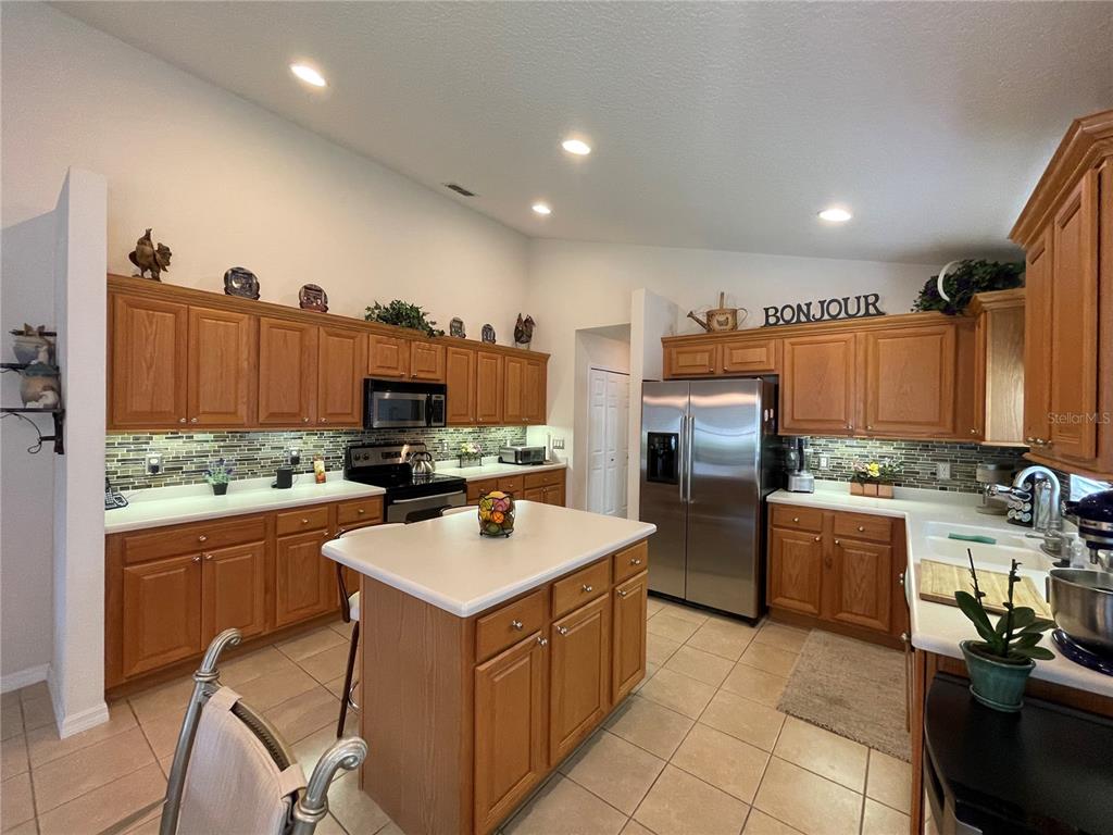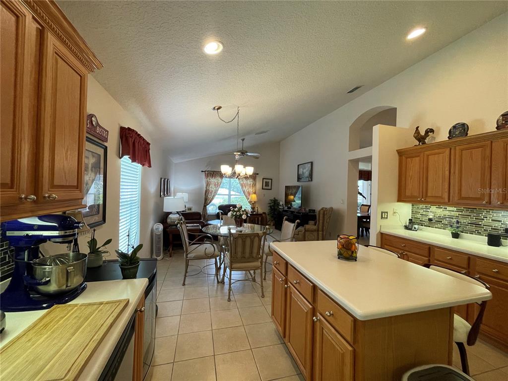 You’re going to love this 2 bedroom, den, 2 ½ bath Plantation at Leesburg home. The “Caribbean” sunsets off of the lanai are spectacular. It has a brand new roof and less than 1 year old air conditioner. This almost 2,600 square foot home sits on .44 acre beautiful corner lot in Nottoway. The home was constructed with concrete block and foam insulation to save on heating and a/c costs. You will see the quality of this home when entering the foyer with its arches and 12 foot ceilings. It has a large entry way closet, more closets galore, pantry, cabinets and plenty of additional storage. The Kitchen has a convenient island for preparing food and equipped with bar stools for a quick meal on the run. The cabinets were special ordered with details and extra decorative molding. The ceramic back splash with corian counters and corian sink just adds to the comfort. Appliances all stay. All window treatments and blinds remain. The master bedroom and bath is equally customized with his and hers built in California closets and drawers. It has a large walk in shower, garden style tub, separate his and her vanities and more. The dining and living room are spacious and has a discrete wet bar for entertaining family, friends and visitors. The family room is cozy and comfortable. The spacious back lanai measures 12×27 with screening, ceiling fans, lighting, fountain and ceramic tile flooring. There is a specially poured 12×15 concrete pad perfect for grilling, gardening or just enjoying coffee on a cool morning. The front lanai measures 8×12 and is also screened in for comfort. The windows and glass are tinted for those bright Florida sunny days. The garage has a newly replaced side door entry for easy access to the yard. The garage also includes durable shelving and additional storage in the attic with pull down stair case for convenience. The home also includes a whole house water filtering system for better quality and taste. The Plantation at Leesburg is a 55+ HOA community that is well managed and maintained. It has 3 community pools, 2 championship golf courses, tennis, pickleball, fitness center and so so much more! Check out this home and call now for your personal viewing.