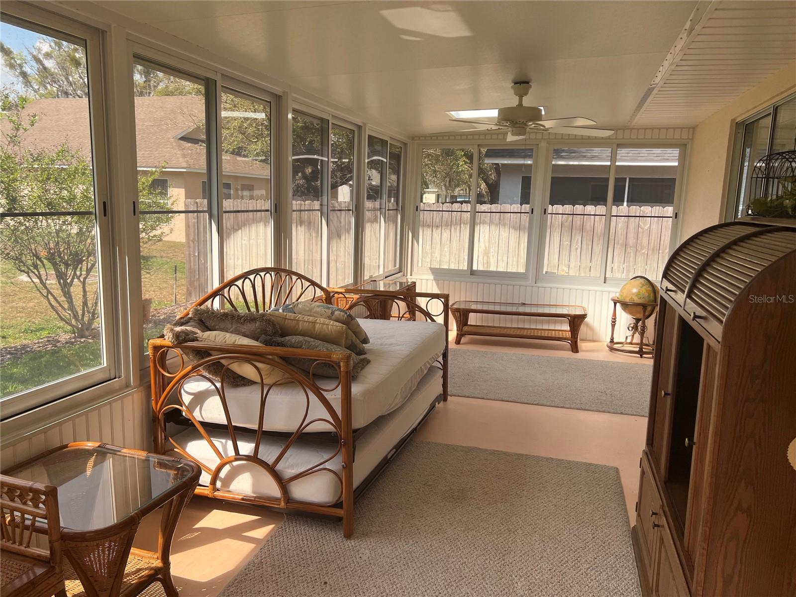 Wonderfully located 3 bedroom 2 bathroom house with a 2 car garage, only two miles in distance from nearby Publix, two and a half miles from Lake Square mall and nearby shopping locations, one and a half miles from Treadway Elementary School, and five miles distance from downtown Tavares and its businesses. The Lake Eustis boat launch is only three miles in distance, convenient for boating and fishing. The house interior has vaulted ceilings in the main living room area with open floor between the dining area and living room. The back of the house features an enclosed porch measuring nine by thirty feet. The bedrooms are carpeted and feature ceiling fans. The master bathroom leads into the master bedroom’s walk-in closet.