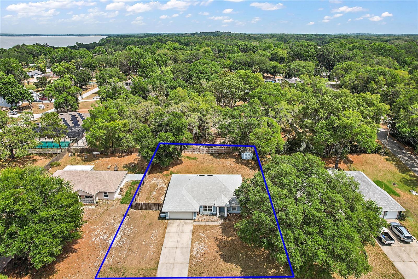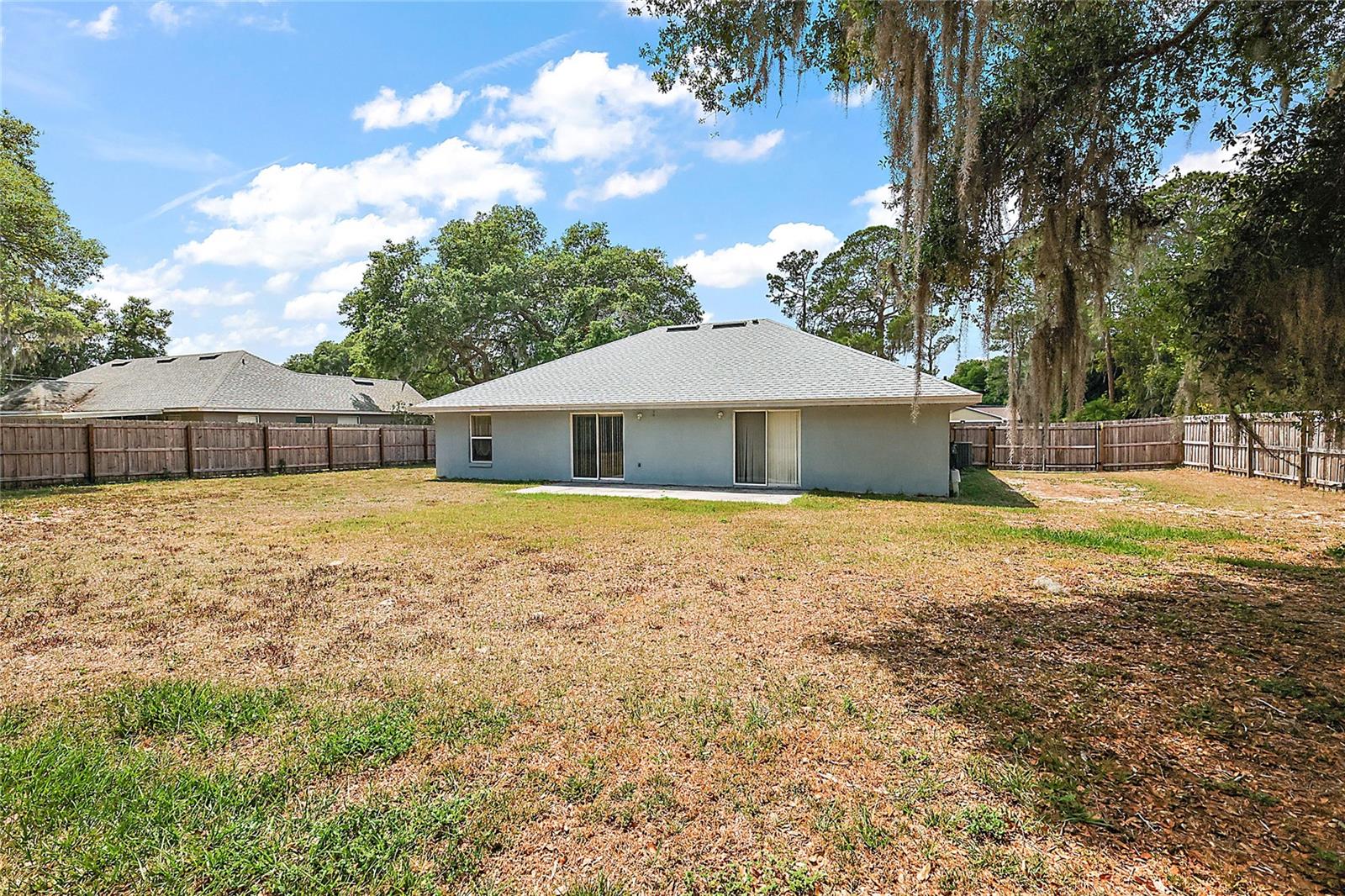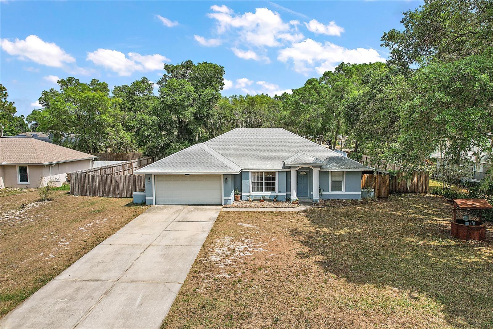 Welcome to your new home in Sun Eden, a no HOA community in Yalaha! This 3 bedroom 2 bath home sits on just about 1/3rd acre and boasts a New Roof in 2020, new wooden privacy fence at the end of 2019, and fresh paint throughout the interior, here in 2023! Walking in, you will notice tile floors throughout the living space under open, cathedral ceilings. A large eat in Kitchen sits off to the front of a Large open living area that nicely splits off the Master and guest bedrooms. The master bedroom is equipped with a large walk in in closet, tiled in shower and its own rear exit via sliding glass doors. Walking outside, the fenced in rear yard has a concrete pad for grilling and entertaining or would be perfect to convert into a screened lanai! A well maintained shed sits at the rear of the property as well for bonus storage. Other pluses include a Generator hookup, water softener system and garage workshop cabinetry. Come take a look today while this property lasts!
