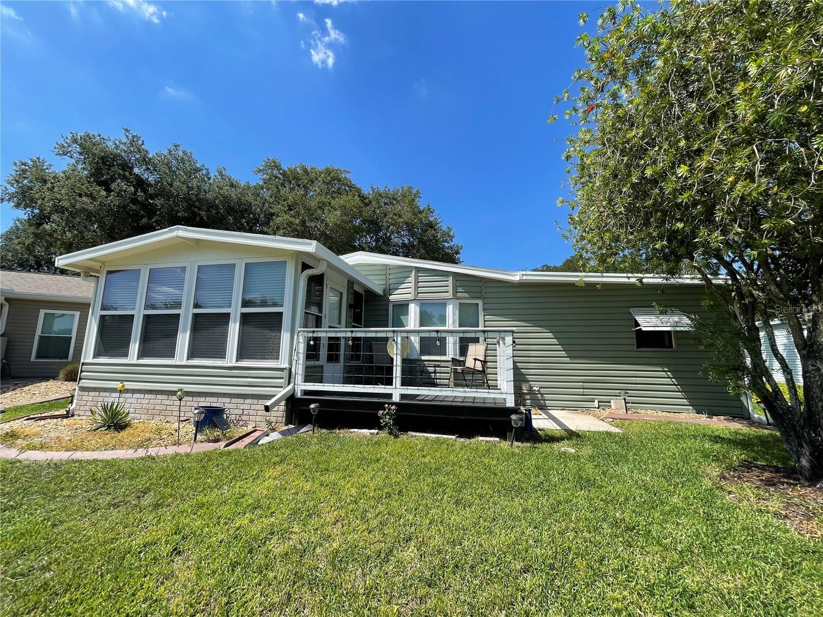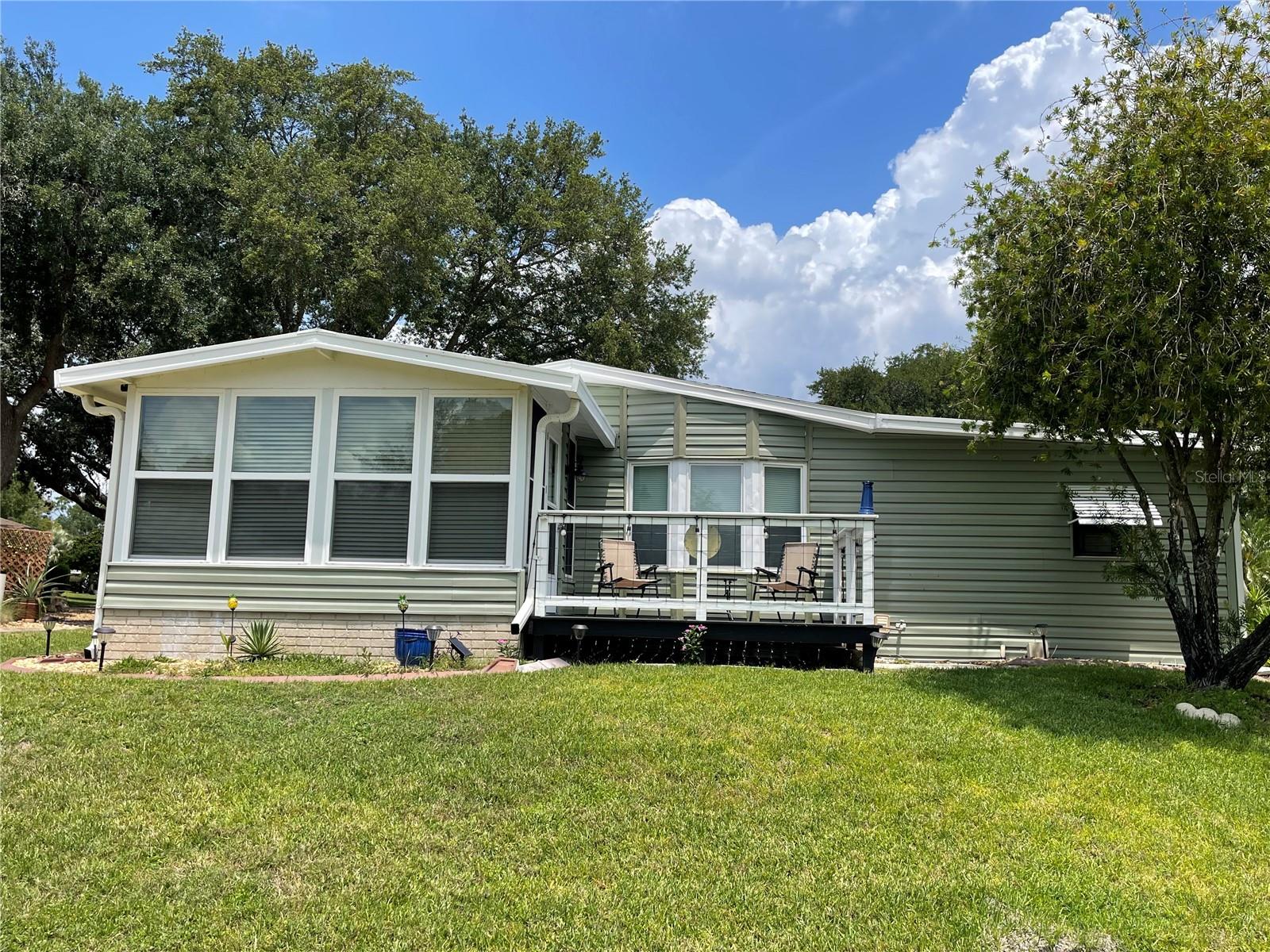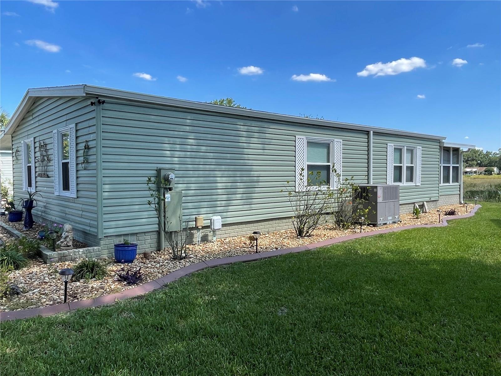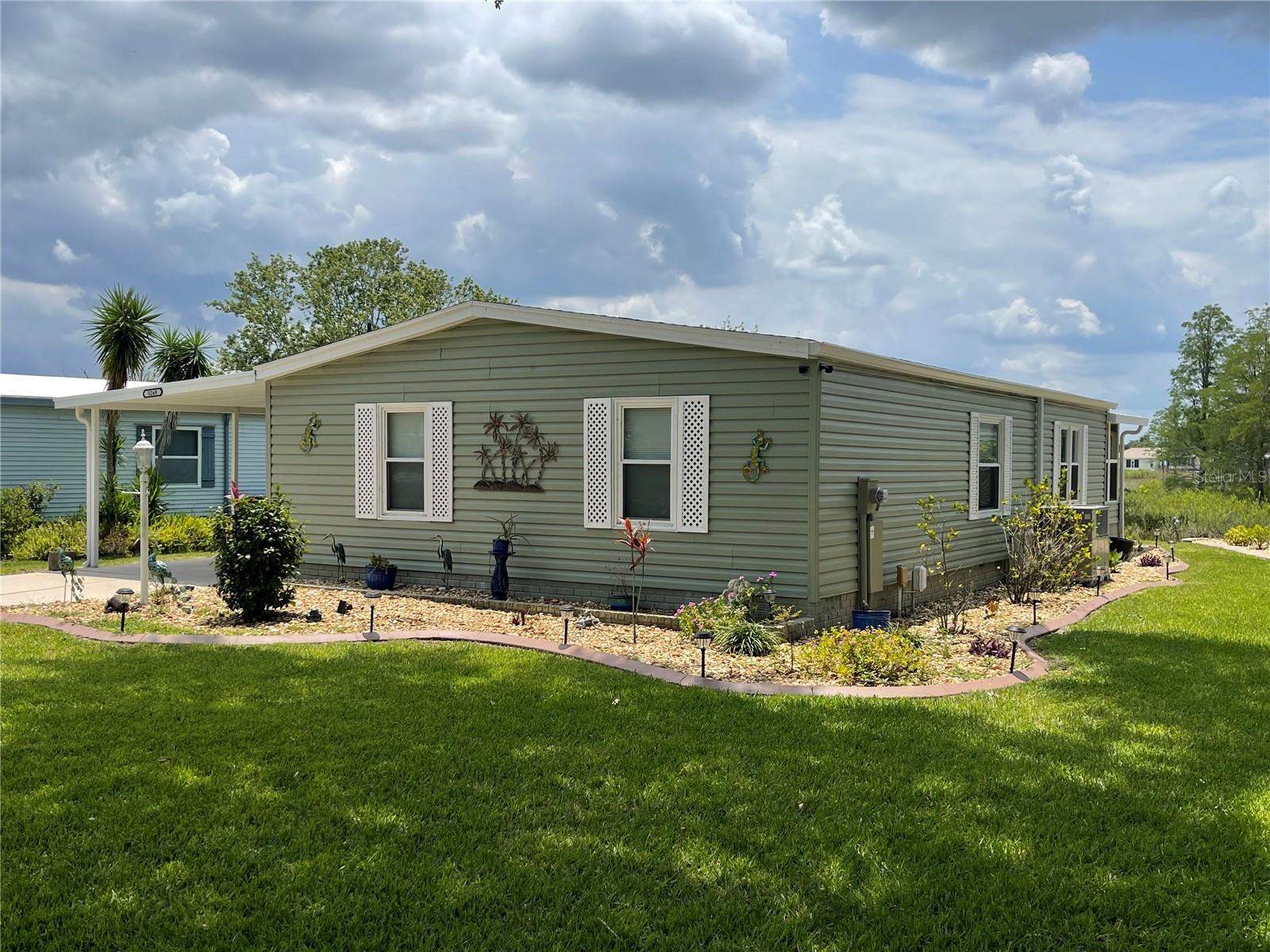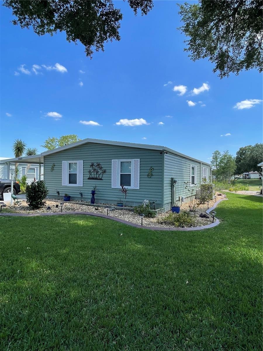 Under contract-accepting backup offers. *** New Price Reduction ***. Check out this great find of a home in the 55+ Plantation at Leesburg Community! The view off of the lanai of the wetlands is spectacular! It is a 2 bedroom, 2 bath with step in shower. It has 1,144 square feet of living space plus a huge Florida room. The windows were installed in 2009. They are low-e, argon filled, double pane and come with a transferable warranty. The decorations and updates makes it feel like a house rather than a manufactured home. It has a natural flowing floor plan with combo living and dining area as well as partially open kitchen. The kitchen has upgraded countertops and includes all appliances. The dishwasher was replaced with a new Bosch dishwasher in 2019. The Master bathroom was updated in November of 2021. It comes with a home security system with cameras (Smile!) with an easy to use smart phone app. The Washer and dryer are included. The dryer is 2 yrs old. These can be brought into house by the front door with added plumbing. The home has a professional preventative pest control service along with a transferable termite bond with no transfer fees. A/C was serviced in February of 2023. A new Humidistat added in March of 2023. The roof was replaced in April of 2022 with a transferable warranty along with a new roof on the Lanai and shed in December of 2022. New Gutters and downspouts with leaf Guard protection were installed in April of 2022. The upgraded siding was installed in 2009 and has the insulation fabricated on its inside. There are large closets throughout as well as separate storage shed off of the carport. The home flower beds are simple and easy to manage as well as the yard that includes a whole yard irrigation system. This home is centrally located with a very short walk to the mail boxes, Manor House, Pool, pickleball and so much more. The Golf Course Assessment has been paid!!! Check it out and schedule your showing today!