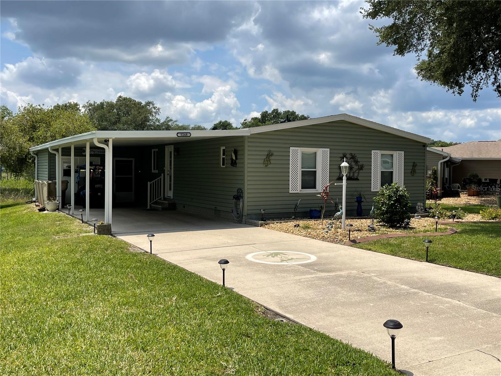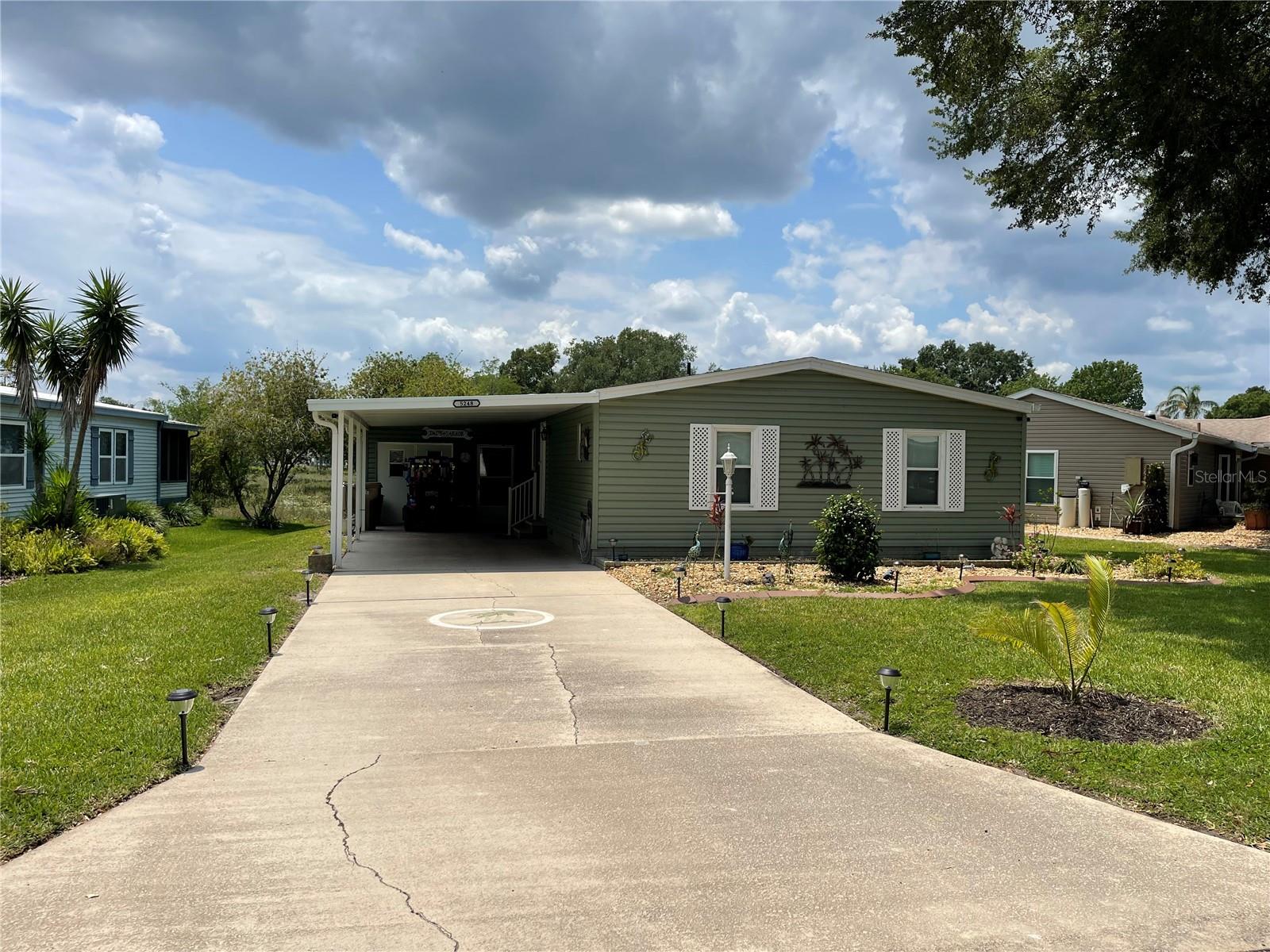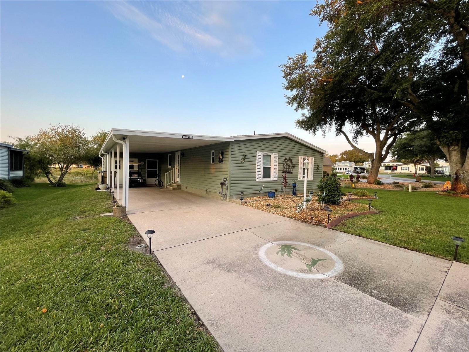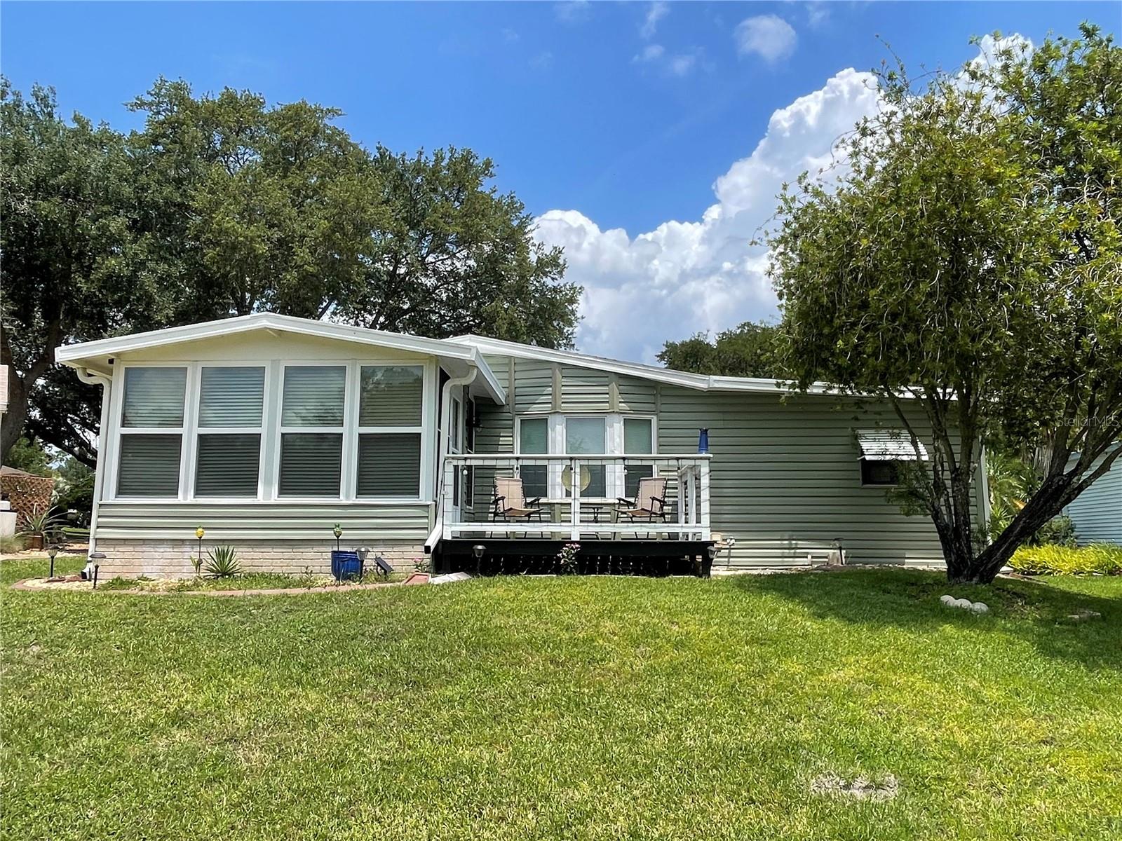 Under contract-accepting backup offers. *** New Price Reduction ***. Check out this great find of a home in the 55+ Plantation at Leesburg Community! The view off of the lanai of the wetlands is spectacular! It is a 2 bedroom, 2 bath with step in shower. It has 1,144 square feet of living space plus a huge Florida room. The windows were installed in 2009. They are low-e, argon filled, double pane and come with a transferable warranty. The decorations and updates makes it feel like a house rather than a manufactured home. It has a natural flowing floor plan with combo living and dining area as well as partially open kitchen. The kitchen has upgraded countertops and includes all appliances. The dishwasher was replaced with a new Bosch dishwasher in 2019. The Master bathroom was updated in November of 2021. It comes with a home security system with cameras (Smile!) with an easy to use smart phone app. The Washer and dryer are included. The dryer is 2 yrs old. These can be brought into house by the front door with added plumbing. The home has a professional preventative pest control service along with a transferable termite bond with no transfer fees. A/C was serviced in February of 2023. A new Humidistat added in March of 2023. The roof was replaced in April of 2022 with a transferable warranty along with a new roof on the Lanai and shed in December of 2022. New Gutters and downspouts with leaf Guard protection were installed in April of 2022. The upgraded siding was installed in 2009 and has the insulation fabricated on its inside. There are large closets throughout as well as separate storage shed off of the carport. The home flower beds are simple and easy to manage as well as the yard that includes a whole yard irrigation system. This home is centrally located with a very short walk to the mail boxes, Manor House, Pool, pickleball and so much more. The Golf Course Assessment has been paid!!! Check it out and schedule your showing today!