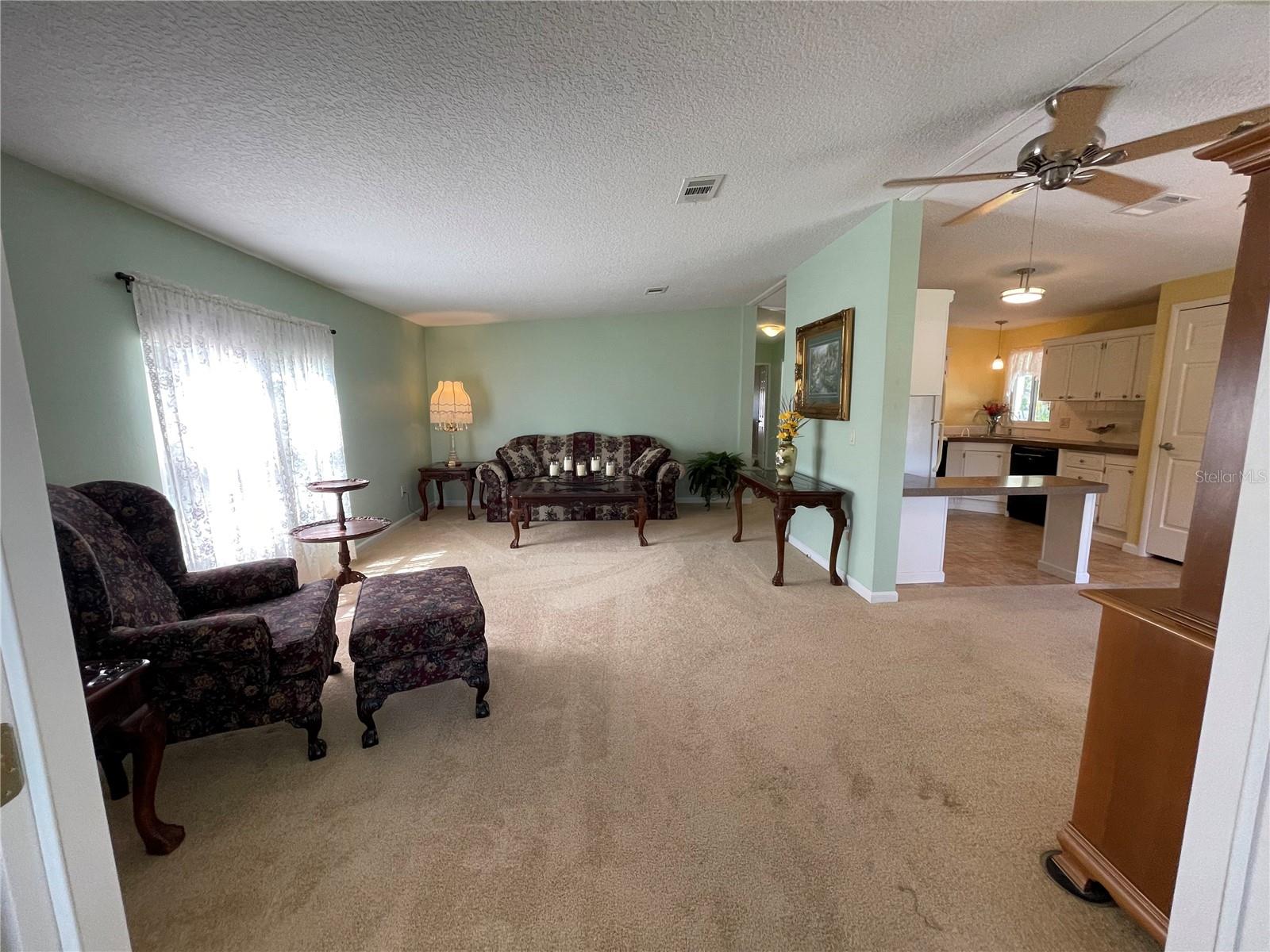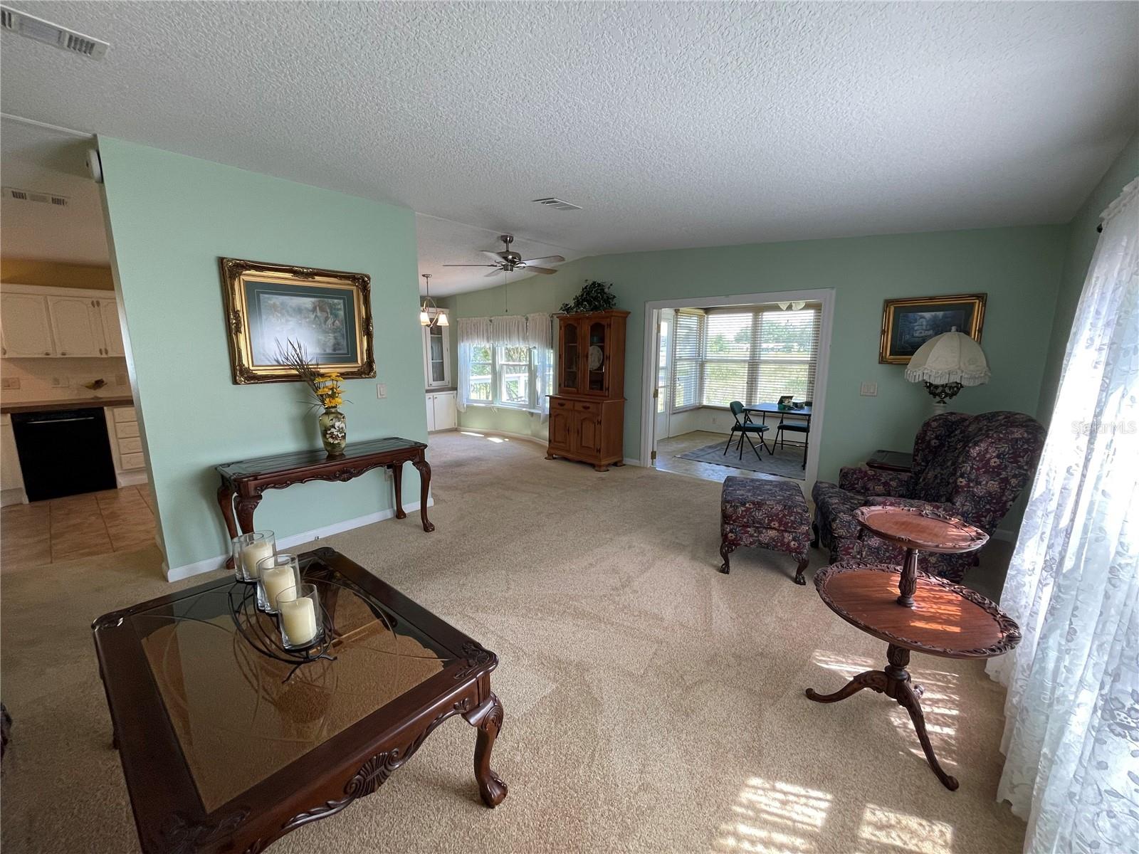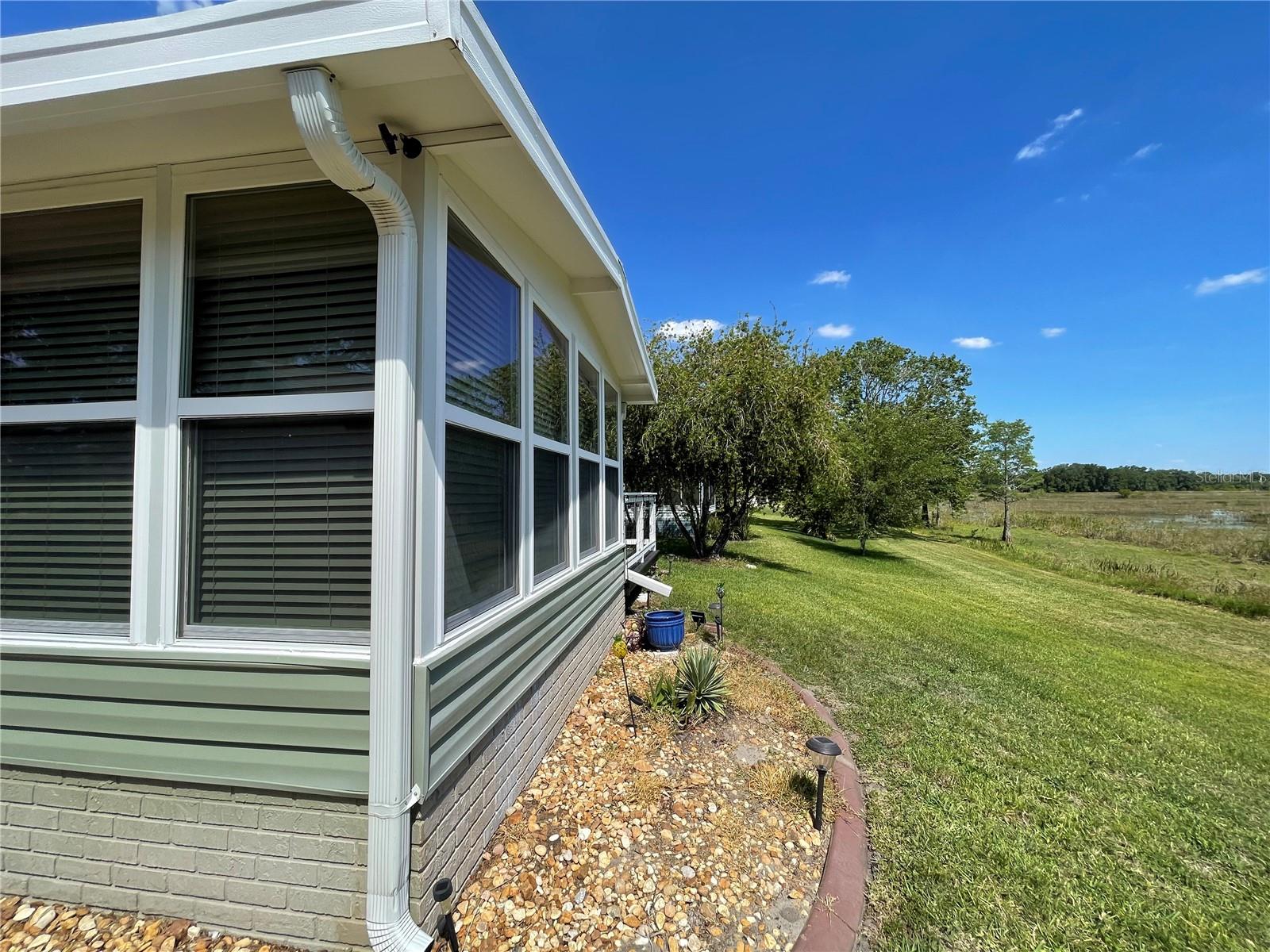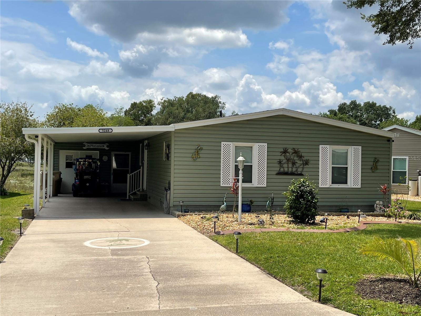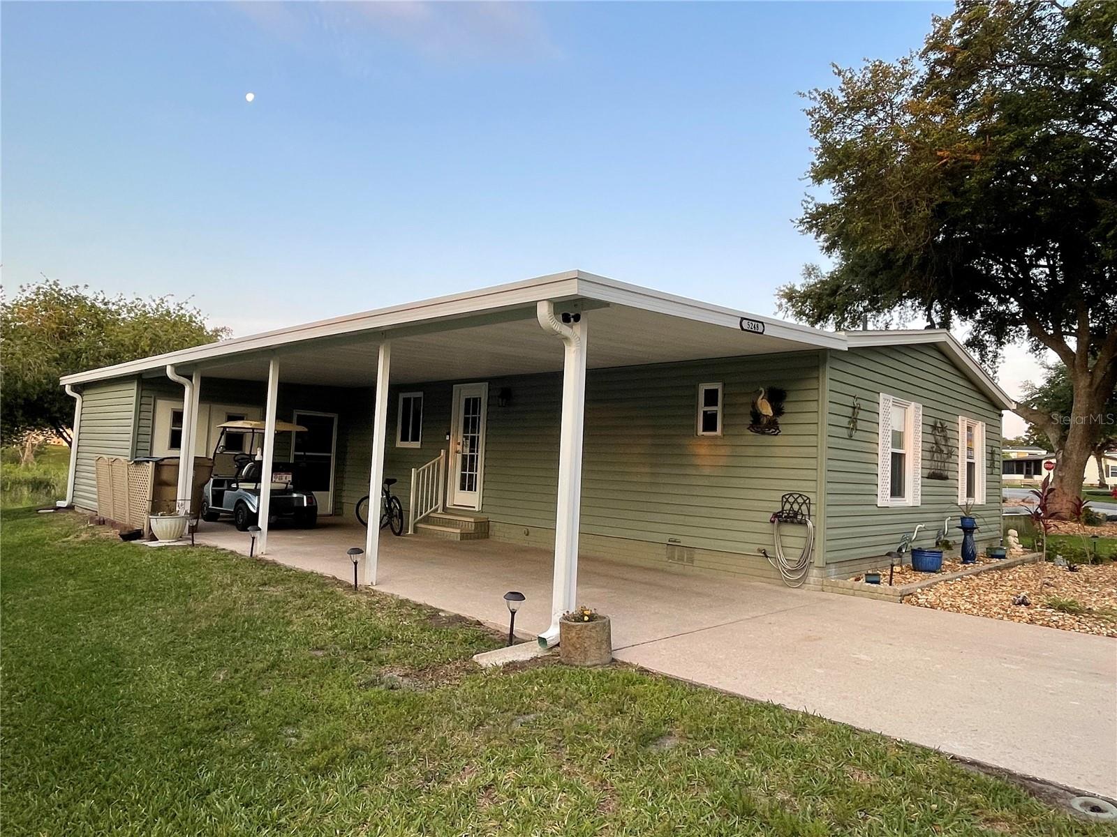 Under contract-accepting backup offers. *** New Price Reduction ***. Check out this great find of a home in the 55+ Plantation at Leesburg Community! The view off of the lanai of the wetlands is spectacular! It is a 2 bedroom, 2 bath with step in shower. It has 1,144 square feet of living space plus a huge Florida room. The windows were installed in 2009. They are low-e, argon filled, double pane and come with a transferable warranty. The decorations and updates makes it feel like a house rather than a manufactured home. It has a natural flowing floor plan with combo living and dining area as well as partially open kitchen. The kitchen has upgraded countertops and includes all appliances. The dishwasher was replaced with a new Bosch dishwasher in 2019. The Master bathroom was updated in November of 2021. It comes with a home security system with cameras (Smile!) with an easy to use smart phone app. The Washer and dryer are included. The dryer is 2 yrs old. These can be brought into house by the front door with added plumbing. The home has a professional preventative pest control service along with a transferable termite bond with no transfer fees. A/C was serviced in February of 2023. A new Humidistat added in March of 2023. The roof was replaced in April of 2022 with a transferable warranty along with a new roof on the Lanai and shed in December of 2022. New Gutters and downspouts with leaf Guard protection were installed in April of 2022. The upgraded siding was installed in 2009 and has the insulation fabricated on its inside. There are large closets throughout as well as separate storage shed off of the carport. The home flower beds are simple and easy to manage as well as the yard that includes a whole yard irrigation system. This home is centrally located with a very short walk to the mail boxes, Manor House, Pool, pickleball and so much more. The Golf Course Assessment has been paid!!! Check it out and schedule your showing today!