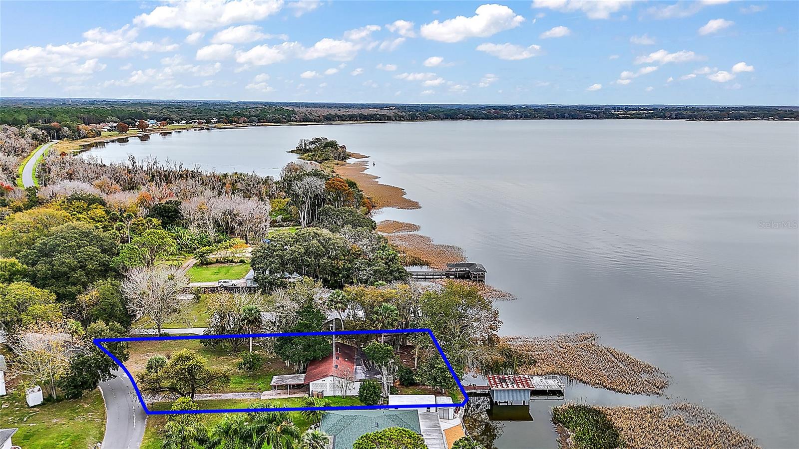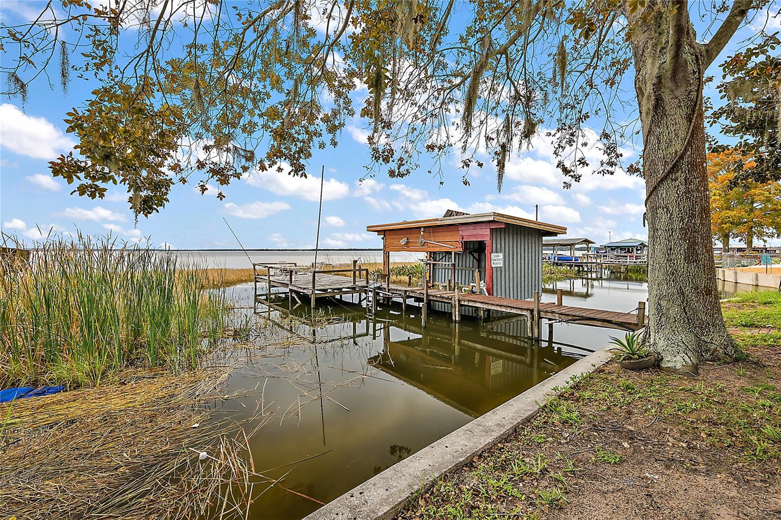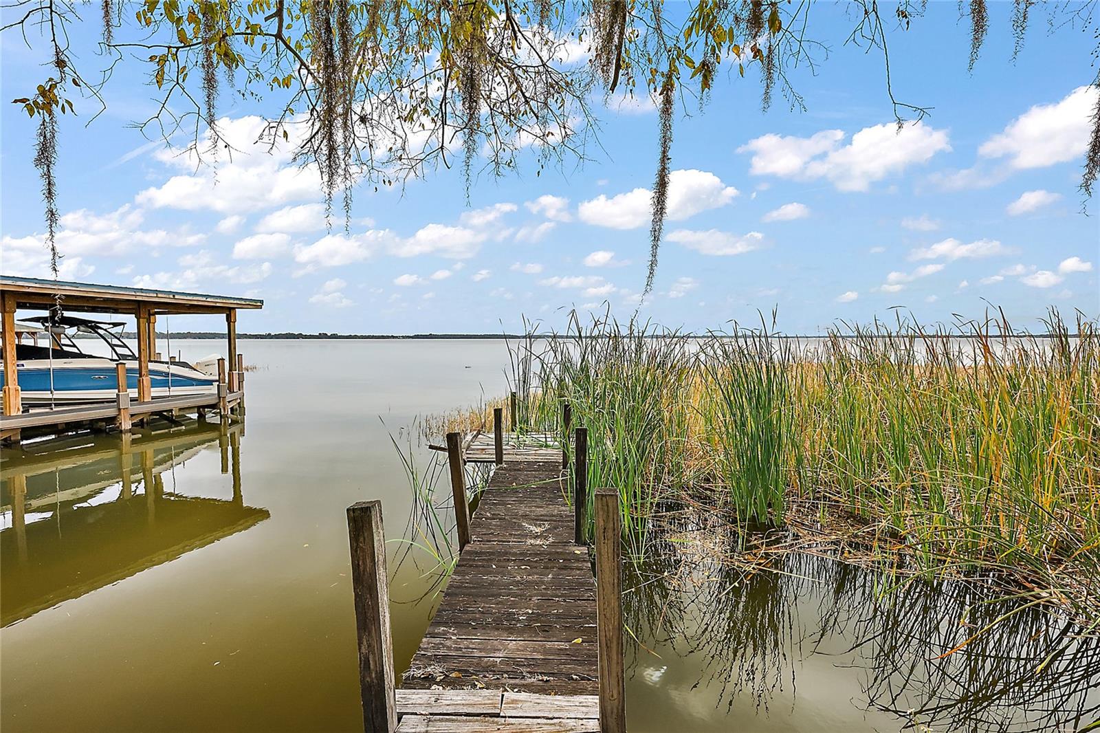 Come take a look at this Lake Griffin front home. On the Harris Chain of Lakes, this home has 100ft of Lake frontage with views facing Southwest. This Lakefront Cottage is in need of TLC but has excellent potential. As you walk in you will be greeted by the great room with kitchen and breakfast bar off to the right. One bedroom and a flex office / bedroom are split off to the sides. There is a large bonus / family room in the rear with great Lake Views. This will lead you in to your Laundry room and attached 1 car garage. As you walk through you will notice newer windows replacing most of the originals. To the rear is a covered porch overlooking your Lake Frontage and a boat house / pier along with a separate small fishing pier. Also, a metal workshop and covered 2 car oversized carport are a plus. The Ocklawaha River and the Eustis/Harris Locks are only minutes away by boat.