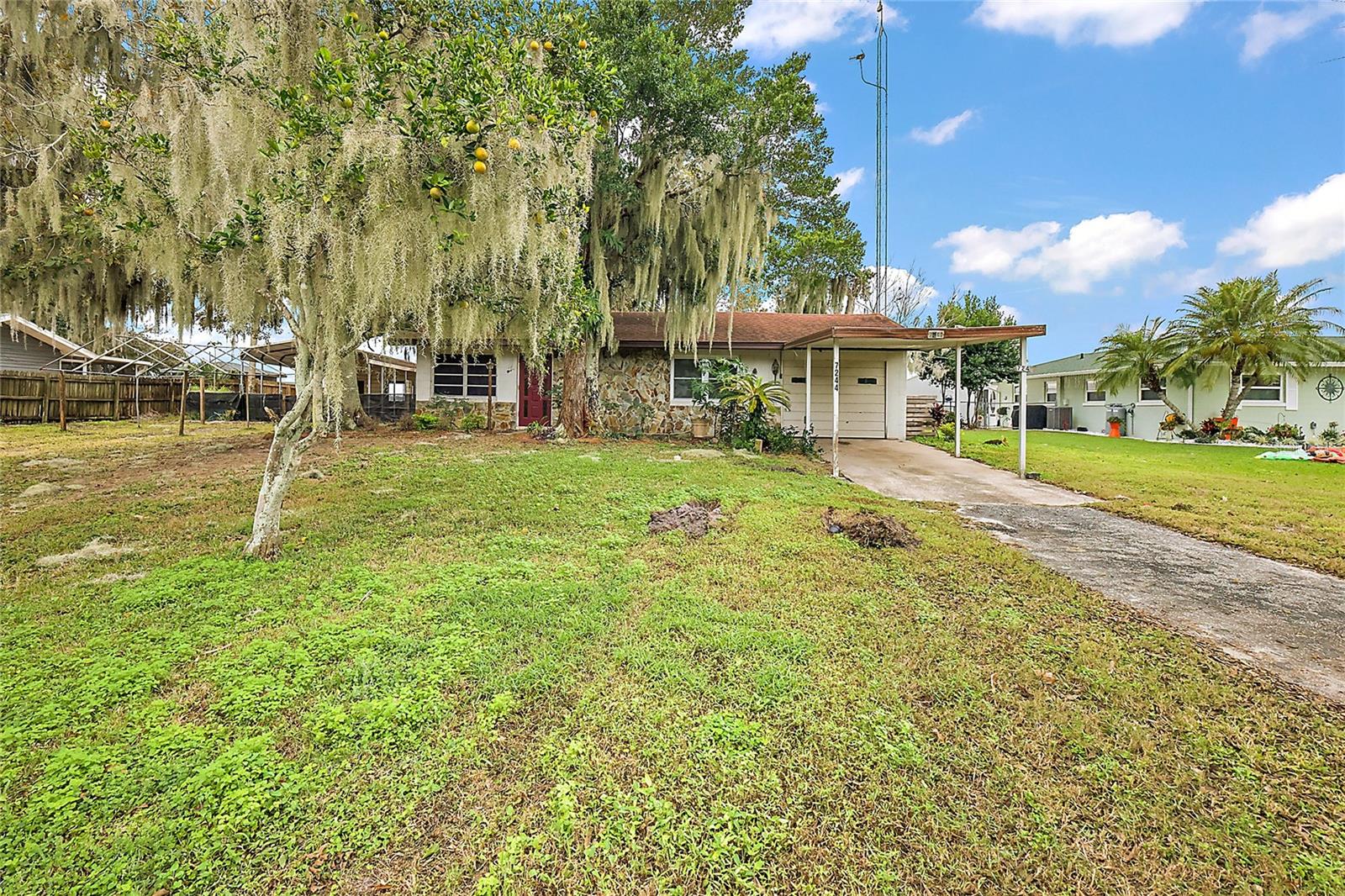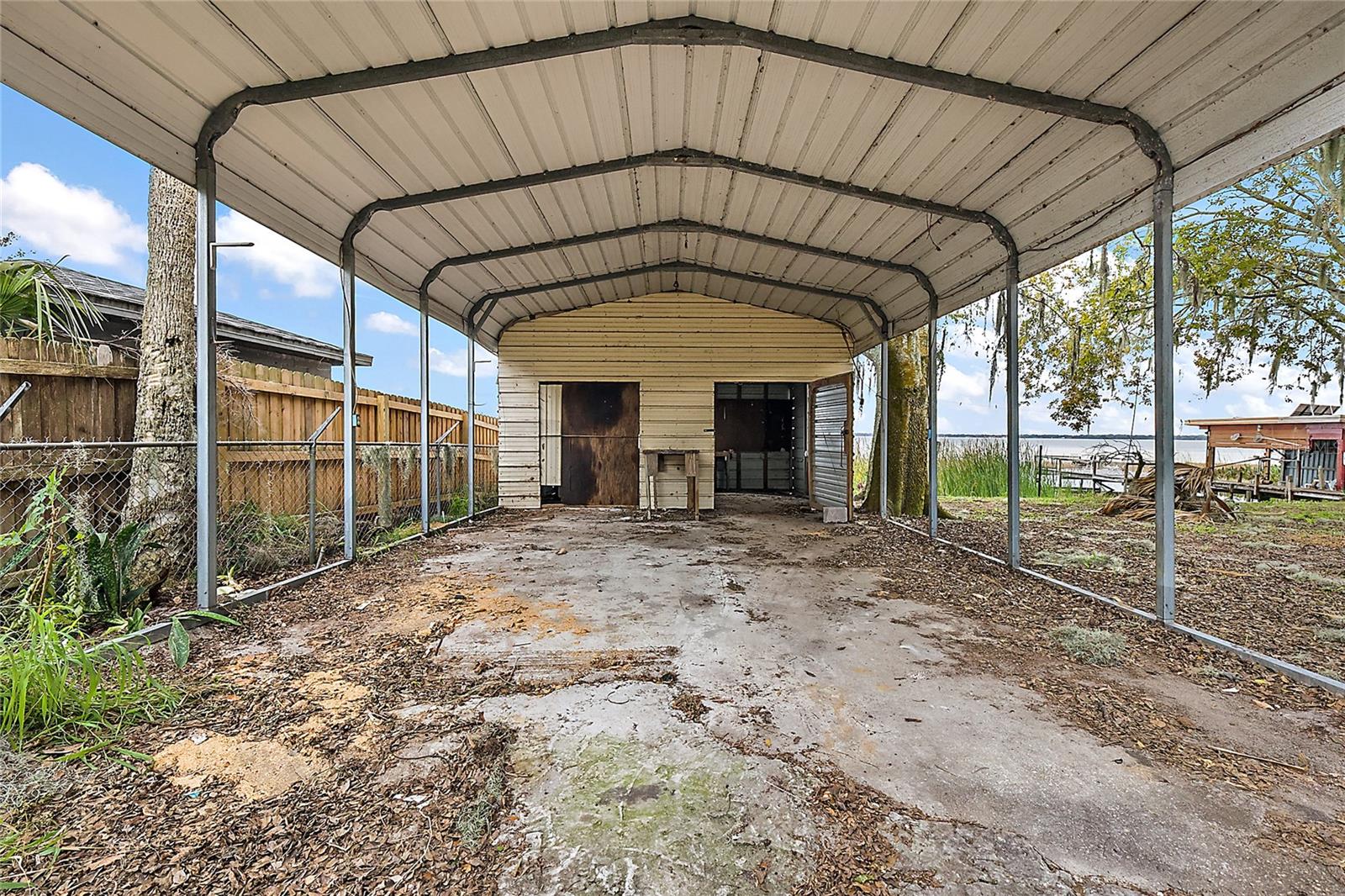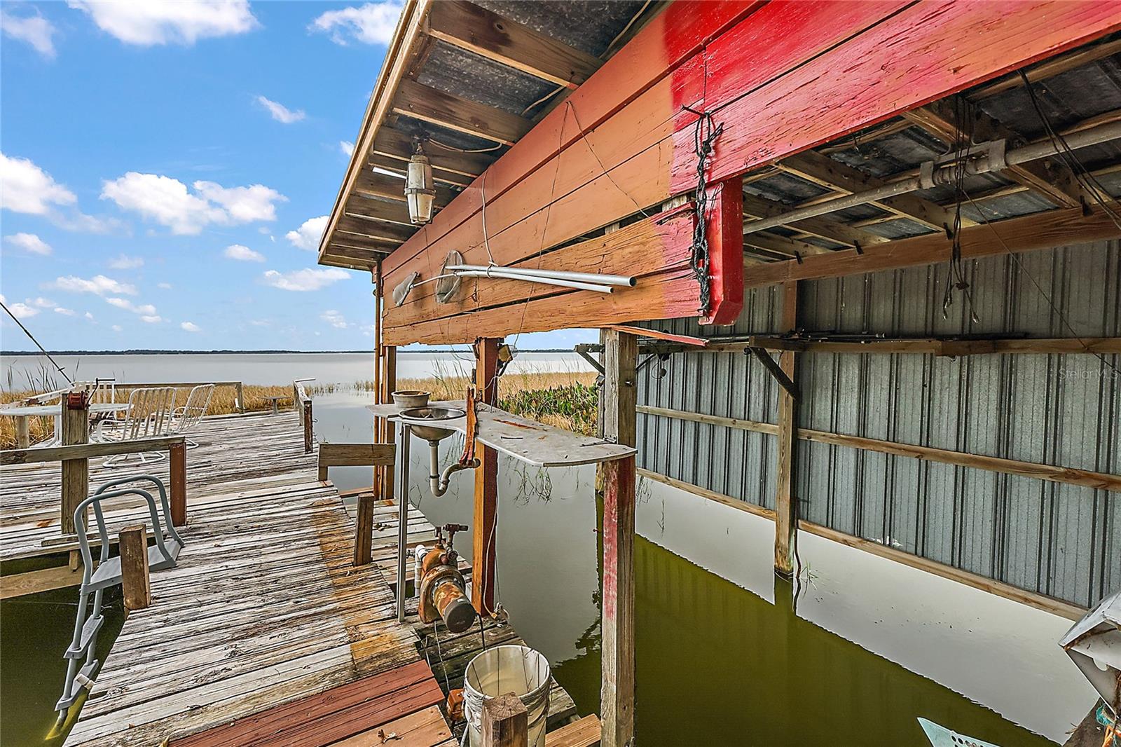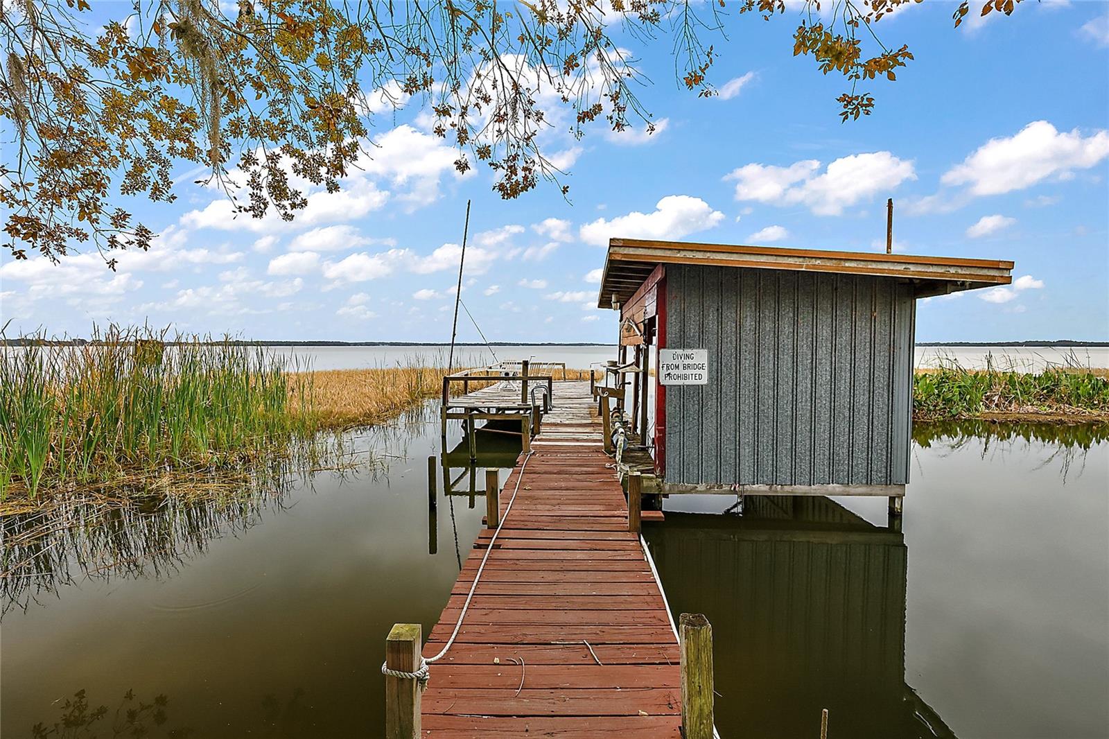 Come take a look at this Lake Griffin front home. On the Harris Chain of Lakes, this home has 100ft of Lake frontage with views facing Southwest. This Lakefront Cottage is in need of TLC but has excellent potential. As you walk in you will be greeted by the great room with kitchen and breakfast bar off to the right. One bedroom and a flex office / bedroom are split off to the sides. There is a large bonus / family room in the rear with great Lake Views. This will lead you in to your Laundry room and attached 1 car garage. As you walk through you will notice newer windows replacing most of the originals. To the rear is a covered porch overlooking your Lake Frontage and a boat house / pier along with a separate small fishing pier. Also, a metal workshop and covered 2 car oversized carport are a plus. The Ocklawaha River and the Eustis/Harris Locks are only minutes away by boat.