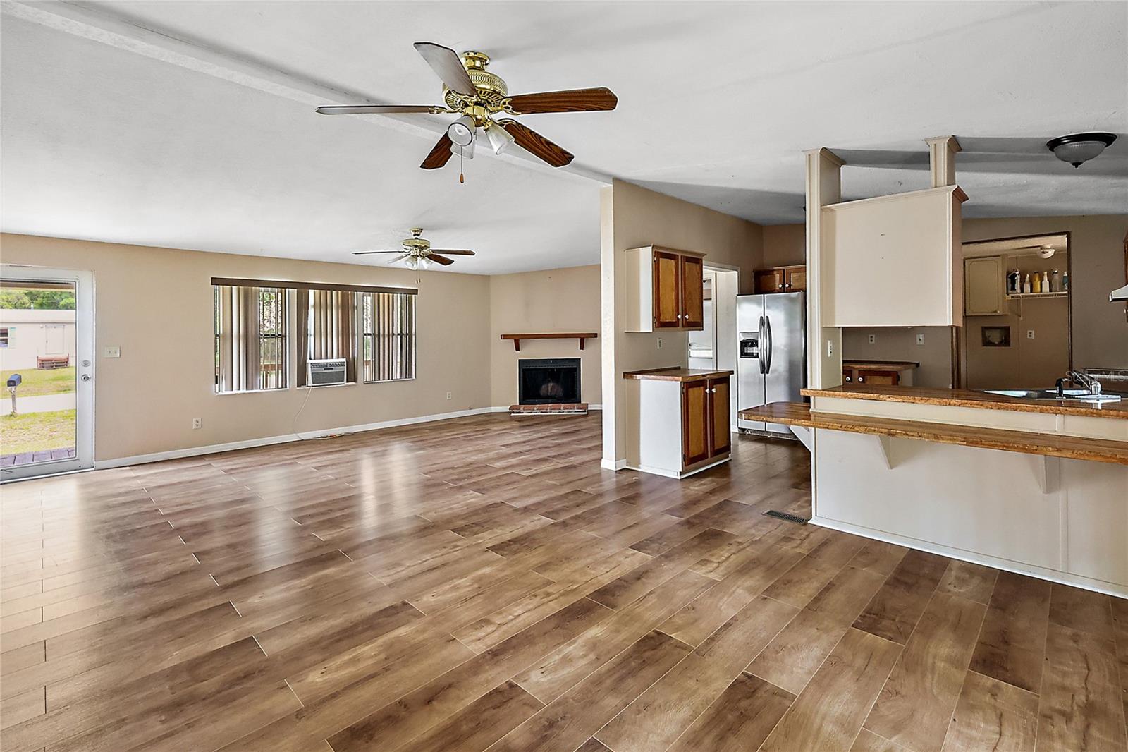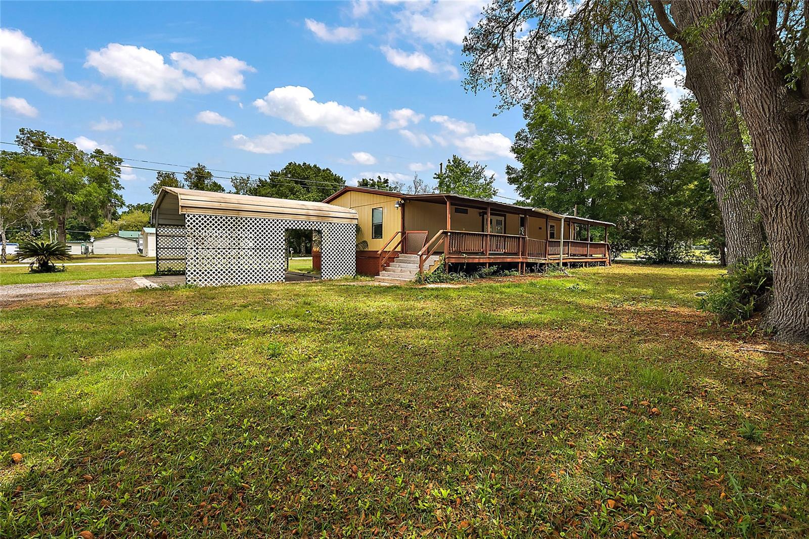 Come take a look at this excellent opportunity to own over a third acre corner lot in Summerfield with a 1989 Manufactured home, 2 car carport and a 2 car garage/metal building on a paved slab added in 2015! No HOA! This home has recently had new engineered pet proof hardwood floors added (2022) along with a new pressure tank / switch (2022) along with all new plumbing (2022)! Walking in you will be greeted by a wide open living space and an open kitchen with breakfast bar. There are double doors leading to a large rear deck, a decorative fireplace, and a nicely split plan giving the master bedroom privacy on the East wing of the home. 2 bedrooms and a bath lay on the West side of the home. Come take a look today while this deal lasts!