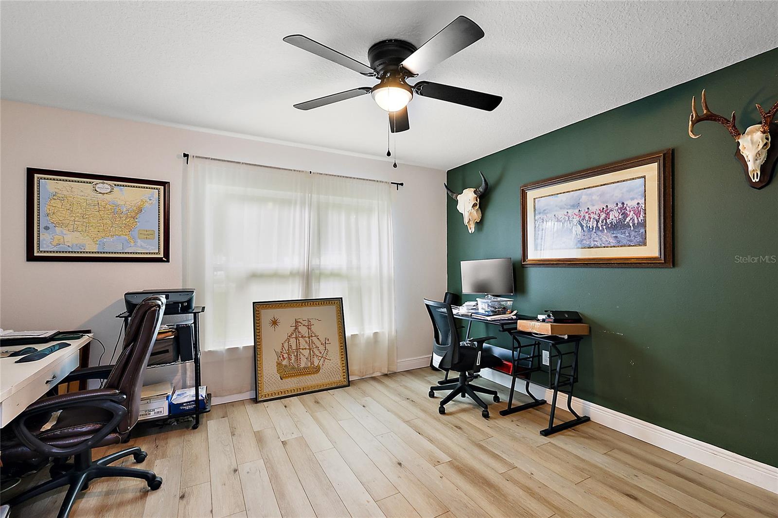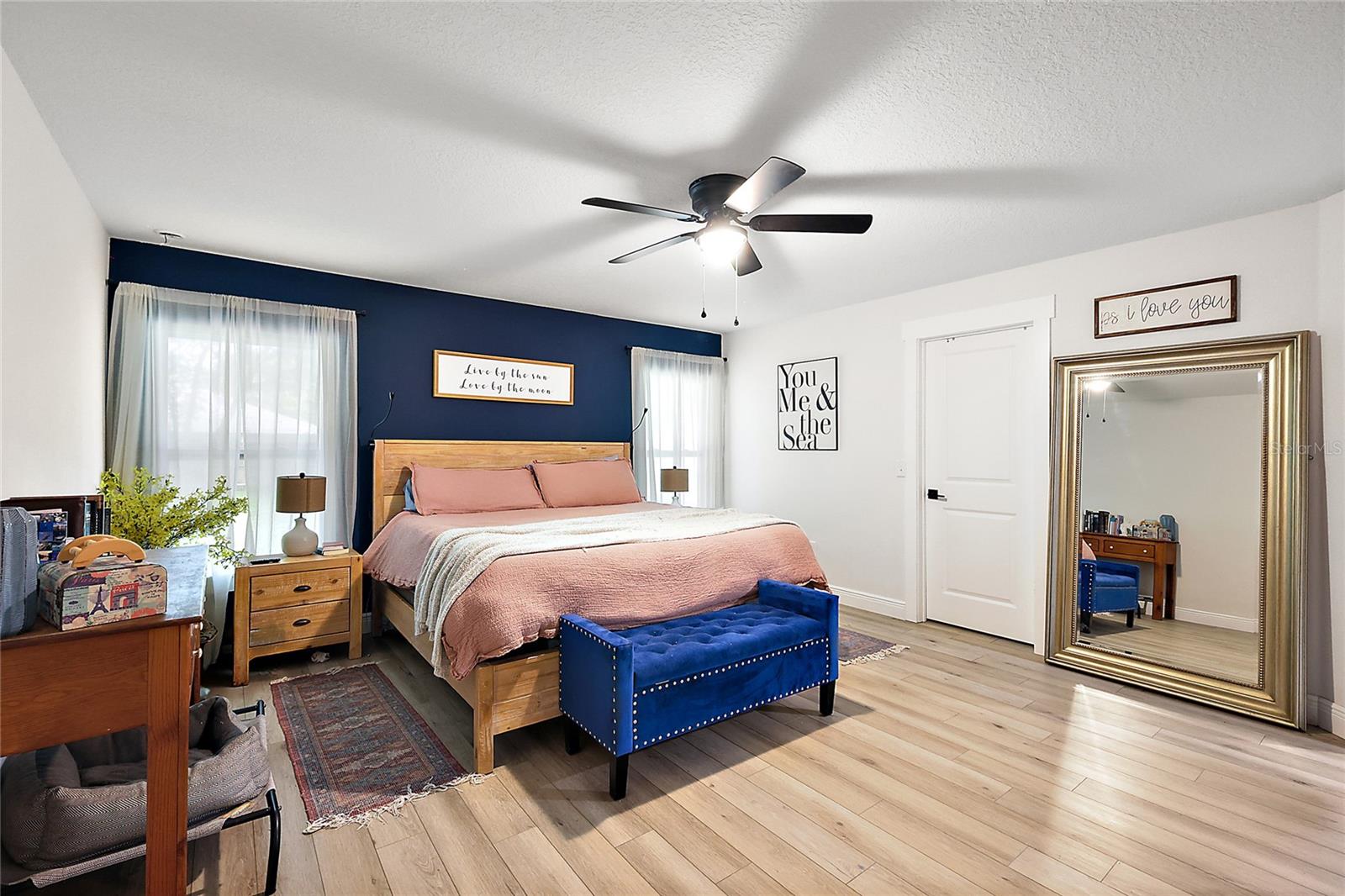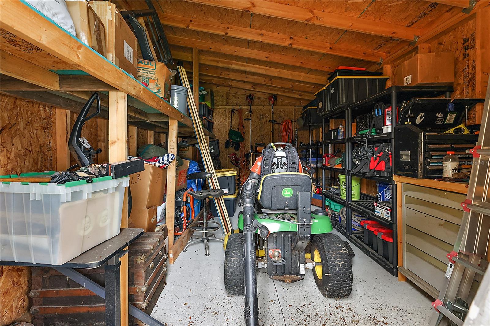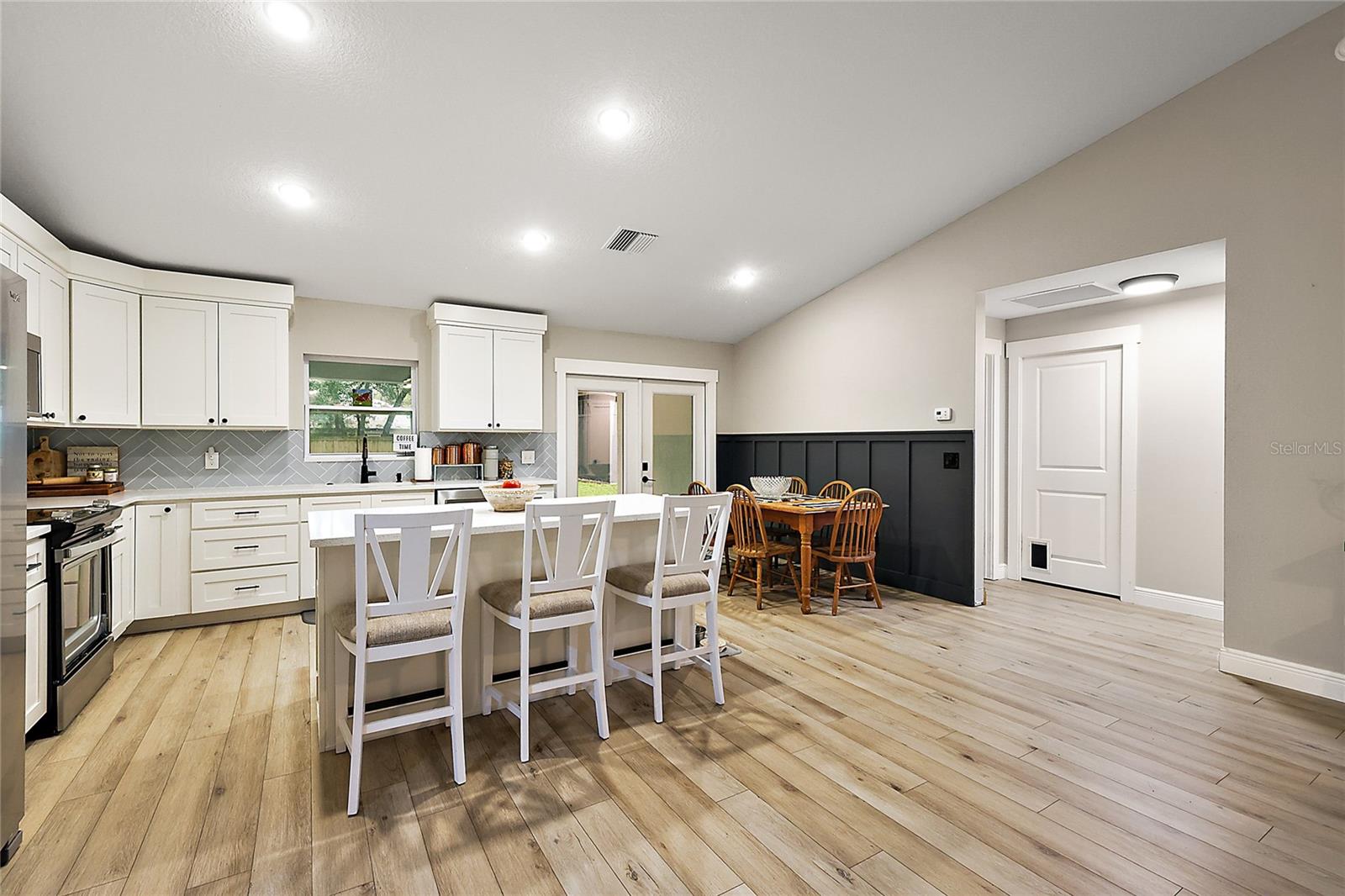 Looking for a newer construction home with NO HOA FEES and the freedom to park your boat, trailer or RV? Come take a look at this almost brand new, 2022 construction home on 1/3 of an acre in Fruitland Park! Located in a small, quiet subdivision, this home was built with tons of upgrades. When you pull up you will notice the oversized driveway and parking pad, double gate on the PVC fence, and custom wood wrapped beams welcoming you to the front porch. Walking in you will feel at home under vaulted ceilings and luxury vinyl plank flooring throughout the open living area. An open, eat in kitchen with Quartz countertops plus a breakfast bar and dining area tie the spaces together. Glass tile backsplash is a plus and custom craftsman style cabinet moldings match the rest of the homes trim. The large master bedroom boasts a walk in closet and a custom bathroom with a luxury tiled shower along with his and her sink stations. The guest bedroom are split off nicely. Outside, you have a fully fenced yard with an oversized 18×32 concrete patio, 18×9 of that covered. A large custom built shed (12×20) is also a plus on a concrete pad for your yard equipment or future outdoor flex space (man-cave or she-shed). Come take a look today while this home lasts!