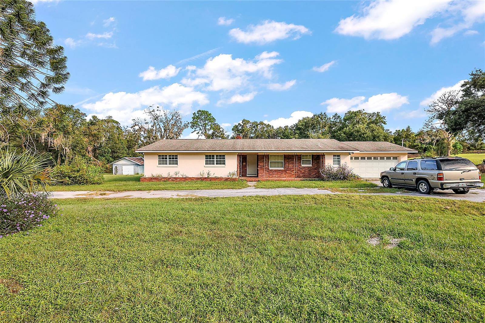 Under contract-accepting backup offers. Come take a look at this excellent opportunity to own your own piece of Rural Lady Lake! This 13 acre compound consists of two parcels. One parcel is approximately 12.3 acres of mostly wooded land, 2 acres roughly are cleared. The other parcel is about 2/3rds of an acre, cleared, hosts a 4 bedroom 2 bath home from 1966 with a 2 car garage. The home is habitable and fully rehab-able, but the bulk of the value sits in the land. The roof, windows and AC were updated approximately 12 years ago. This would be excellent for a family compound or to build your forever home and retain the additional home to rent, host family members or live while you build! Don’t forget to bring the horses, RV’s, dirt bikes and other toys! The land is located conveniently by The Villages, Lake Griffin and Leesburg! Come take a look today while it lasts!
