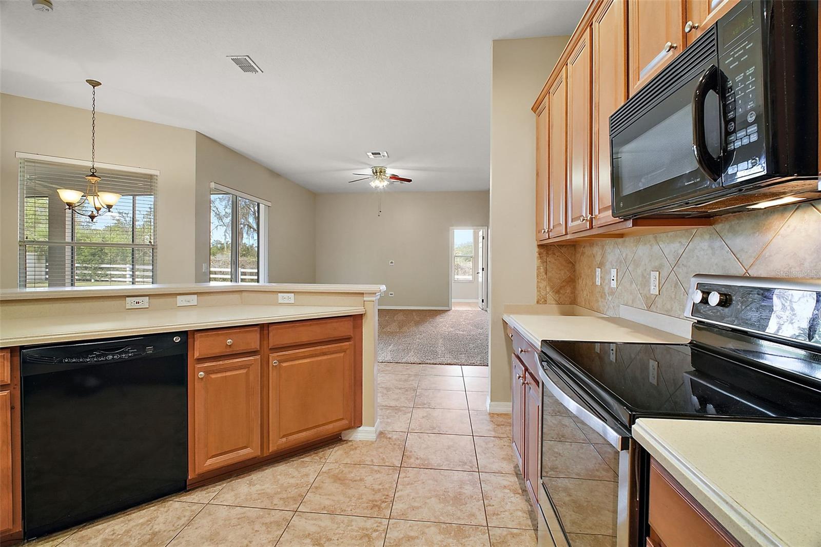 This gorgeous home is full of natural light, boasts a spacious and open floor plan, and is totally immaculate and move in ready!rnUpon arriving, you will notice this home is on an oversized lot, with a fully fenced yard, has beautiful mature landscaping and a generous side entry driveway with plenty of room for those extra vehicles. The outside of the home shines with BRAND NEW EXTERIOR PAINT 2024 and a BRAND NEW ROOF 2024. Inside you will find a 3-way split floorplan with lots of privacy for the primary bedroom and a mother-in-law suite style bedroom/bathroom at the back of the home perfect for a growing family or multi generational living. The primary bedroom has TWO walk in closets and an attached bathroom with walk in shower and jetted garden tub. The kitchen is at the heart of the home, it really is a chef’s dream with the expanse of counter top space not to mention plenty of storage space. All appliances are included as well as a NEW WATER HEATER 2024. The kitchen overlooks a dinette area and has lovely backyard views and is open to the spacious living room. Both the living room, family room, and primary bedroom all open out onto the oversized screened and carpeted back porch, which is great for entertaining. The backyard is huge and has plenty of room for a pool someday and there is a bathroom with a door leading outside that could be used for the pool in the future. Until then, you can enjoy the beautiful community pool and amenities just down the road. This house has BRAND NEW CARPET 2025 and has been meticulously cared for. It has a whole home iSpring water filtration system. This location is just minutes away from 429 and an easy commute to Orlando or any of the area attractions. Less than 3o minutes away from downtown Mount Dora and Winter Garden shopping as well as Kelly Park/Rock Springs and Wekiva Springs.