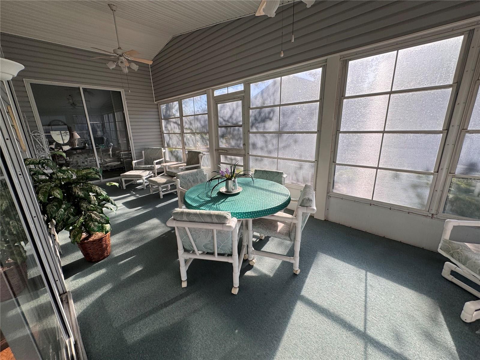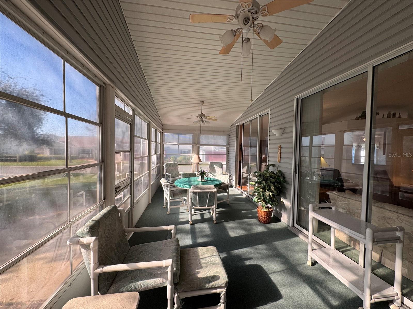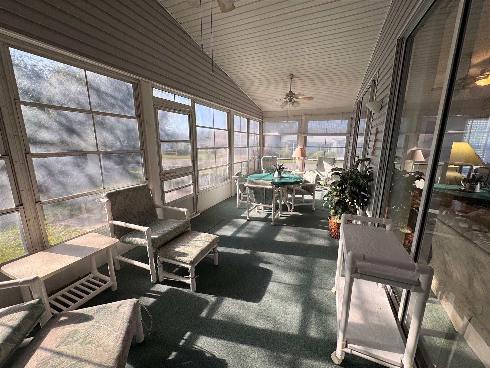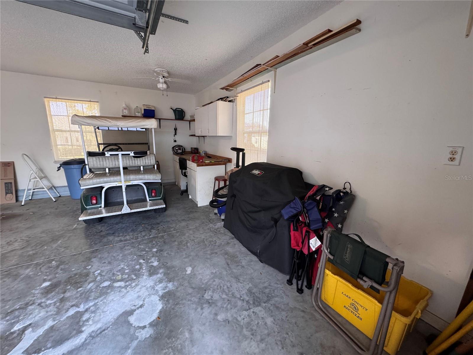 Great find here at The Plantation at Leesburg! Check out this turnkey home on a spacious corner lot, with simple landscaping and modest living space inside. You are welcomed by a large paver driveway that can hold a recreational vehicle or boat as you plan your next adventure. The living and dining room are open and not over crowded with furniture. The dinette in the kitchen is complimented with a beautiful bay window, hood microwave, new disposal, plenty of cabinets and a pantry. The lanai has 3 sets of sliding doors perfect for letting the morning light in. The large primary bedroom measures 12 x 14 opens up to a large bathroom with double sinks, large walk in shower with built in bench and large walk in closet. The other 2 bedrooms are equally spacious and have nice built in closets as well. The garage is extra wide and has a built in work bench, portable grill and additional storage in the attic. The four seater golf cart and charger are included and is in working condition. There is also a utility sink perfect for crafts, painting, or gardening cleanup. The a/c is just over one year old with state of the art technology. The Plantation at Leesburg is a 55+ Adult only community full of life and activity. There are 3 community centers each with pool, hot tub, meeting rooms and more. There is also archery, billiards, exercise rooms and two 18 hole championship golf courses on the grounds. You won’t be bored living here! Call now and view this home today!