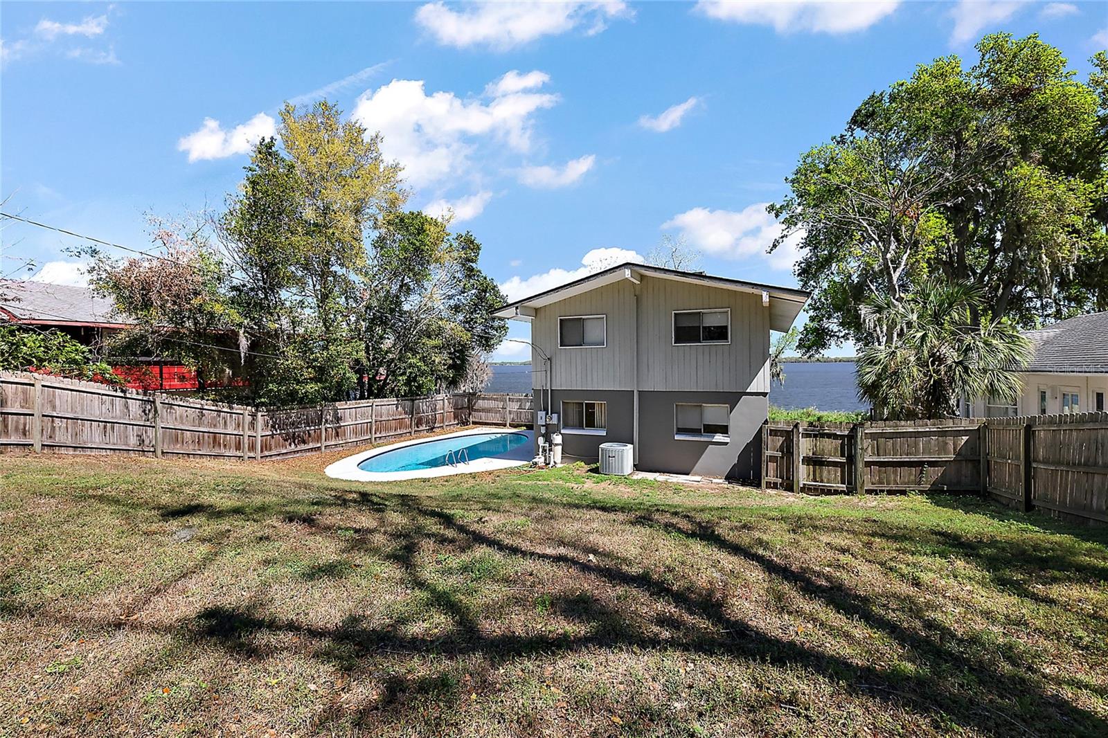 HUGE 25,000 Price Reduction! Home is Priced to Sell! Welcome home to your Lakefront pool home in Downtown Howey in the Hills! Be at ease surrounded by the tranquility and wildlife Little Lake Harris has to offer! The town of Howey in the Hills provides multiple docks, a fishing pier and boat ramp for its downtown residents use. Pulling up to your home, you will notice a recently refinished blacktop driveway, a newer roof (Feb 2019) and a beautiful Mid Century construction with a wrap around balcony/porch capturing amazing views! Walking in your front door, you will notice a downstairs suite with one bedroom and office, with its own bath, that was formerly used altogether as the Primary Bedroom suite. The office leads you out to the pool through sliding glass doors, and has a laundry room off to the East (Lake) side. Walking upstairs, you are greeted by a living room with panoramic views of Little Lake Harris. The living area has a stone covered fireplace, large sliding glass doors leading out to your wrap around balcony and wrap around hall that connects the back two bedrooms and kitchen off to the South. Outside you have a pool that was recently refinished (2024) and a fully fenced rear yard. The yard has a great elevation and captures lake views as well. The Howey Mansion (event center) is just around the corner along with Mission Inn Golf Club and Marina. Sellers are motivated! Come take a look today while this home lasts!
