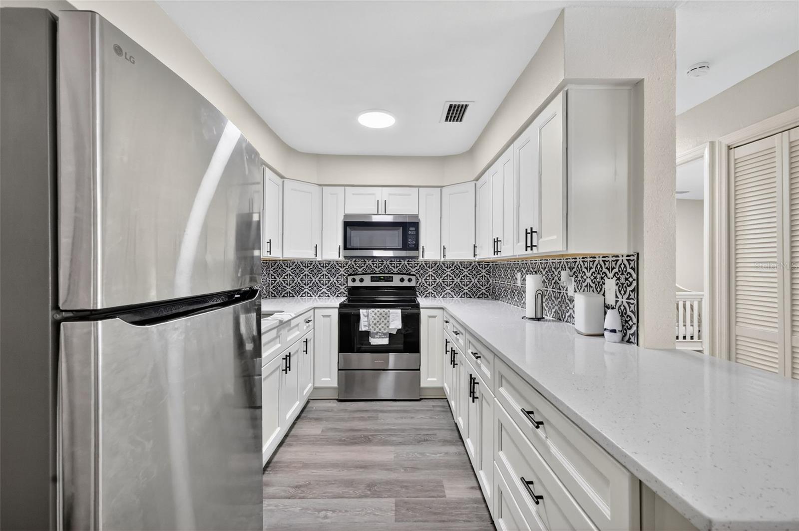 Under contract-accepting backup offers. Enjoy modern living in this completely renovated 2-bedroom, 2-bathroom home, free from HOA fees and rear neighbors. The property has been updated with beautiful quartz countertops, stainless steel appliances, new kitchen cabinets and new vinyl flooring throughout. Both bathrooms have also been updated with attractive new vanities, fixtures, and step-in tile showers. The interior and exterior have been freshly painted, and the roof and HVAC system were replaced in 2025. The backyard has a huge, covered patio that let you enjoy your outdoor space in any weather, additional covered parking, and a convenient storage shed. Located just minutes from schools and historic downtown Leesburg, you will have easy access to local restaurants, shops, and recreational areas like Ski Beach/Venetian Park on Lake Harris. Schedule your tour today!