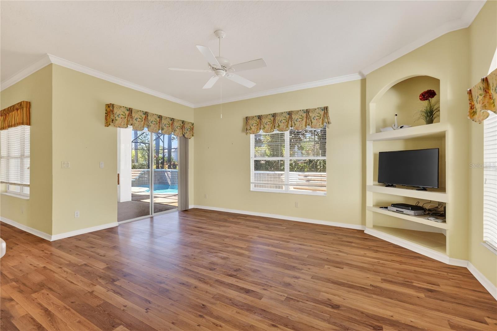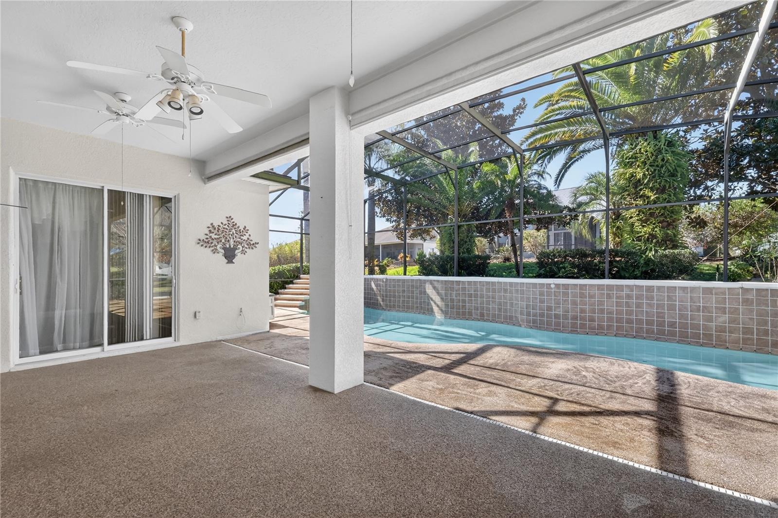 Welcome home to your Gated 55+ Golf Community; The Plantation in South Leesburg! With 2 Championship Golf Courses, three pools and clubhouses, fitness centers, pickelball, tennis, restaurant, softball fields and plenty more, this community has everything your looking for! Pulling up to your home, you will notice the paver drive and walkway, the oversized 2 car garage with golf cart garage, and a new roof (2022). Walking up you are greeted with a screened outdoor entranceway to keep the bugs out and pets in! Walking in, you will notice the laminate wood flooring throughout the living areas, and a glowing backdrop of the amazing pool glistening through the rear sliding glass doors. A large kitchen sits to the edge of the living room and is open to the pool area and adjacent family room. A kitchen breakfast bar top gives flexible seating for social and casual events. A formal dining room sits off the edge of the living room. The Primary bedroom and guest beds are split nicely. The Primary bedroom offers his and her walk in closets, his and her sinks, a walk in shower and separate soaking garden tub. A large office / den sits off the primary bedroom for additional flex space. Walking out the rear sliding doors you will see a magnificent 12×36 pool with water features and a large screened in Chattahoochee stone lanai / deck. The home is located on a quiet culdesac / dead end street so traffic is minimal. You are also located just moments to the turnpike, the new Orlando Health/South Lake ER, and conveniently located close to Leesburg, the Villages and Clermont. Come take a look today while this home lasts!
